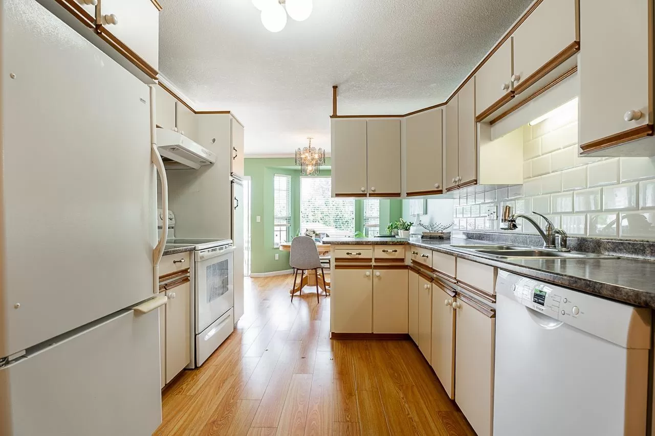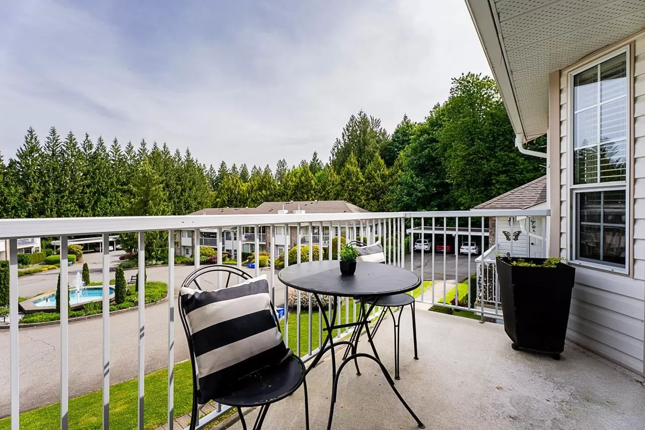 55+ RANCHER upper townhome with peaceful FOUNTAIN VIEWS from your front deck & lush GREEN SPACE off your back deck. AFFORDABLE LIVING WITH LOW MAINTENANCE FEES THAT INCLUDE YOUR ELECTRIC HEAT & LIGHTS, This will save you approx $1200-$2600 per year. 2 Bedrooms & 2 full bathrooms with WALK IN SHOWER. Spouses and immediate family members under 55 are welcome. Bylaws state 2 person occupancy max. Includes 2 parking spots (1 covered, 1 open) and is cat-friendly-indoor cat only. A vibrant, friendly community with year-round social events, guest suite, clubhouse and workshop. 1.5 km to Sevenoaks Shopping Centre (100+ stores including London Drugs & PriceSmart Foods). 3YR ROOF & NEW WINDOWS COMING SOON. $270k in SAVINGS, SOLID COMPLEX. Transit nearby. (id:27476)