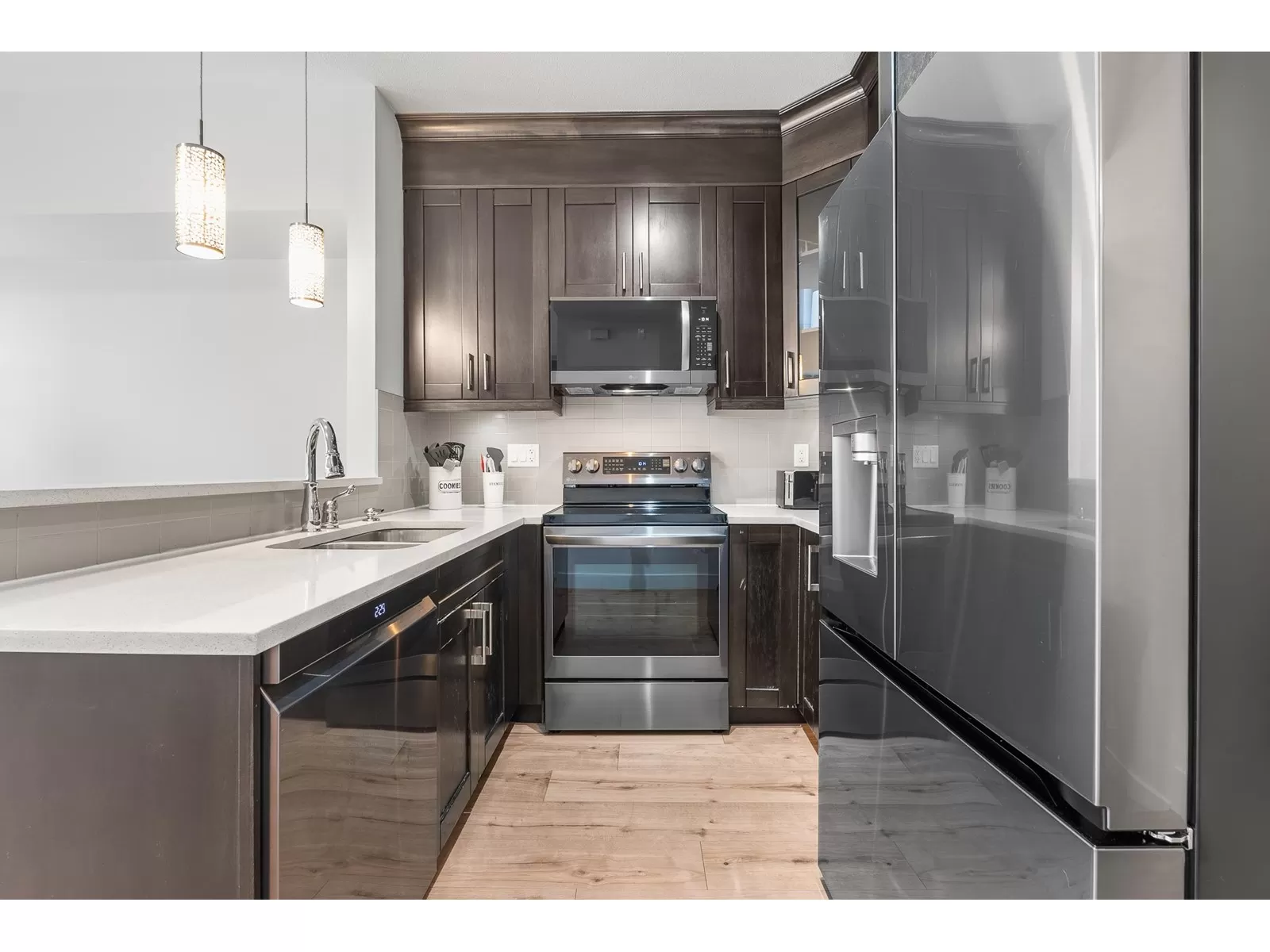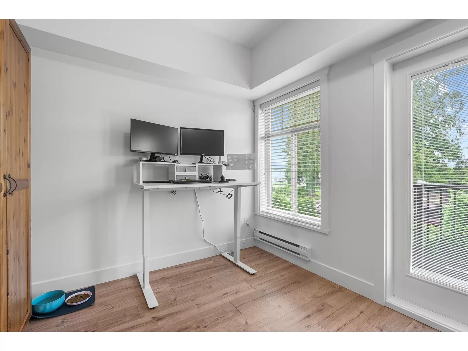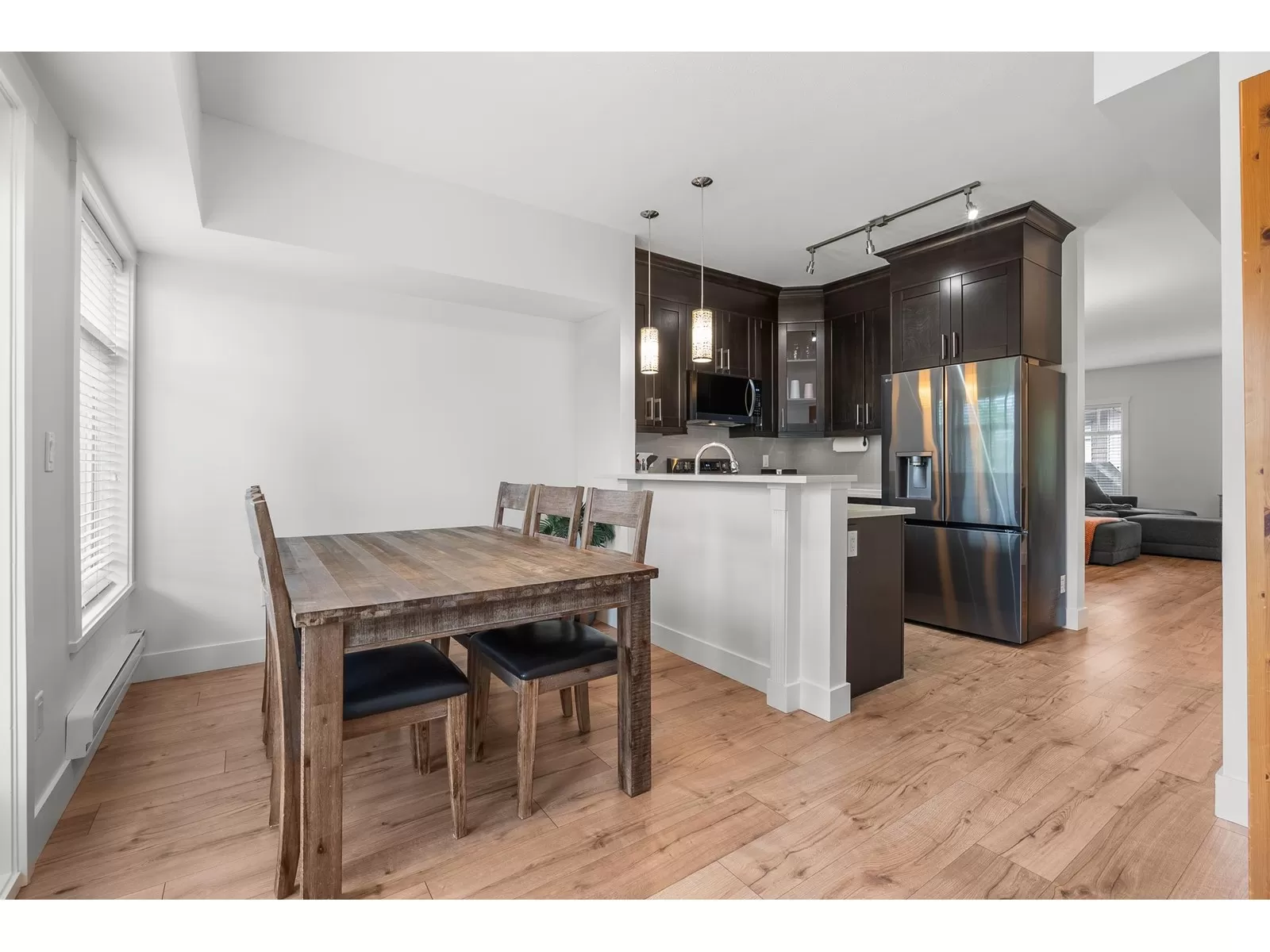 Not your average townhome! This spacious unit offers 3 bedrooms-2 full bath up with an option to add a bonus bedroom/flex room on the lower floor. Bright primary bedroom features full ensuite with two closets and opens to a private balcony. Main floor benefits from 9ft ceilings, loads of space...YES your couch will fit! a deck off the kitchen and an additional bathroom. You'll love the quality finishes inc. under cabinet lighting, espresso shaker cabinets, white quartz counters and an electric fireplace. Past updates include life proof flooring, appliances and paint. Lots of storage. Spacious garage accommodates two vehicles and walks out to a fully fenced back yard. Pet friendly complex with quick access to Fraser Hwy and close to all amenities. (id:27476)