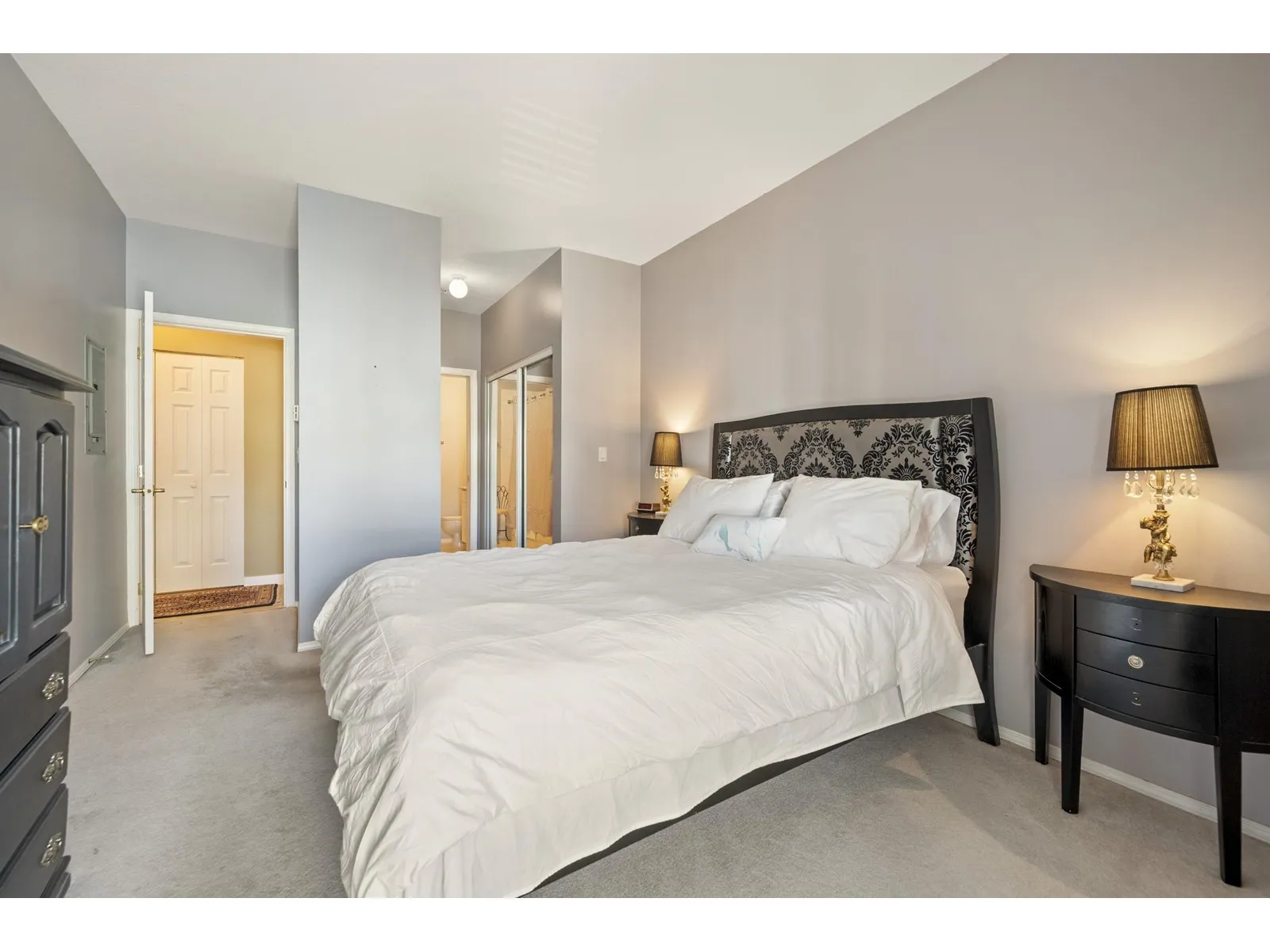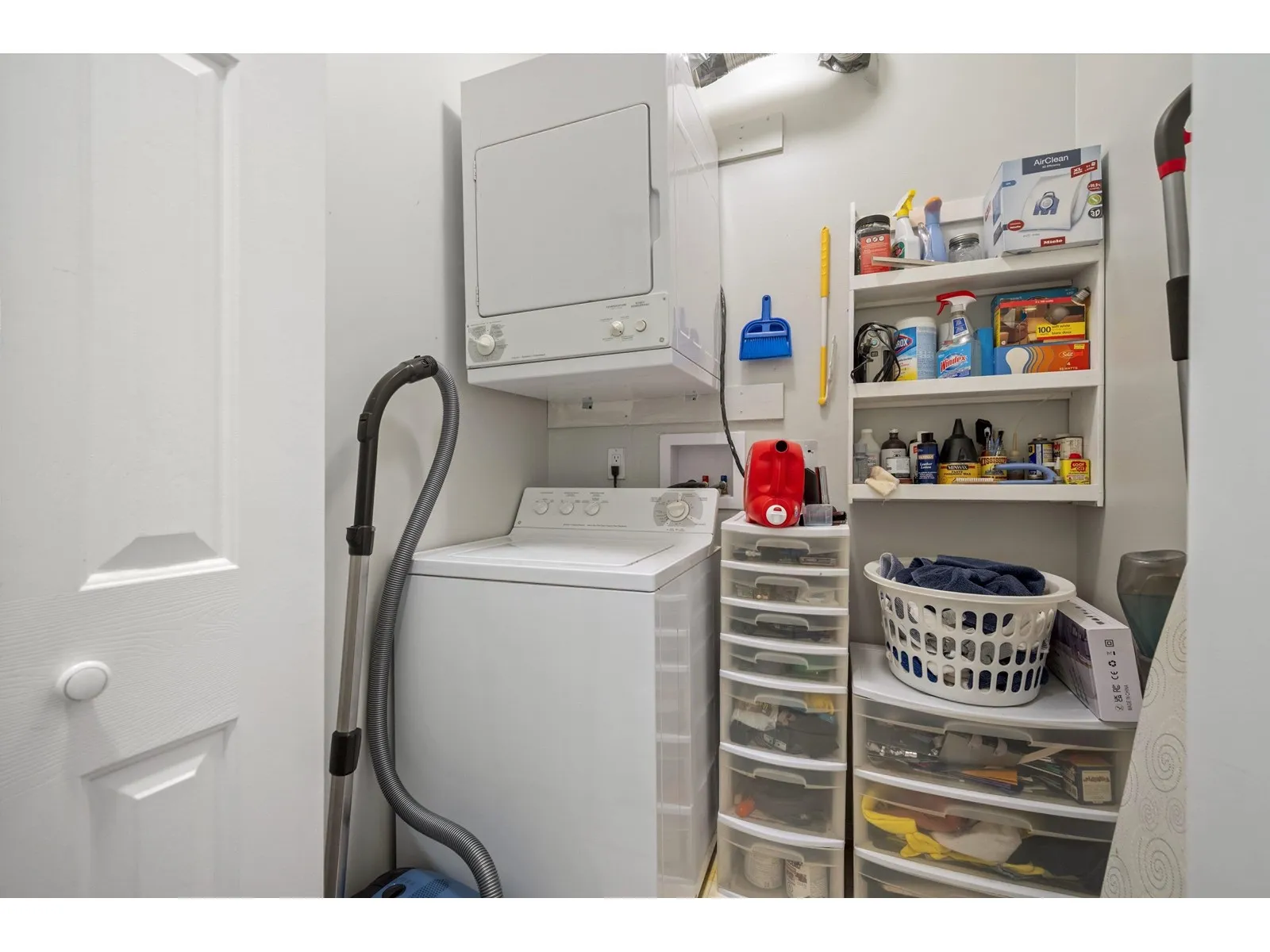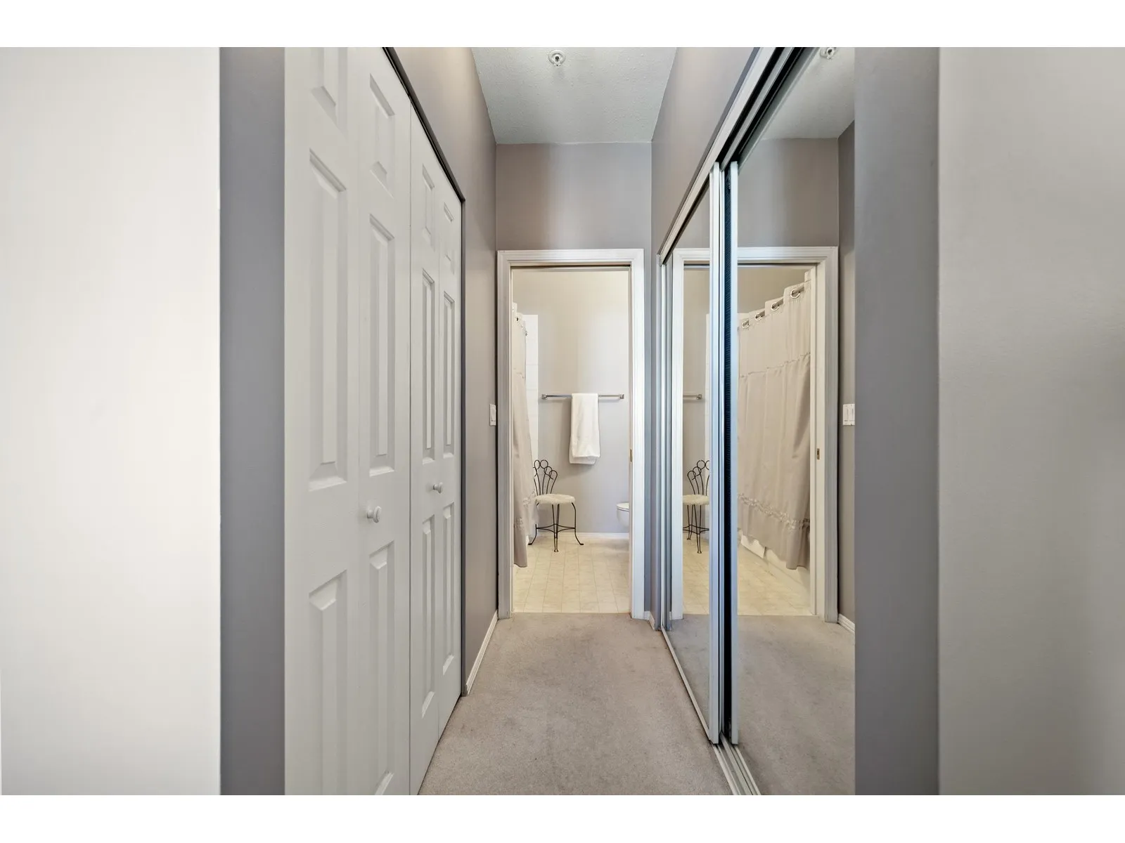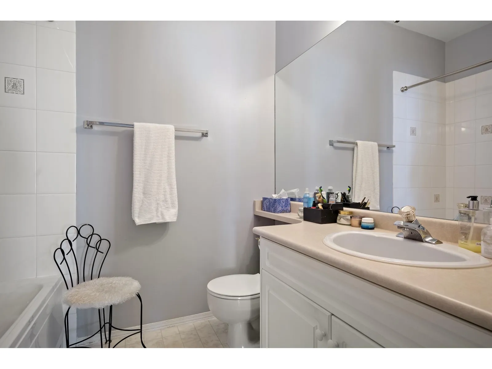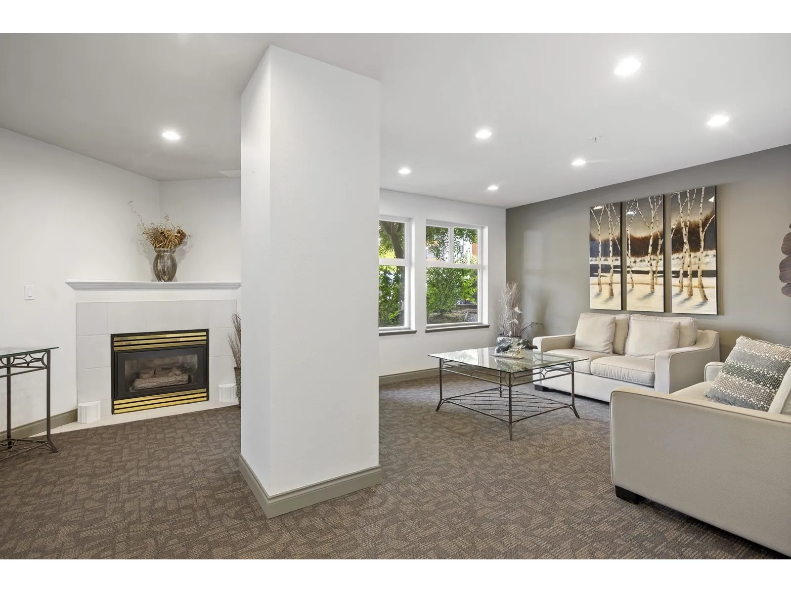 WELCOME HOME to this open floorplan with 9' ceilings! Your 2-bed, 2-bath home is a TOP FLOOR unit featuring laminate flooring, newer stainless steel appliances and beautiful quartz counters in the kitchen which overlooks the dining/living room. Cozy up in front of your gas fireplace or sip coffee from the deck off your living room. This home has a larger primary bedroom, a spacious laundry room, lots of storage and amenities that will wow you! Swimming pool and hot tub, guest suites, workshop, bike storage room, a clubhouse with kitchen, a gym and more. 1 dog permitted. Call today and make this your new home! (id:27476)