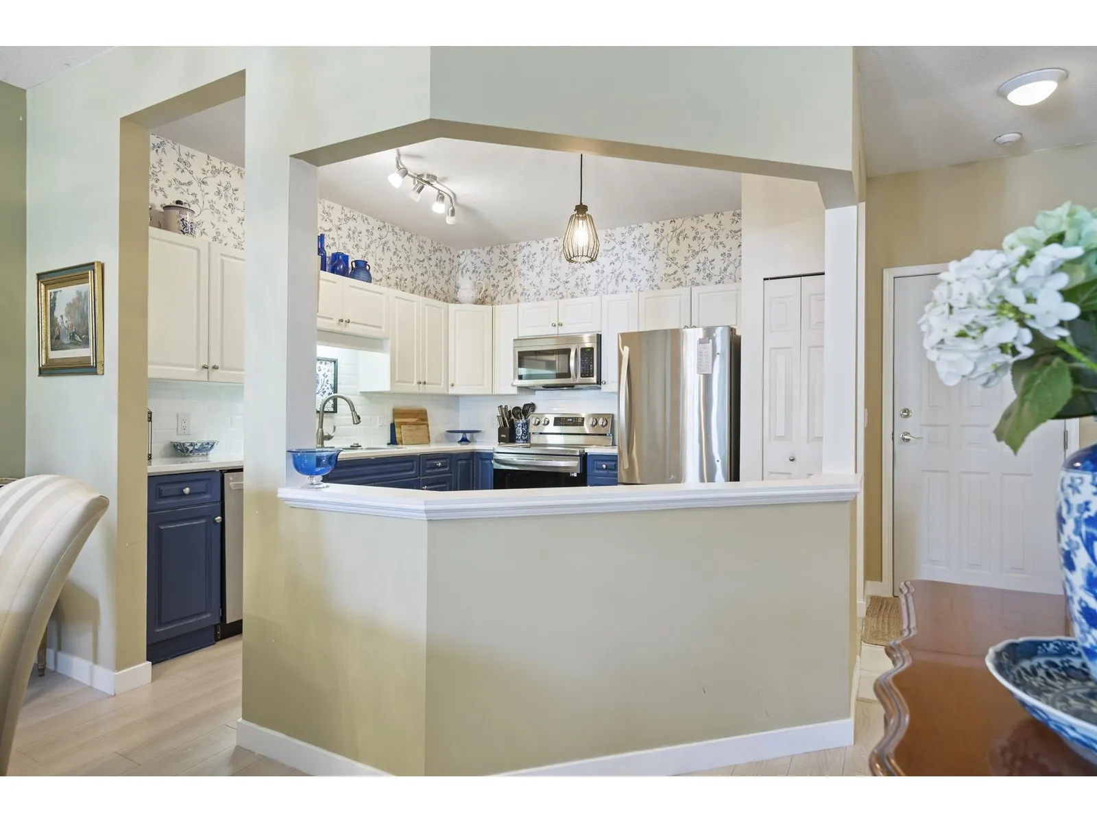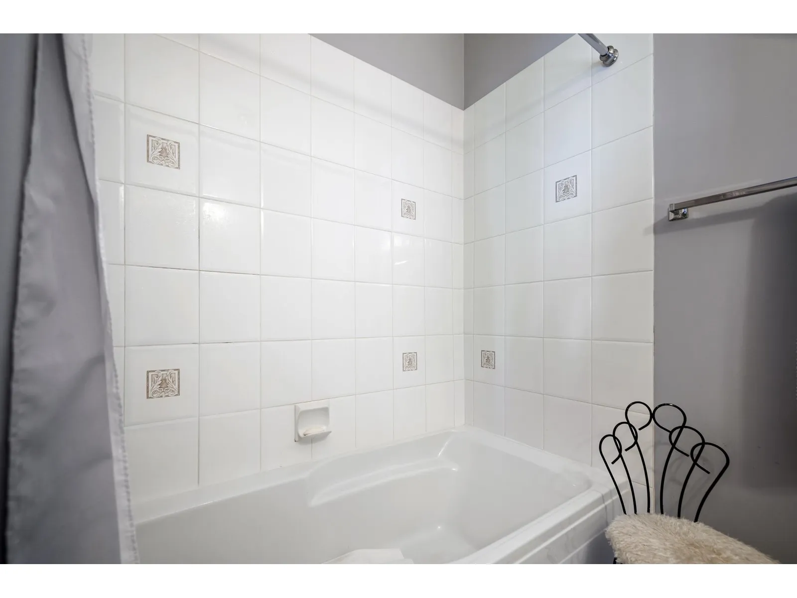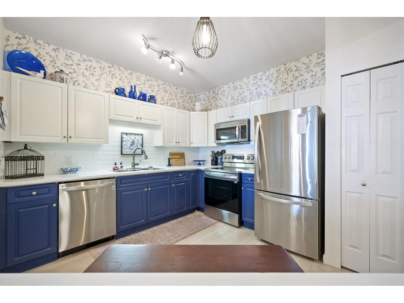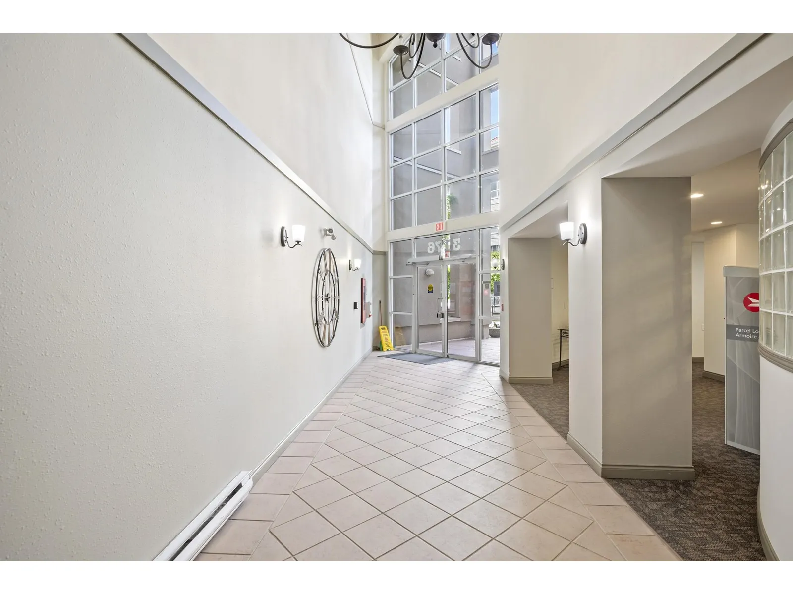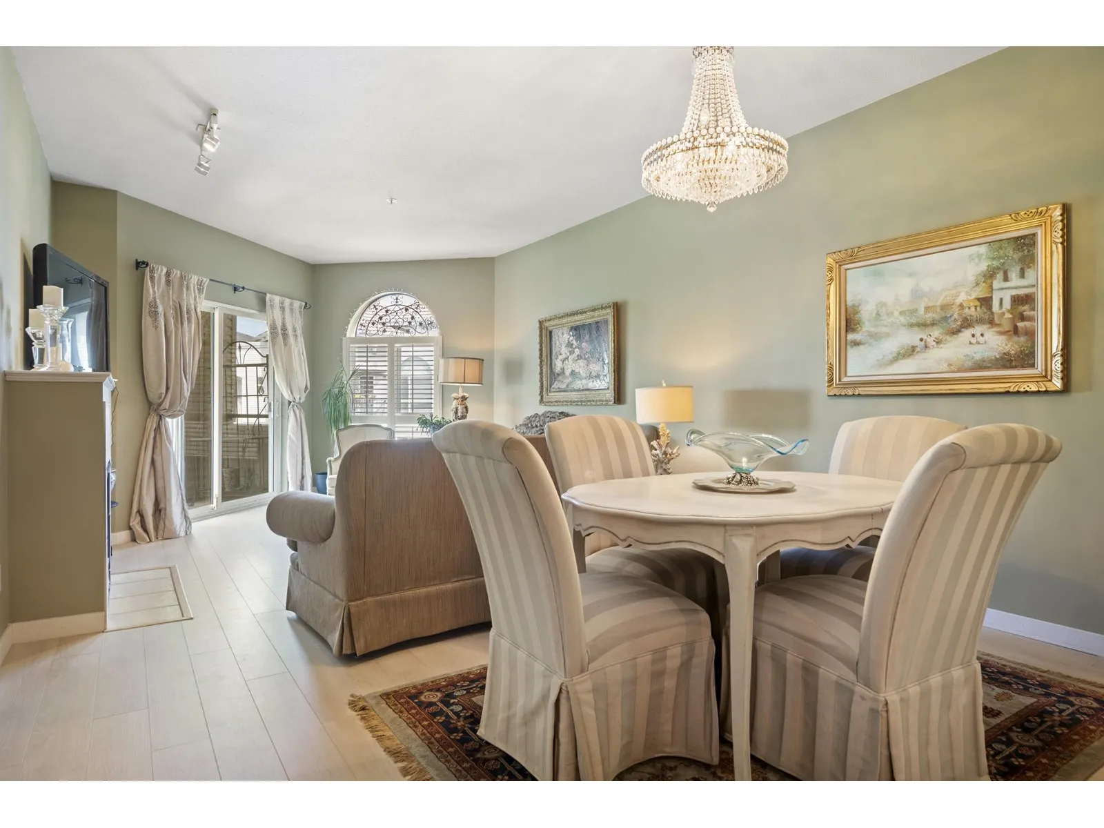 WELCOME HOME to this open floorplan with 9' ceilings! Your 2-bed, 2-bath home is a TOP FLOOR unit featuring laminate flooring, newer stainless steel appliances and beautiful quartz counters in the kitchen which overlooks the dining/living room. Cozy up in front of your gas fireplace or sip coffee from the deck off your living room. This home has a larger primary bedroom, a spacious laundry room, lots of storage and amenities that will wow you! Swimming pool and hot tub, guest suites, workshop, bike storage room, a clubhouse with kitchen, a gym and more. 1 dog permitted. Call today and make this your new home! (id:27476)
