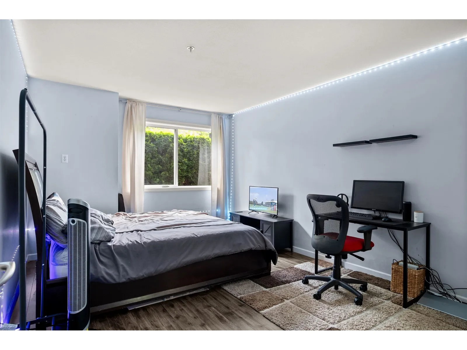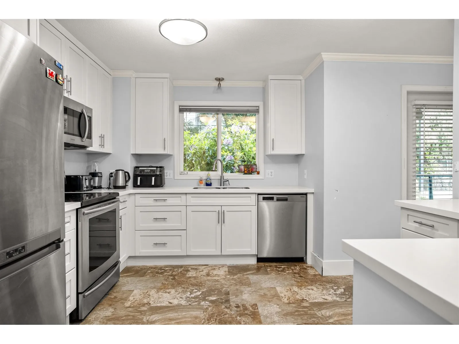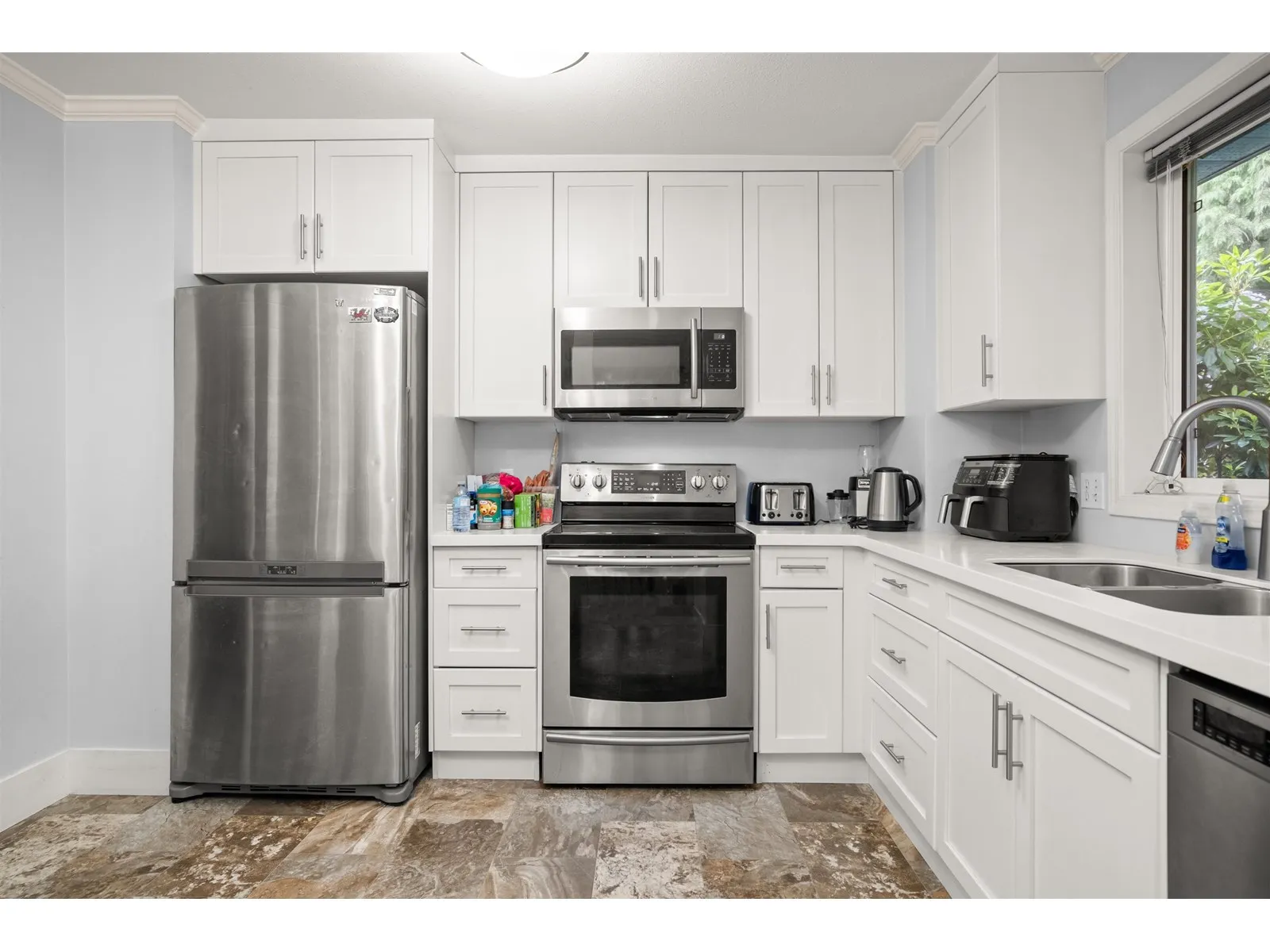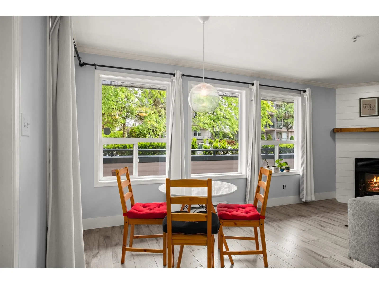 Stunning Fully Renovated 2BR/2BA Condo at College Park Place! This beautifully updated unit features high-end flooring,Appliances, modern kitchen cabinetry & countertops, and stylish bathrooms. Crown mouldings and premium paint throughout a spacious living room with a cozy gas fireplace. Enjoy a wrap-around balcony overlooking a quiet, private green space-perfect for morning coffee.Includes two parking spots (one covered) and ample visitor parking. Conveniently located near University of the Fraser Valley, Abbotsford Sports Arena, and quick HWY1 access. Pets and rentals allowed.Don't miss this opportunity before it's gone! (id:27476)