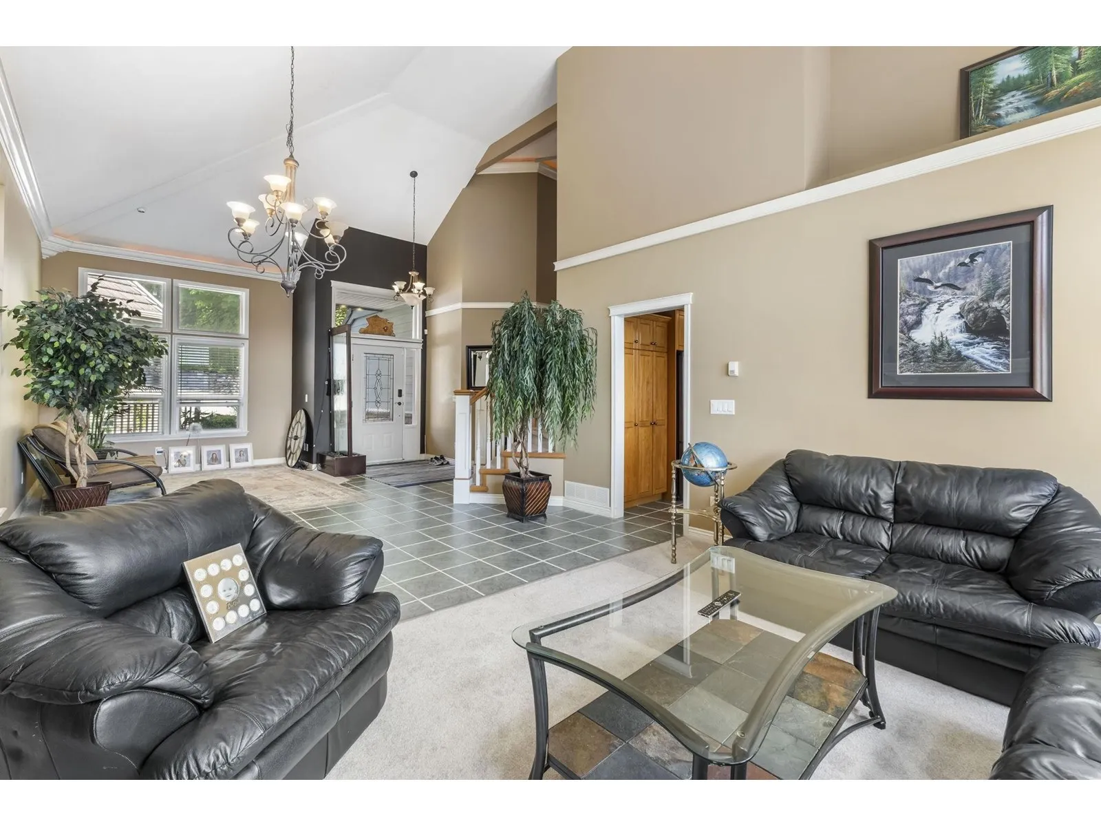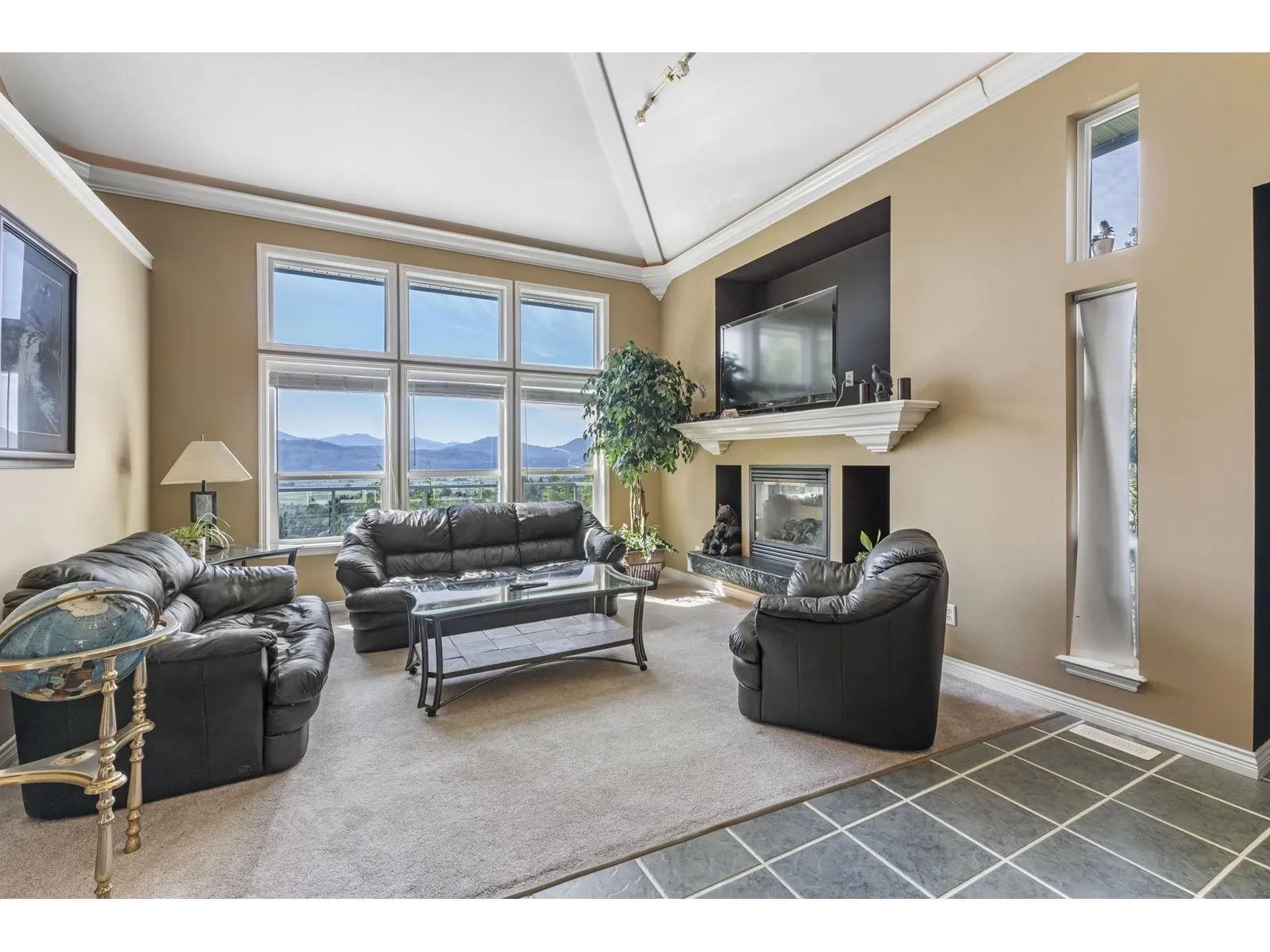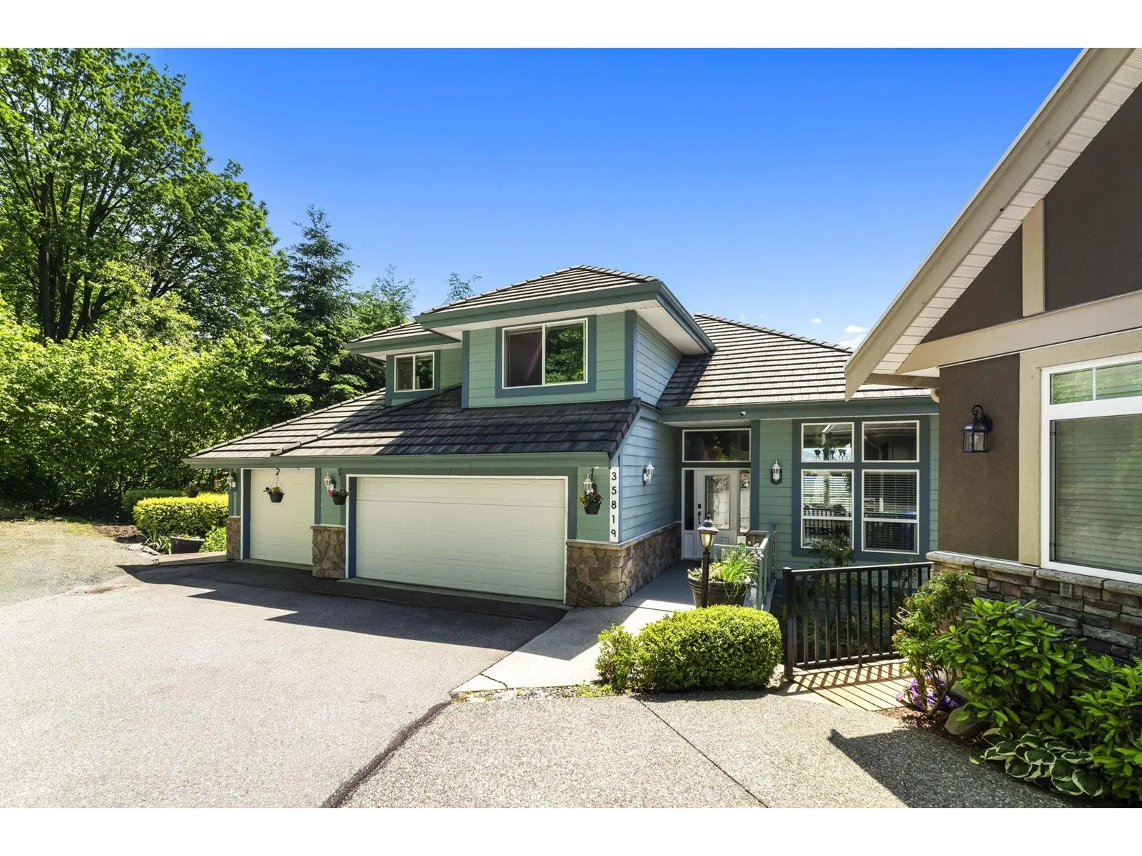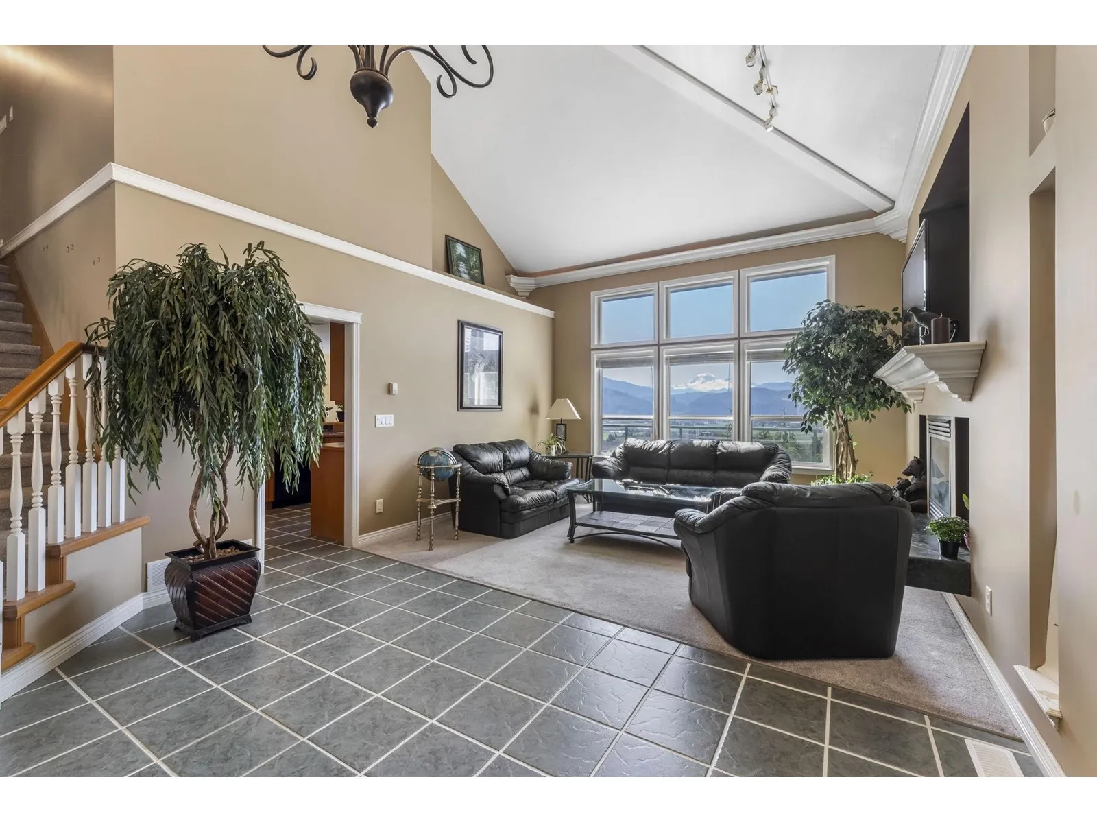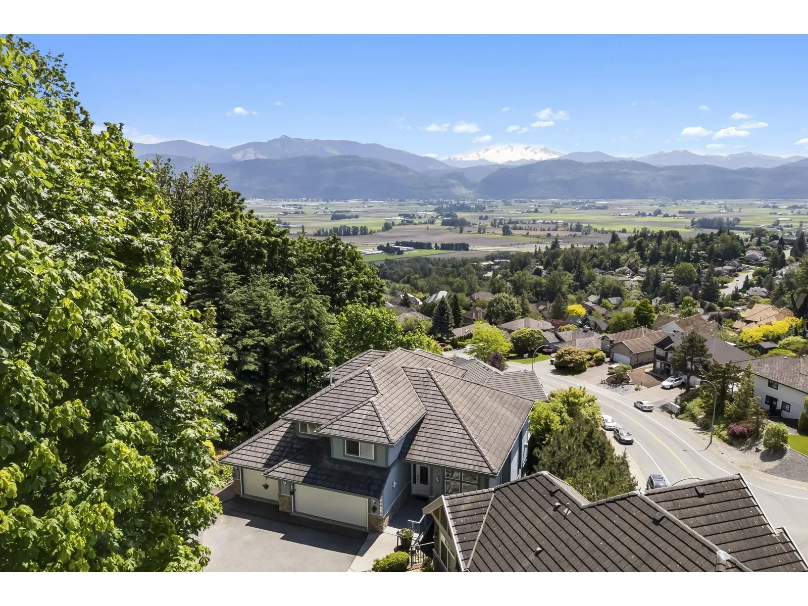 Perched atop prestigious Sumas Mountain, experience this 5500+ sqft luxury residence offering commanding views of Mt. Baker and the Fraser Valley from three expansive walk-out balconies. Backing onto a serene greenbelt on a 14,000+ sqft lot, this home blends privacy with grandeur. A rare 500+ sqft shop/bunker with 220 power lies beneath the triple garage, offering endless potential. Inside, a second kitchen enhances versatility-ideal for multi-generational living or a 2-storey income helper. Located in one of Abbotsford's top school catchments, with ample parking and elegant spaces for entertaining, this is a rare opportunity to live above the clouds! (id:27476)