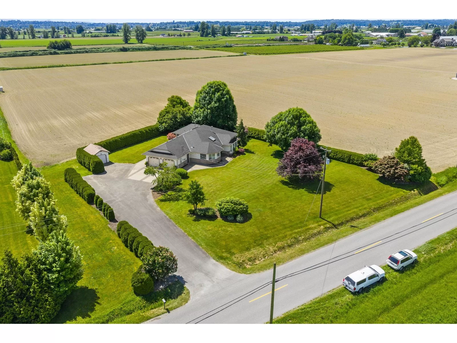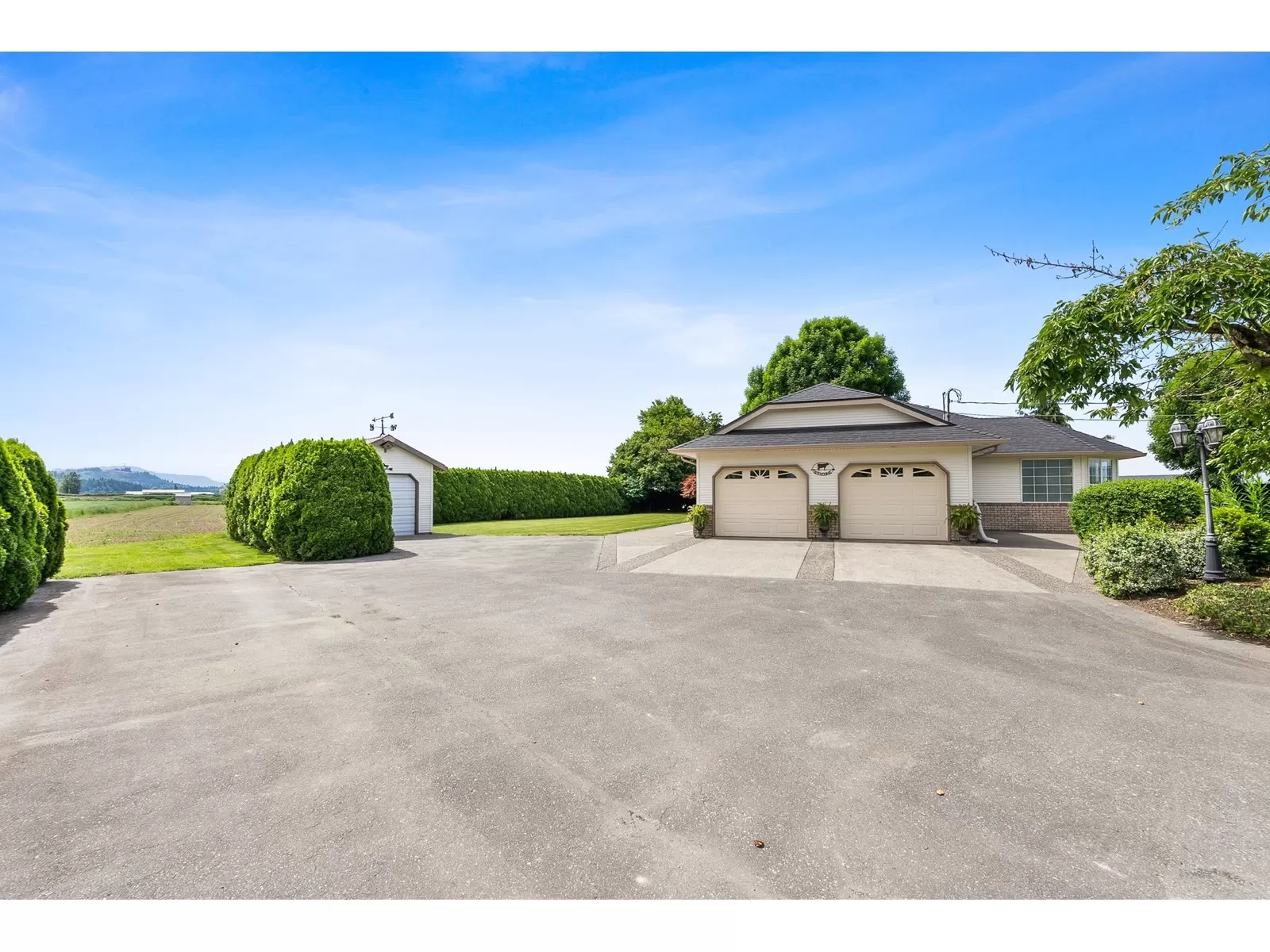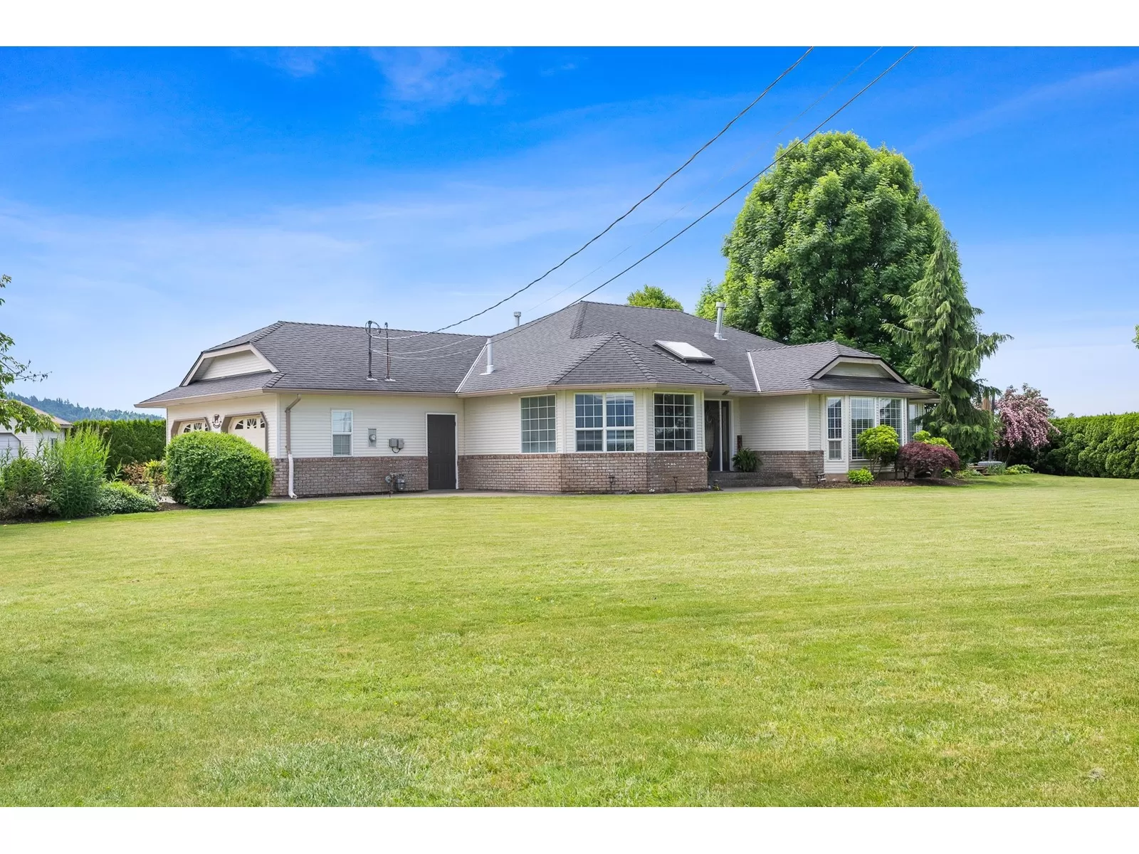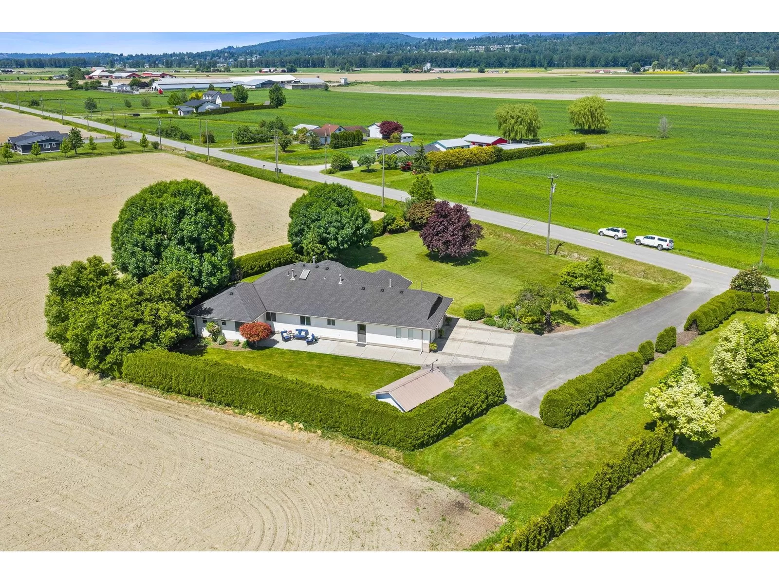 Family home on 10.5 Acres in Matsqui! Spacious 3 bed/2 bath 2,209 sq/ft rancher with flowing floorplan. Large primary bedroom complete with a walk-in closet and 4-pc ensuite. Many updates throughout including new roof, furnace, h/w tank, flooring, and paint throughout! Perfect for outdoor living, you'll love entertaining on the impressive 17'4" x 24'1" deck off the dining room/kitchen area. Double garage and 9'6" x 15'7" shed provide ample storage. Nestled in a quiet neighborhood, the peaceful backyard is beautifully bordered by trees and shrubs. The high-quality soil makes this property ideal for agricultural endeavors, and with A2 zoning, there's potential for an accessory farm dwelling. The property has 339.83 feet frontage and is serviced with natural gas and septic. This remarkable property combines comfortable living with farming possibilities in a serene setting. (id:27476)