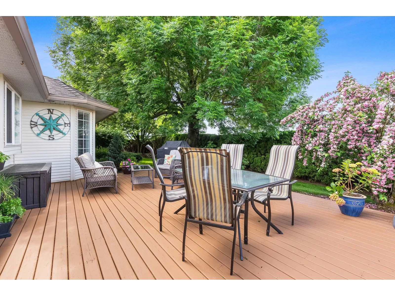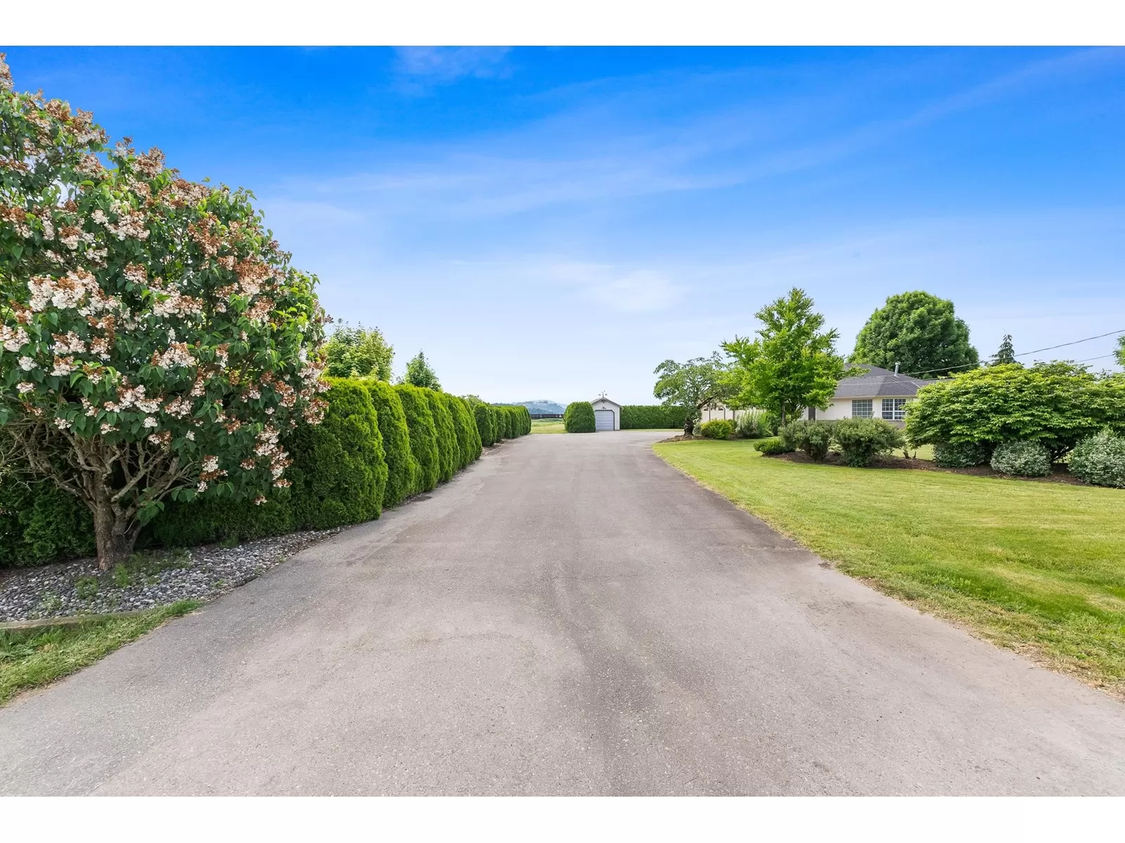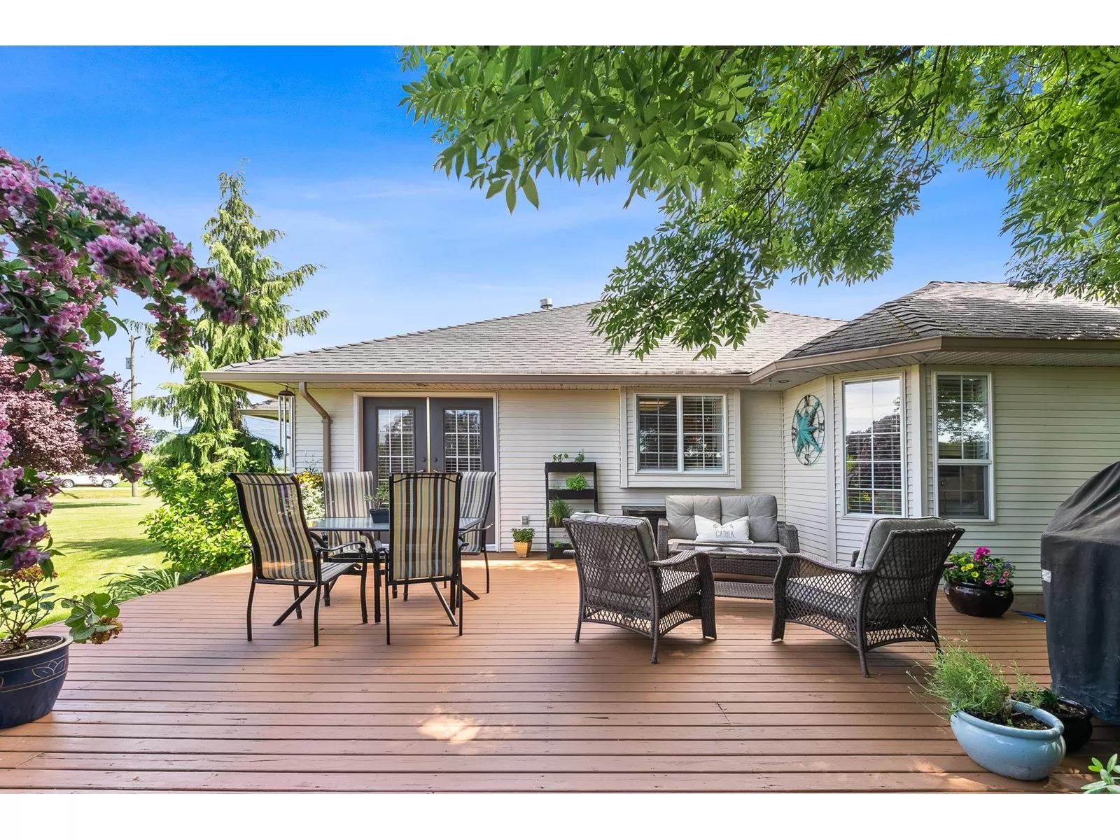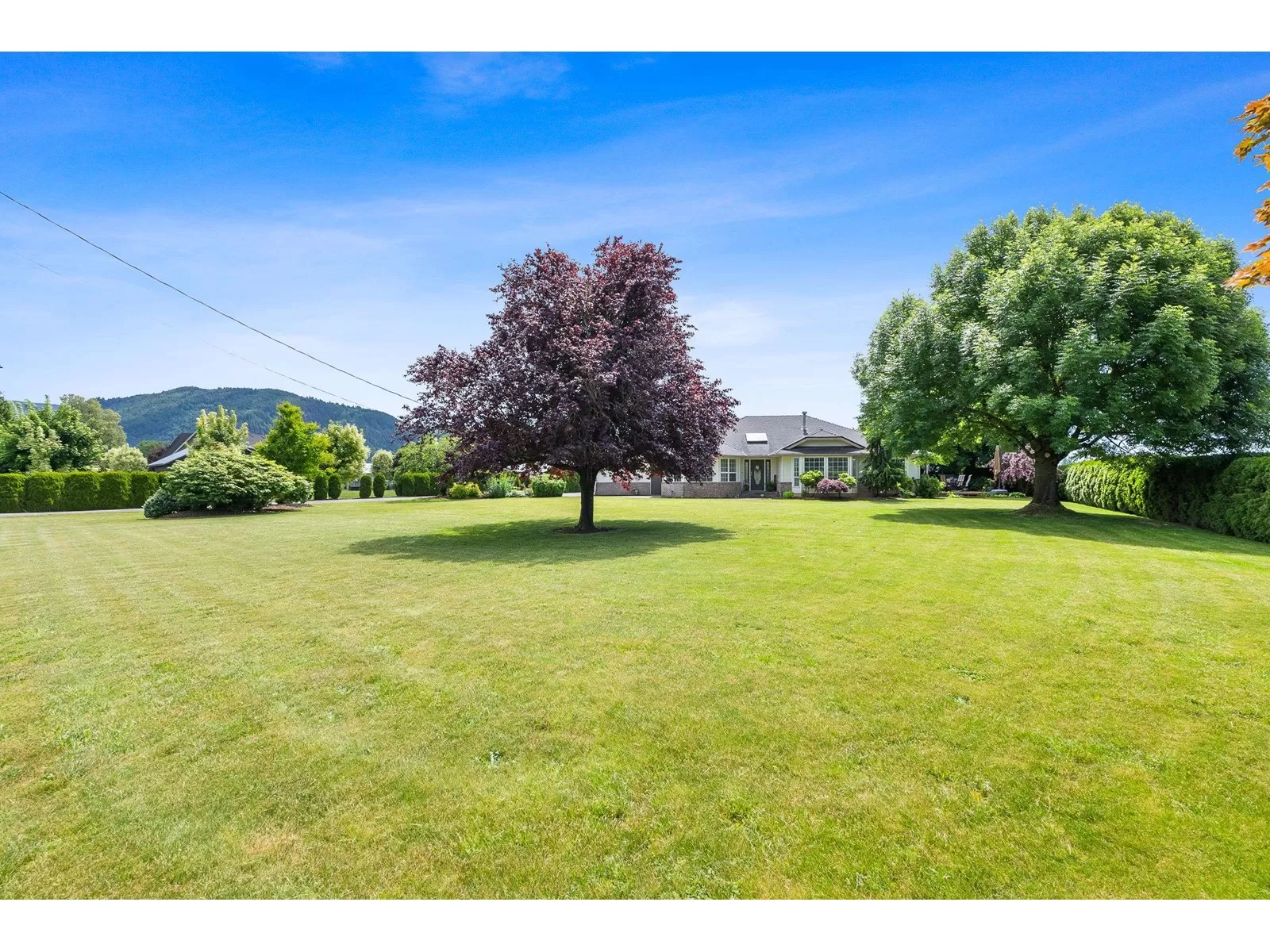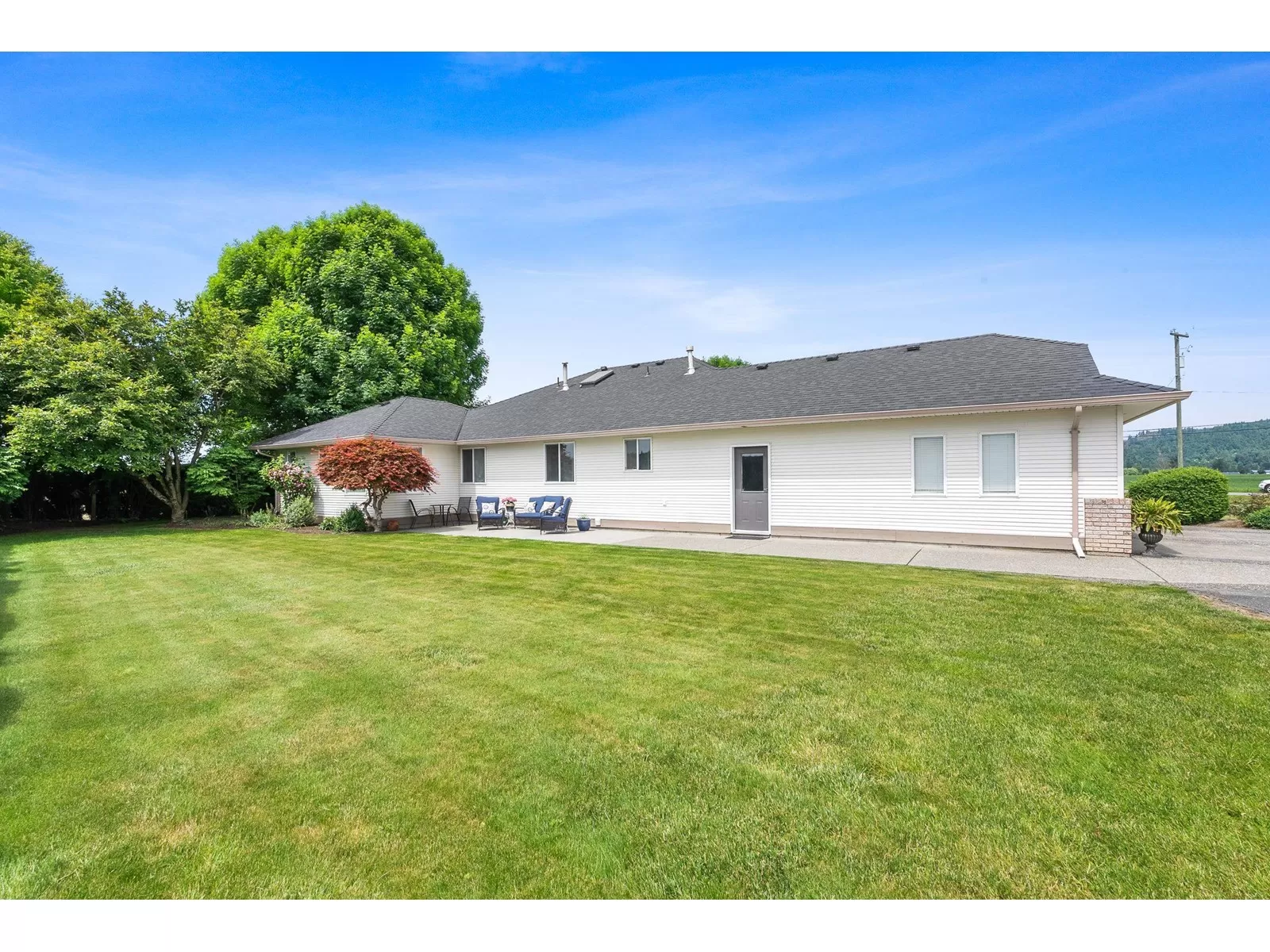 Family home on 10.5 Acres in Matsqui! Spacious 3 bed/2 bath 2,209 sq/ft rancher with flowing floorplan. Large primary bedroom complete with a walk-in closet and 4-pc ensuite. Many updates throughout including new roof, furnace, h/w tank, flooring, and paint throughout! Perfect for outdoor living, you'll love entertaining on the impressive 17'4" x 24'1" deck off the dining room/kitchen area. Double garage and 9'6" x 15'7" shed provide ample storage. Nestled in a quiet neighborhood, the peaceful backyard is beautifully bordered by trees and shrubs. The high-quality soil makes this property ideal for agricultural endeavors, and with A2 zoning, there's potential for an accessory farm dwelling. The property has 339.83 feet frontage and is serviced with natural gas and septic. This remarkable property combines comfortable living with farming possibilities in a serene setting. (id:27476)