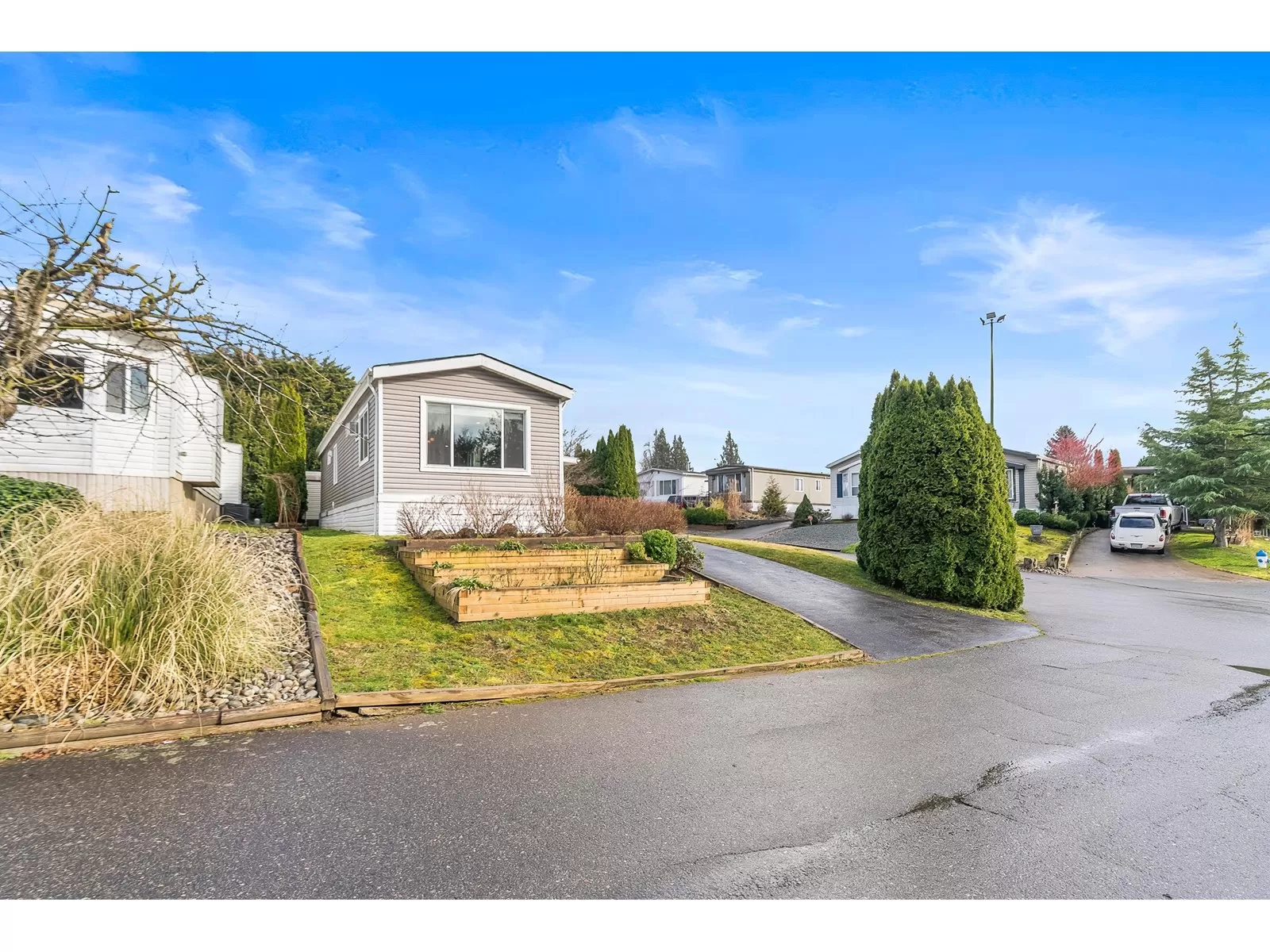Welcome to Maplewood Estates! A quiet 55+ age community located away from the hustle and bustle yet still just a short drive to most amenities. You will appreciate #31: a substantially renovated home including windows, siding, roof, skirting, deck, flooring, fixtures, appliances, air conditioning and more in 2018. Enjoy this choice location within the park featuring corner lot with lots of grass, space for garden beds and natural light. Ample parking with long driveway plus additional stall at back next to detached storage shed. Well run park, owner occupied park welcoming one small dog (12" height) and has onsite management. Vacant, clean and ready for your move-in! (id:27476)