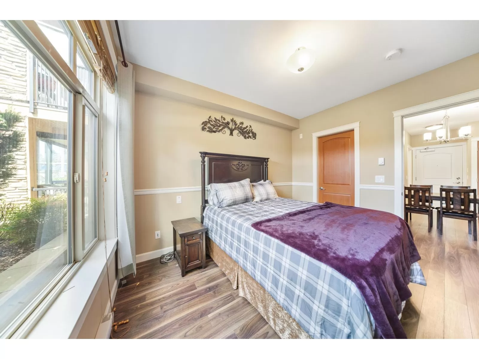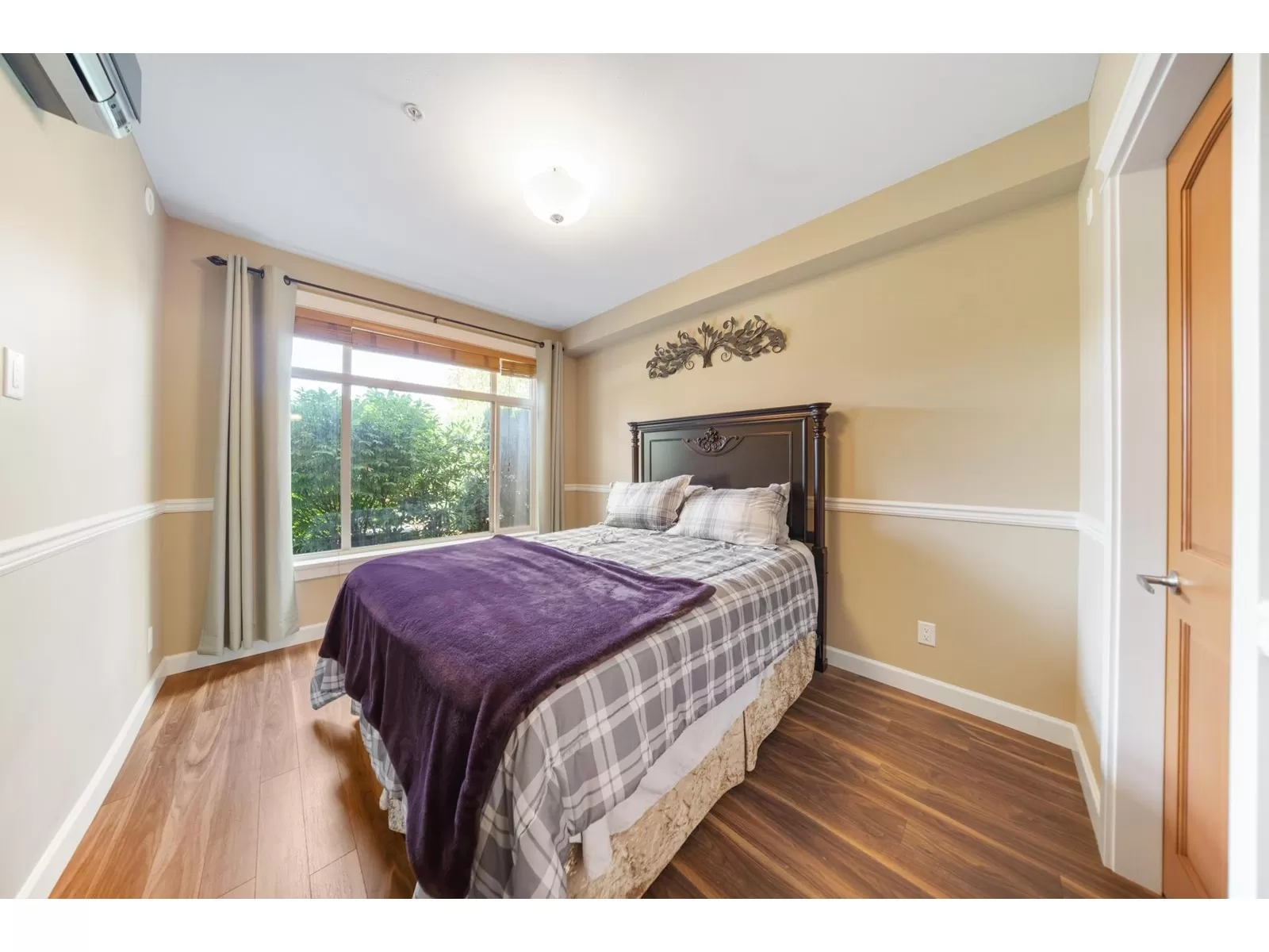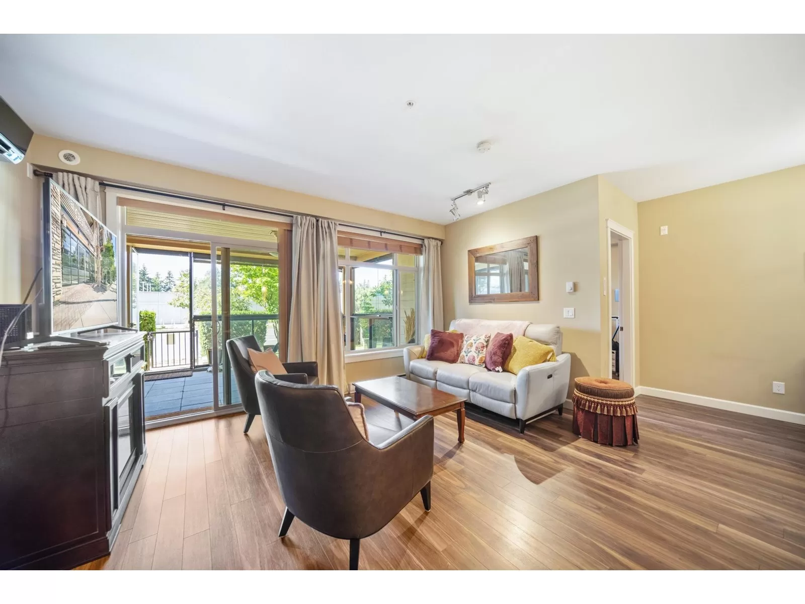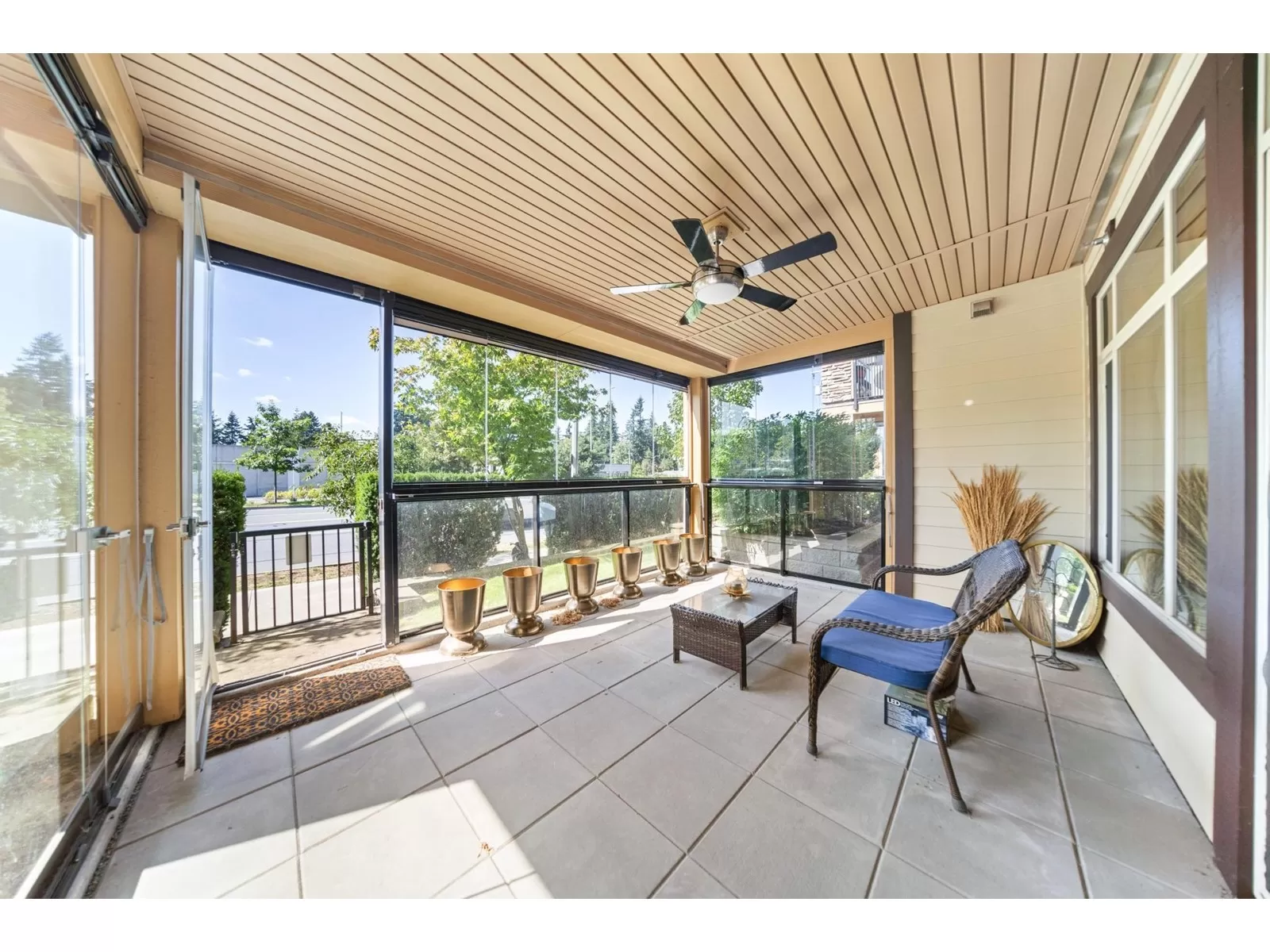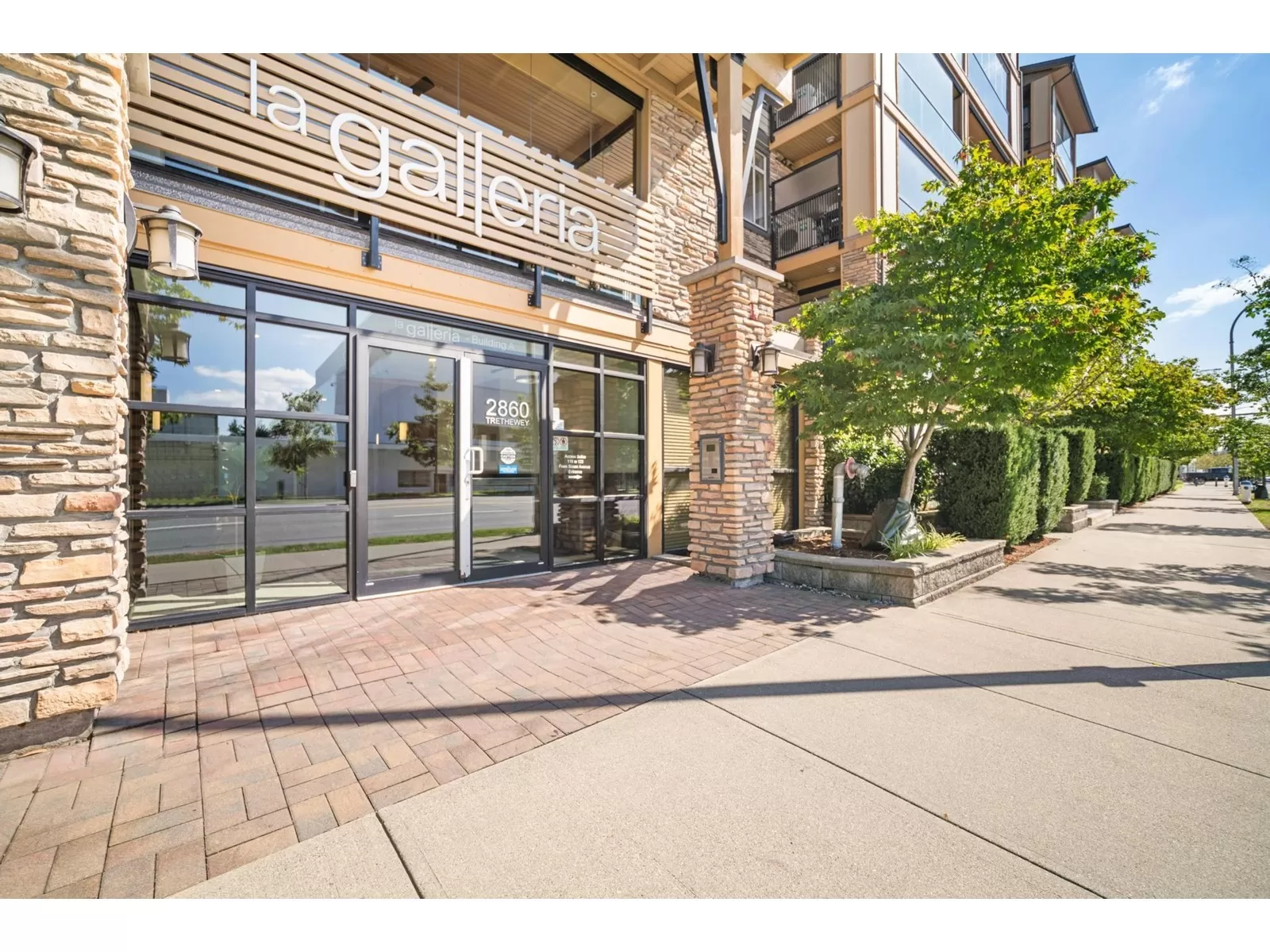 Welcome to this stunning Ground Floor A unit at La Galleria, offering a house-like feel with direct access to the sidewalk. Perfect for dog walks, this 2-bedroom + den, 2-bathroom home features heated floors, fog-free mirrors, and a gourmet kitchen with quartz countertops, ample cabinets, and stainless steel appliances. The spacious master ensuite boasts double sinks and a large shower. Enjoy the solarium, with glass panels that open for fresh air or close for year-round comfort. Includes 2 parking stalls, storage unit, and a prime location near shopping, Lifelabs, police station, library, and recreation center. Your new home awaits! (id:27476)