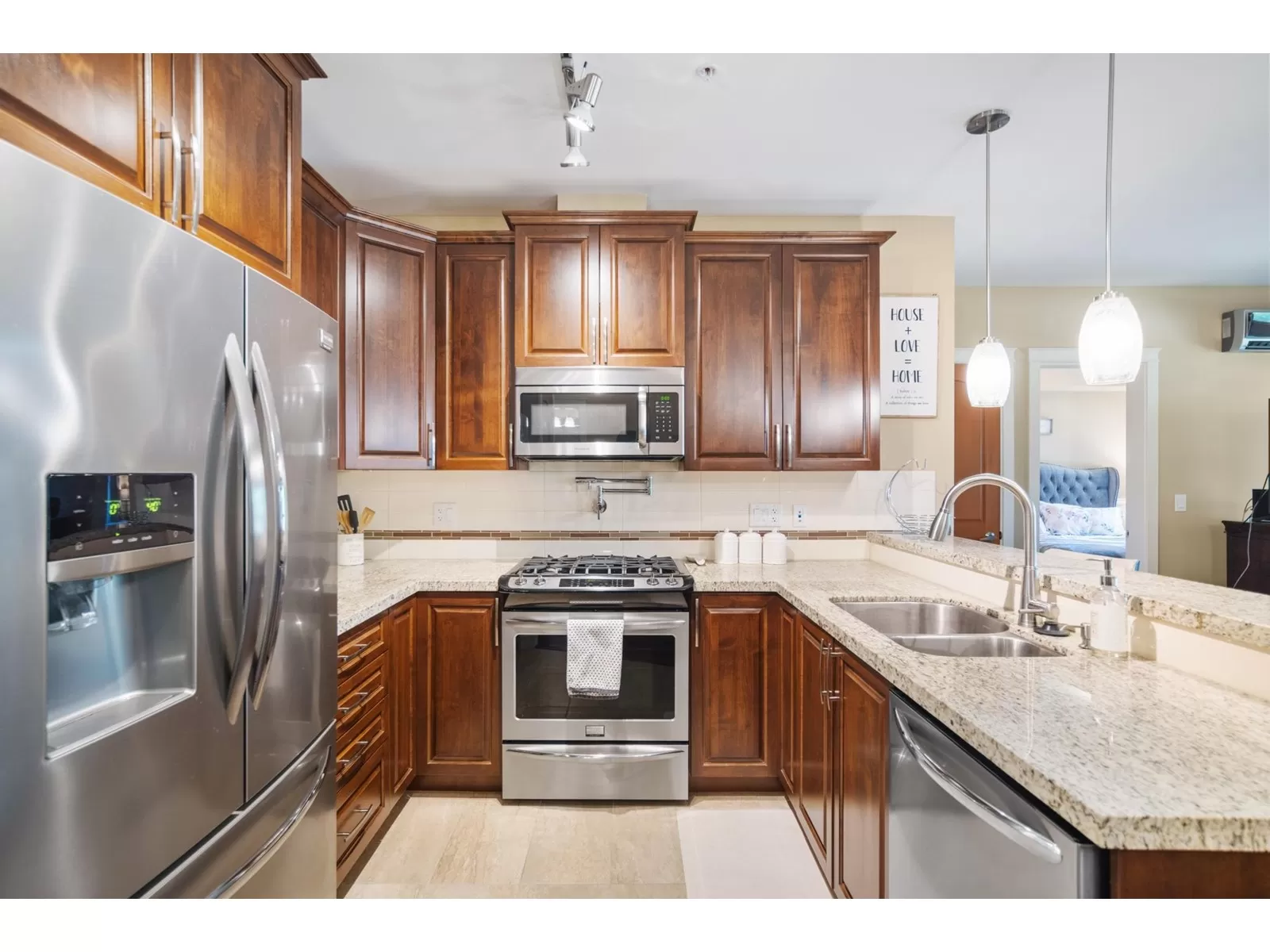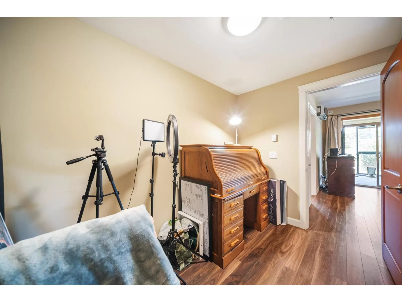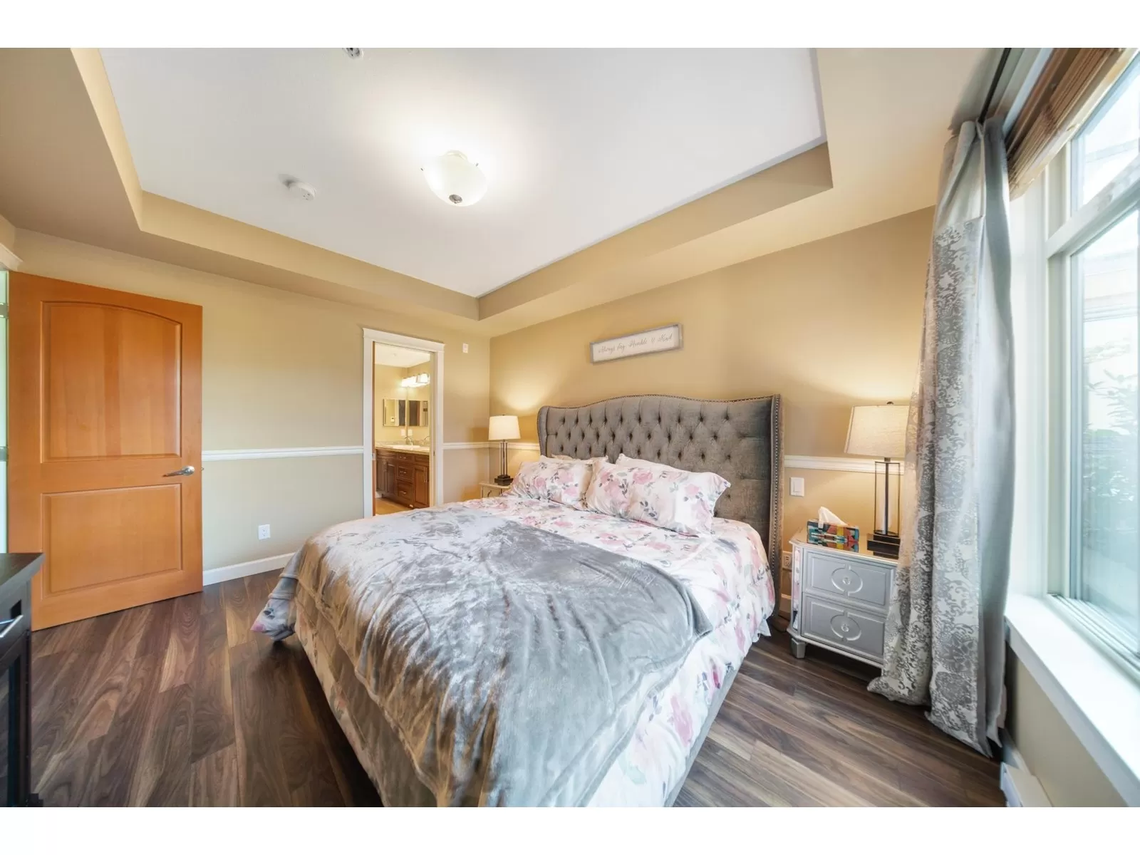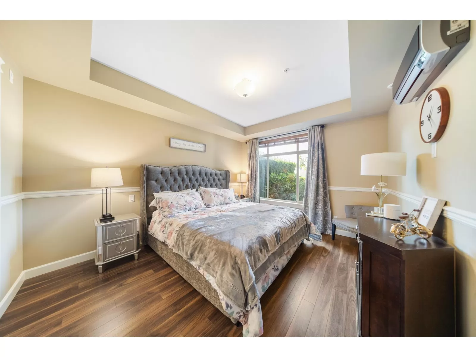 Welcome to this stunning Ground Floor A unit at La Galleria, offering a house-like feel with direct access to the sidewalk. Perfect for dog walks, this 2-bedroom + den, 2-bathroom home features heated floors, fog-free mirrors, and a gourmet kitchen with quartz countertops, ample cabinets, and stainless steel appliances. The spacious master ensuite boasts double sinks and a large shower. Enjoy the solarium, with glass panels that open for fresh air or close for year-round comfort. Includes 2 parking stalls, storage unit, and a prime location near shopping, Lifelabs, police station, library, and recreation center. Your new home awaits! (id:27476)
