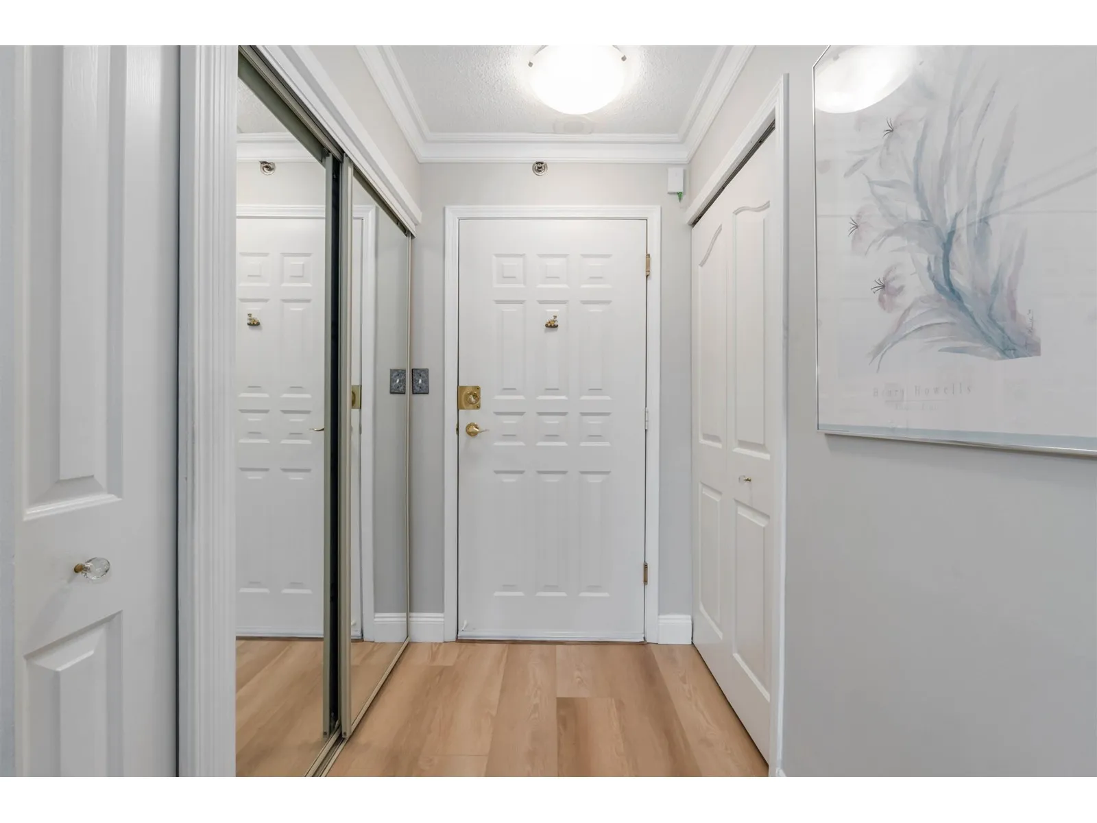 Welcome to Regency Park - this bright, spacious corner unit is in a 55+ building within one of Abbotsford's most sought-after gated communities in a parklike setting. Enjoy stunning mountain views from your large private balcony and brand new luxury flooring throughout. The layout features 2 bedrooms; the generously sized primary includes a walk-in closet and 4-pc en-suite, plus a second 3-pc bathroom. Resort-style amenities: indoor pool, gym, hair salon, car wash, workshop, 3 guest suites, games & billiards room, library, party room with kitchen, outdoor BBQ area & more. 1 parking & 1 storage locker included, and low maintenance fees. Just minutes to Mill Lake, Sevenoaks Shopping Centre, Grocery stores, walking trails, dining and more. Comfort, convenience & community await! (id:27476)