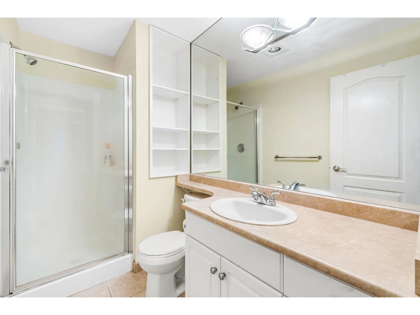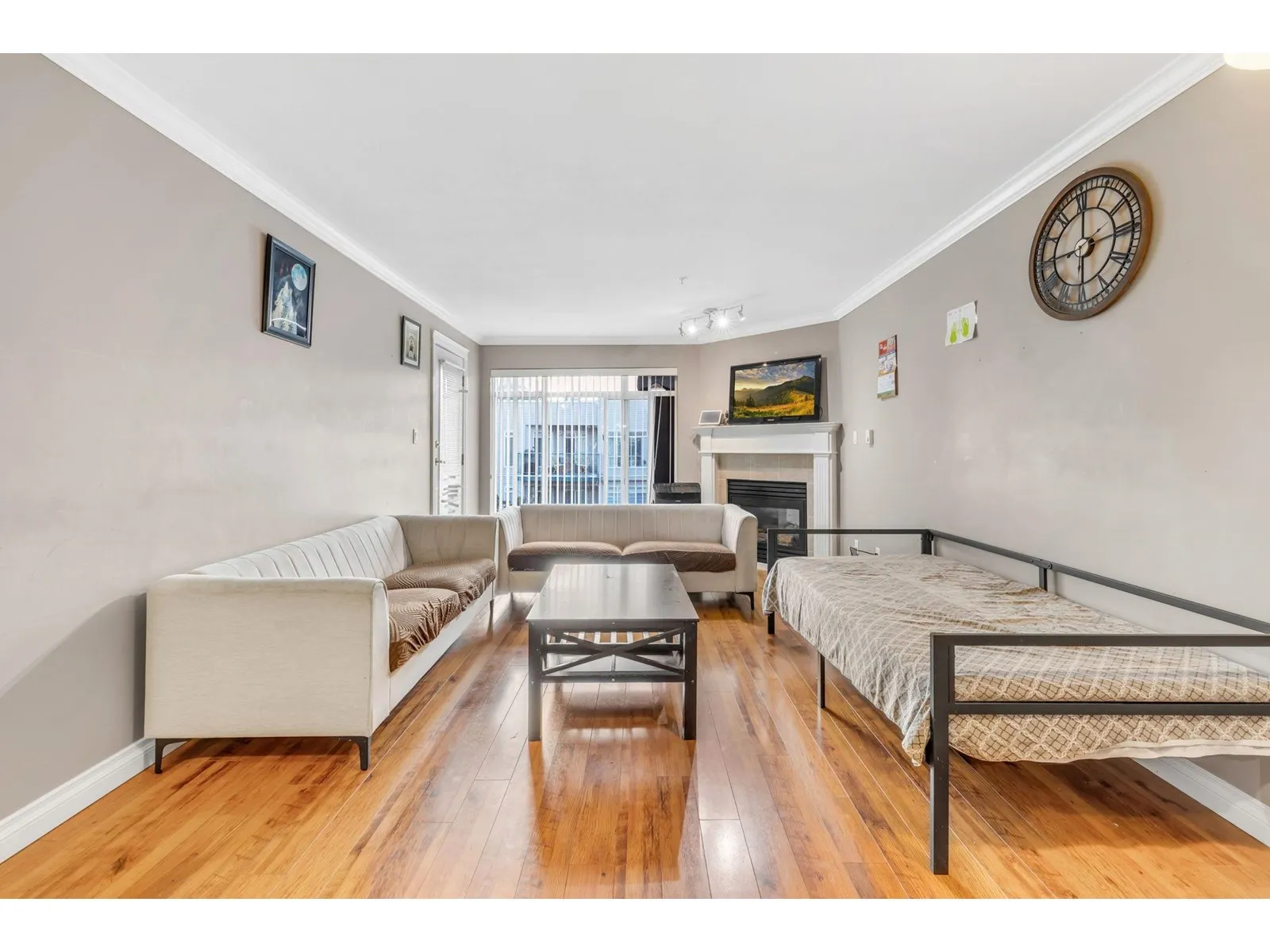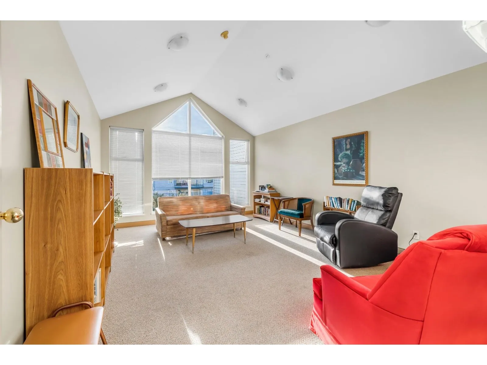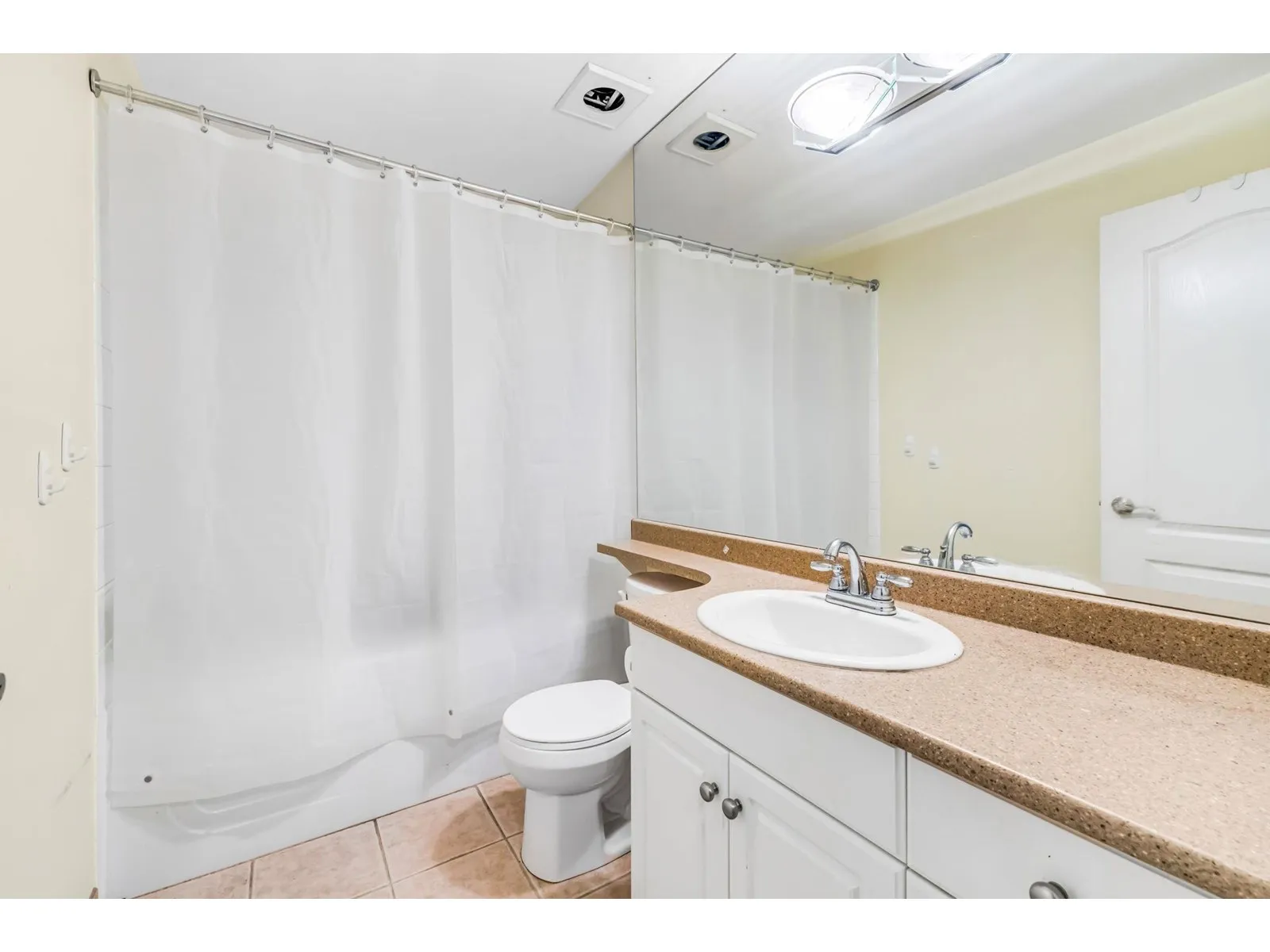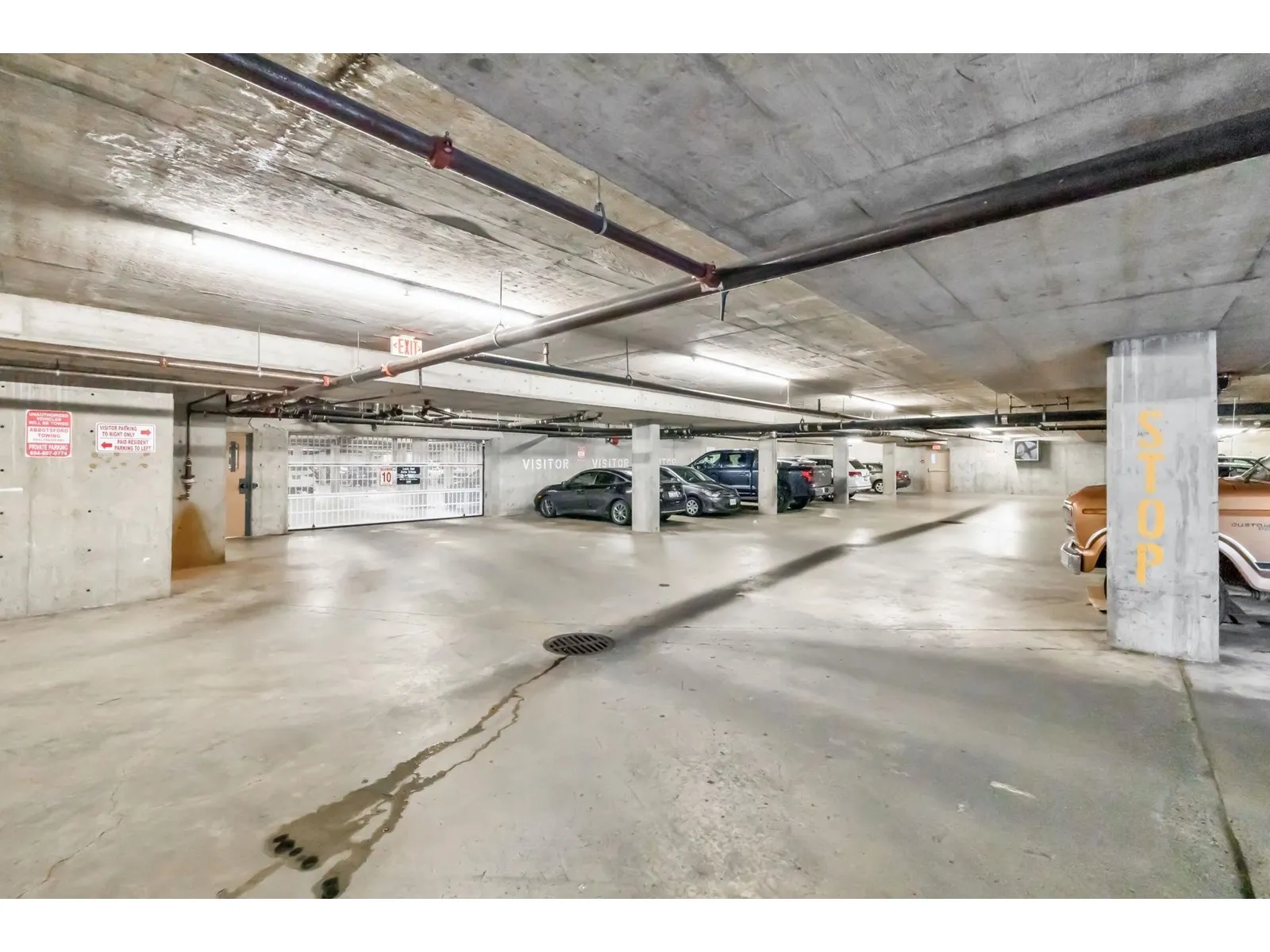 This top-floor, bright, and spacious unit at Arbour Court offers over 1,000 sqft of thoughtfully designed living space with 2 bedrooms, 2 bathrooms and 2 Parking. The open layout features a cozy gas fireplace, elegant laminate flooring, and a modern white kitchen with stainless steel appliances. Crown moulding adds sophistication, and large windows showcase views of the inner courtyard and North Shore Mountains. The primary bedroom has an ensuite, plus a second bedroom with a shared bath. Enjoy in-suite laundry, additional storage, and proximity to transit, shopping, recreation, and John MacLure School. (id:27476)