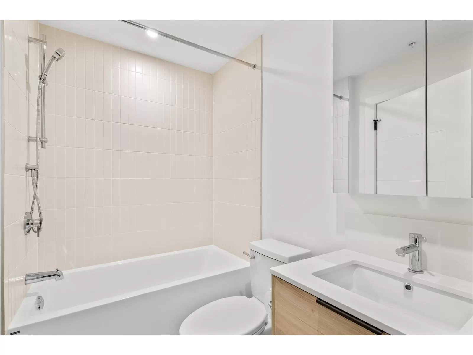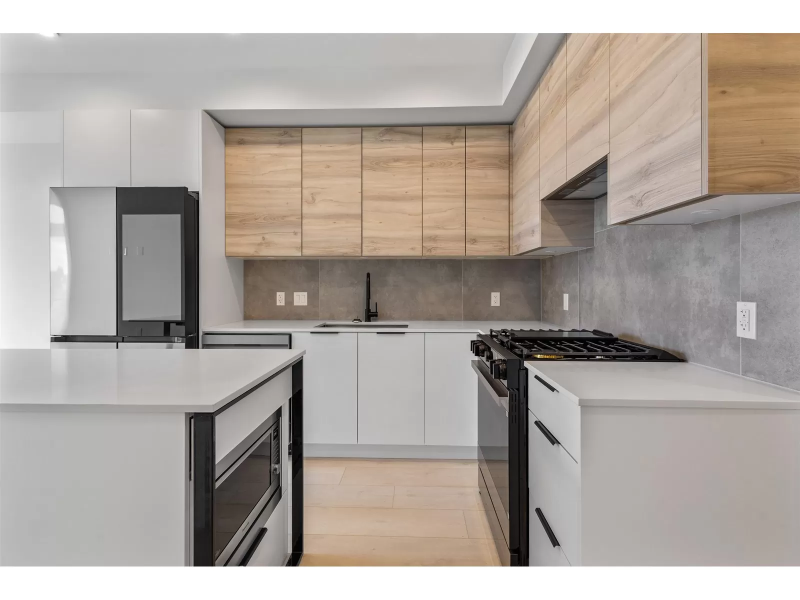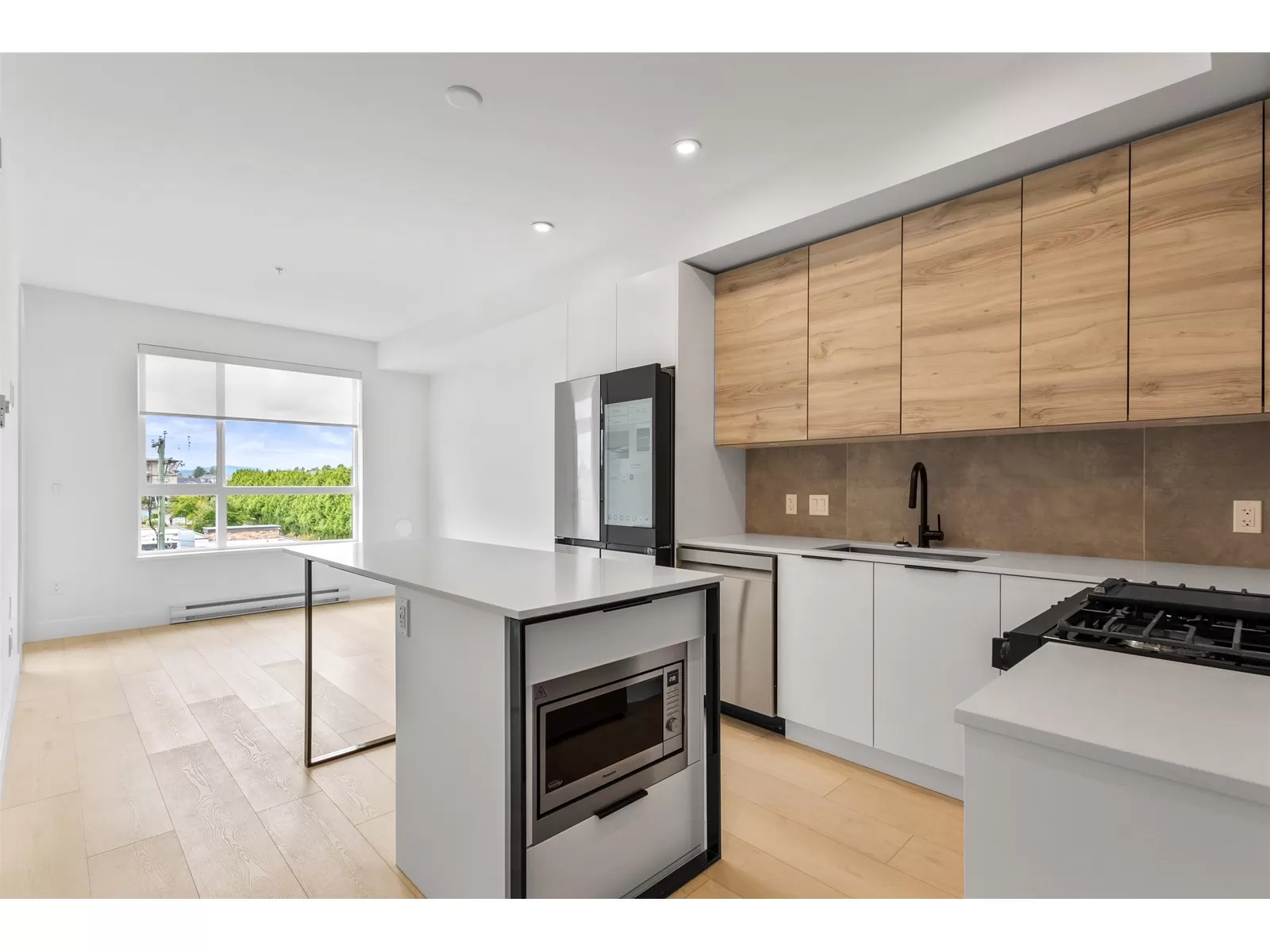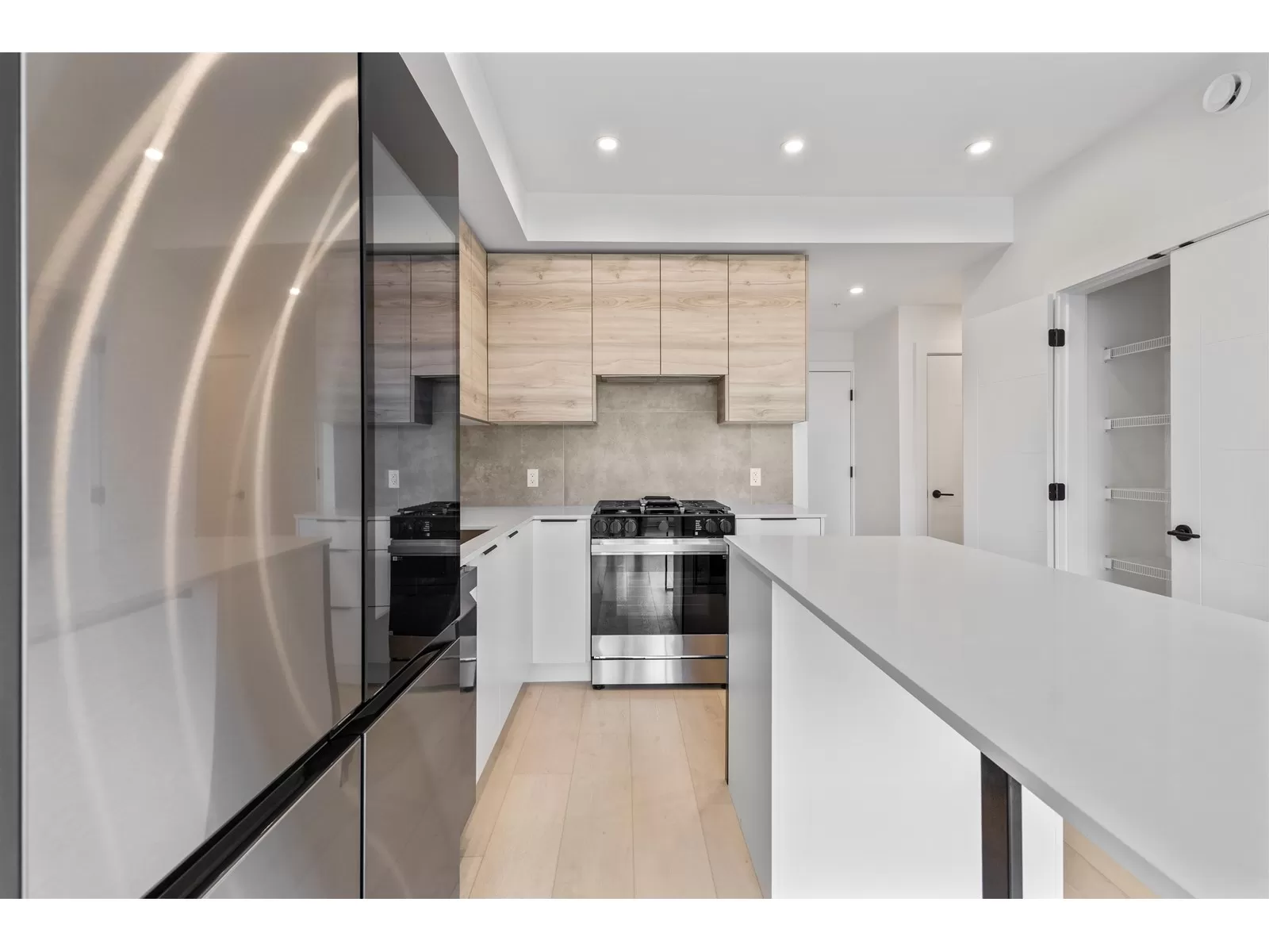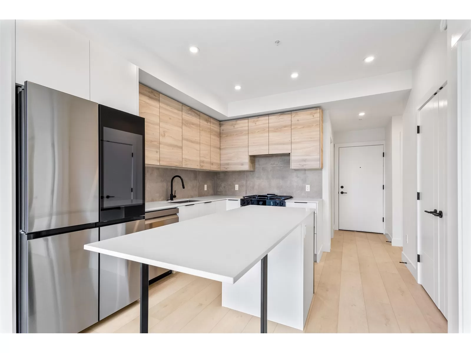 Modern living at Highstreet Village! This sleek 1-bed + den, 1-bath unit features 9' ceilings, quartz countertops, two-tone cabinetry, and premium stainless steel appliances-including a cutting-edge AI-powered smart fridge that tracks your groceries. Enjoy a spa-inspired bathroom with a deep soaker tub, plus one underground parking stall and storage locker. Steps from Highstreet Shopping Centre (cafés, Cineplex VIP, shops, transit), top schools, and to Hwy?access. Close to UFV, and Abbotsford Airport. Residents can also enjoy a gym, rooftop terrace, indoor lounge/workspace, and children's play area. Perfect for first-time buyers, young professionals, or savvy investors- NO GST! This one won't last! (id:27476)