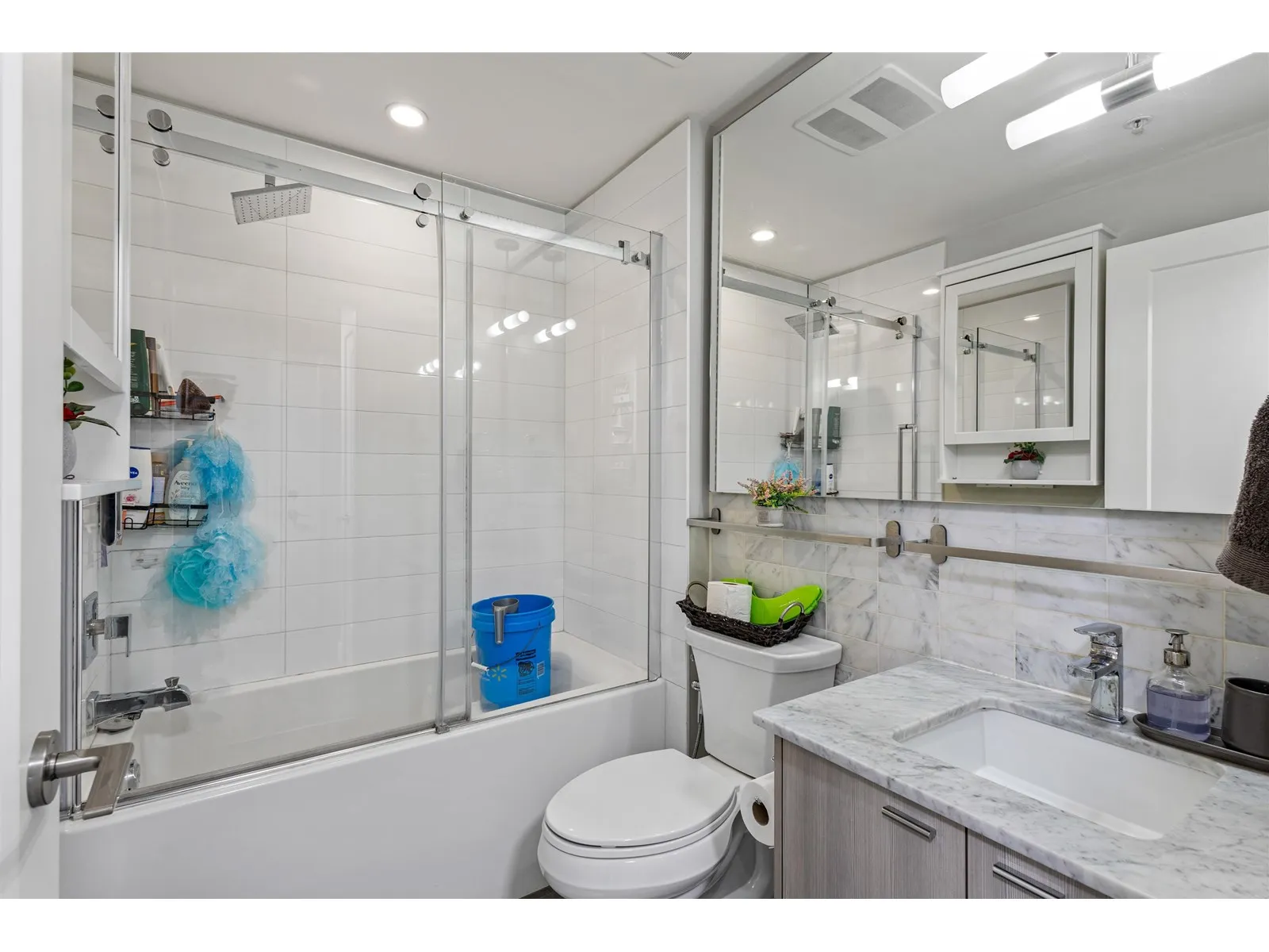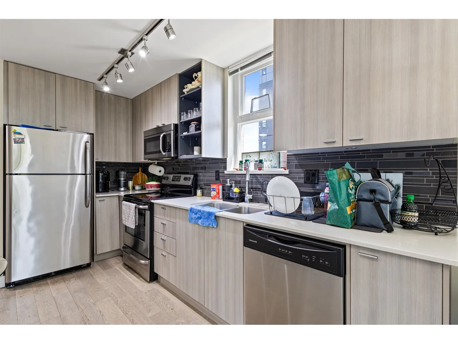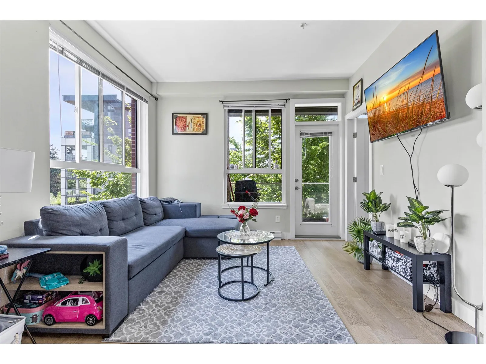 Beautiful South-East corner unit in "Hudson's Loft" conveniently located in trendy Central Village, where you are steps away from trendy restaurants and cafes. This corner unit with over +600 square foot of living space + balcony and features tons bright natural light. 2 Underground parkings side by side and storage locker. Modern contemporary kitchen with stainless steel appliances and high end quartz countertops. Thoughtful floor-plan with enhanced privacy featuring bedrooms on opposite sides. Open house 12:00-2:00pm on June 28 & June 29 (id:27476)