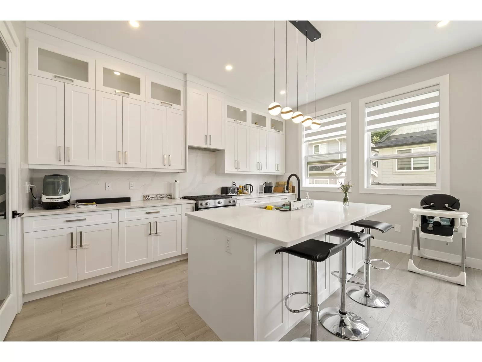 Modern Living in East Abbotsford! This stunning 4-bedroom, 3.5-bath home offers over 2,500 sqft of stylish, functional living space on a well-appointed 3,233 sqft lot. Designed with contemporary comfort in mind, the home features an open-concept layout. Enjoy cooking in the sleek, modern kitchen equipped with gas appliances, stone countertops, and a spacious island-perfect for family gatherings and entertaining. The bright and airy living areas flow seamlessly, while generous bedrooms provide space for everyone. (id:27476)