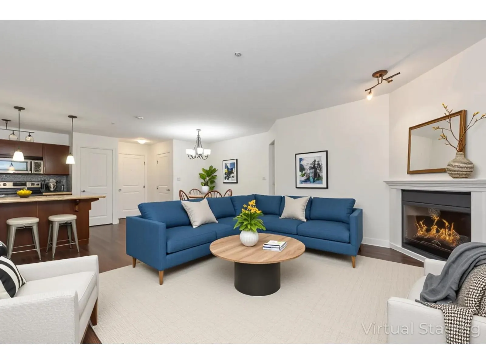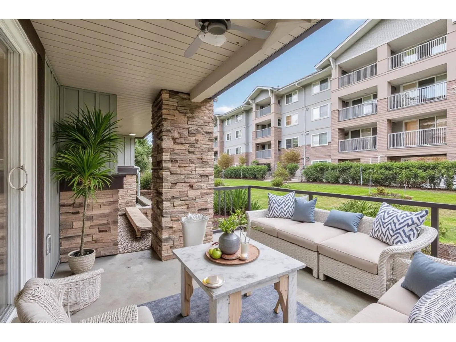 Welcome Home! The ELEMENT on Sandalwood Crescent, a perfect blend of comfort and convenience in the heart of Abbotsford! This cozy 2 Bed, 2 bathroom condo is on located on the quiet side of the building. Enjoy a bright and airy layout with a modern kitchen, cozy living room with fireplace, and direct walk-out access to a covered patio perfect for pets and ideal for morning coffee or evening relaxation. The master bedroom boasts a full ensuite and generous closet space. Ideal location centrally located just blocks to the Fraser Valley Regional Hospital and University of the Fraser Valley (UFV) This well-managed building is in a great area just steps from Mill Lake, Sevenoaks Mall, transit, and more. Pet-friendly and move-in ready - includes a RARE, TWO underground parking spaces & storage. (id:27476)