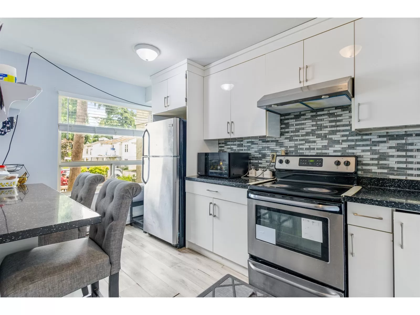 3 Bed, 2 Bath Townhouse - Central Abbotsford. This updated townhouse offers a bright, open-concept layout with a renovated kitchen featuring sleek counters and stainless steel appliances. The main floor flows seamlessly into a fully concrete private yard with a covered patio-perfect for outdoor cooking and entertaining, rain or shine. Enjoy close proximity to all school levels: W.J. Mouat Secondary, Columbia Bible College, and just a 10-minute drive to UFV. You're steps from Rotary Stadium (4,000 seats, rubberized 400m track) and the Matsqui Recreation Centre (pool, gym, sauna). Upstairs, three spacious bedrooms and a full renovated bathroom provides comfort and practicality. (id:27476)