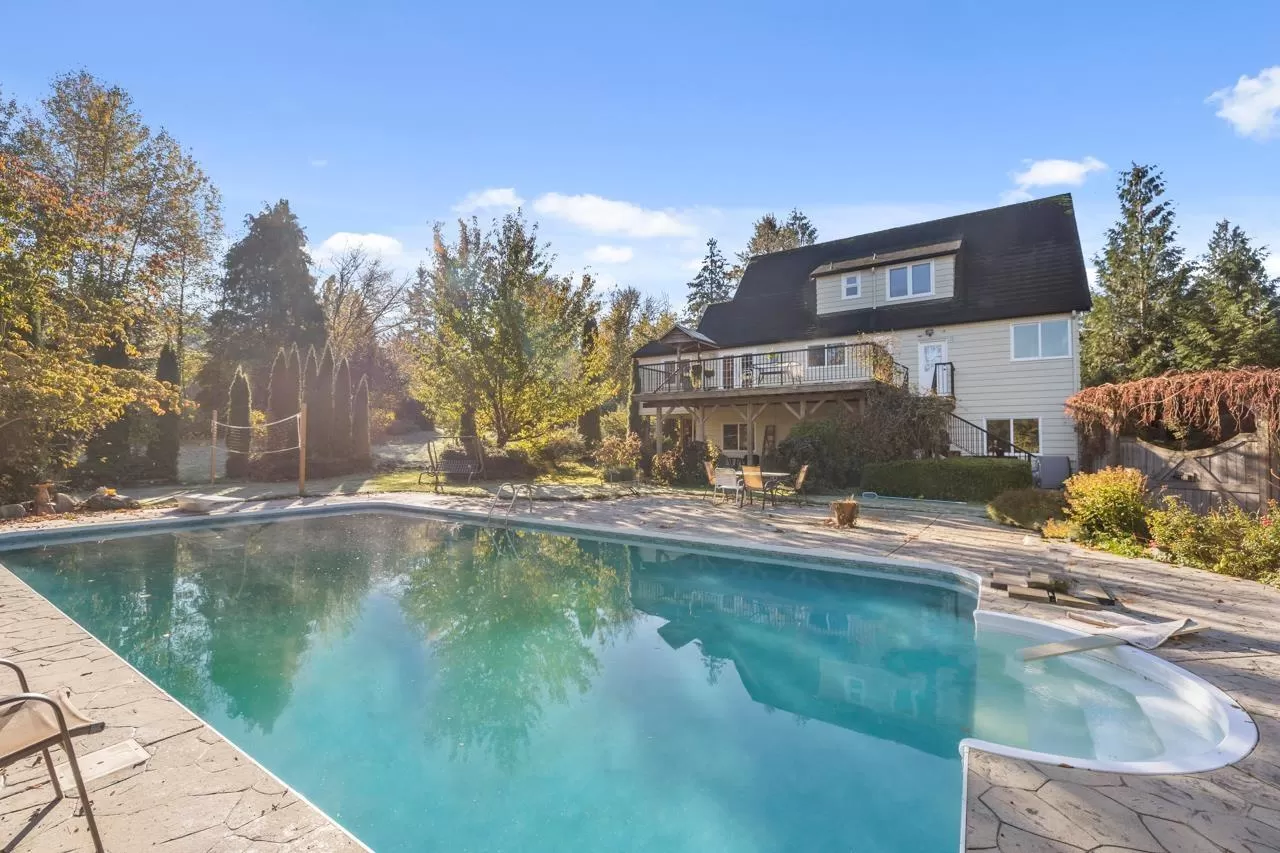Gorgeous updated Shaughnessy style heritage home on gently rolling 8+ acres just minutes from historic Fort Langley. Leave the hectic world behind as you enter the curved driveway surrounded by nature and enter your own private paradise.This property's topography is reminiscent of a charming English garden featuring an abundance of flowers, shrubs and fruit trees set amongst flagstone and river rock. The backyard is an entertainers dream with multiple patios and decks, and spectacular mountain view.A shimmering custom 20x40 salt water pool with an inground solar blanket is complimented by a covered sit-up bar with built-in fridge and BBQ.Numerous outbuildings including a 740 sq ft studio plus basement. (id:27476)