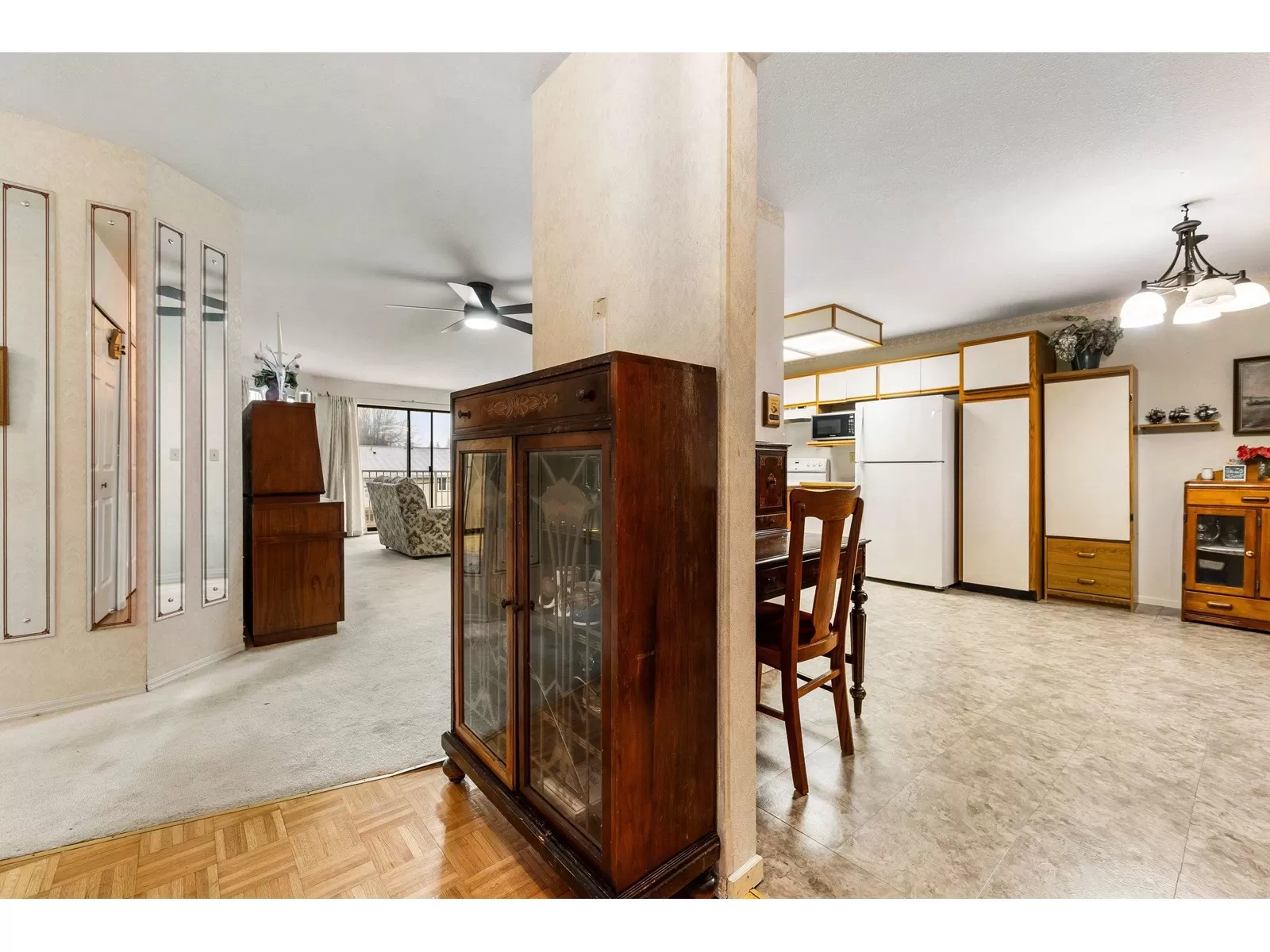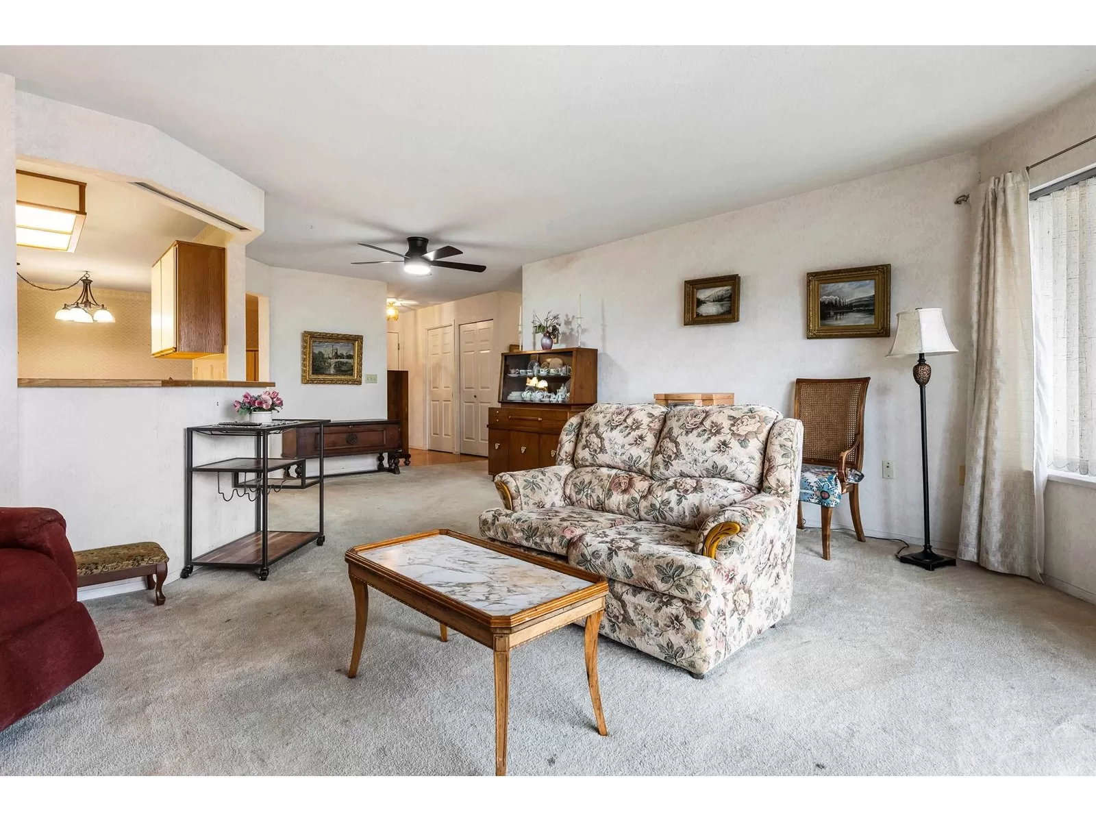 Soak up sunlight & mountain views from this spacious, SOUTH facing 55+ condo just steps from Mill Lake! The layout feels like a rancher style home with the convenience of condo living; 2 generous sized bedrooms, large eat-in kitchen, oversized living room flooded with natural light & access to a massive balcony where you can take in beautiful mountain views plus in-suite storage room, additional storage locker, secure underground parking, visitor parking, guest suite, library, common room & workshop for residents. Located in the desirable Horizon Place, this well-managed 55+ community offers a quiet, peaceful lifestyle just steps to Seven Oaks Shopping Centre & all the amenities you need. Well cared for & ready for your personal touch, enjoy an effortless & walkable lifestyle. (id:27476)