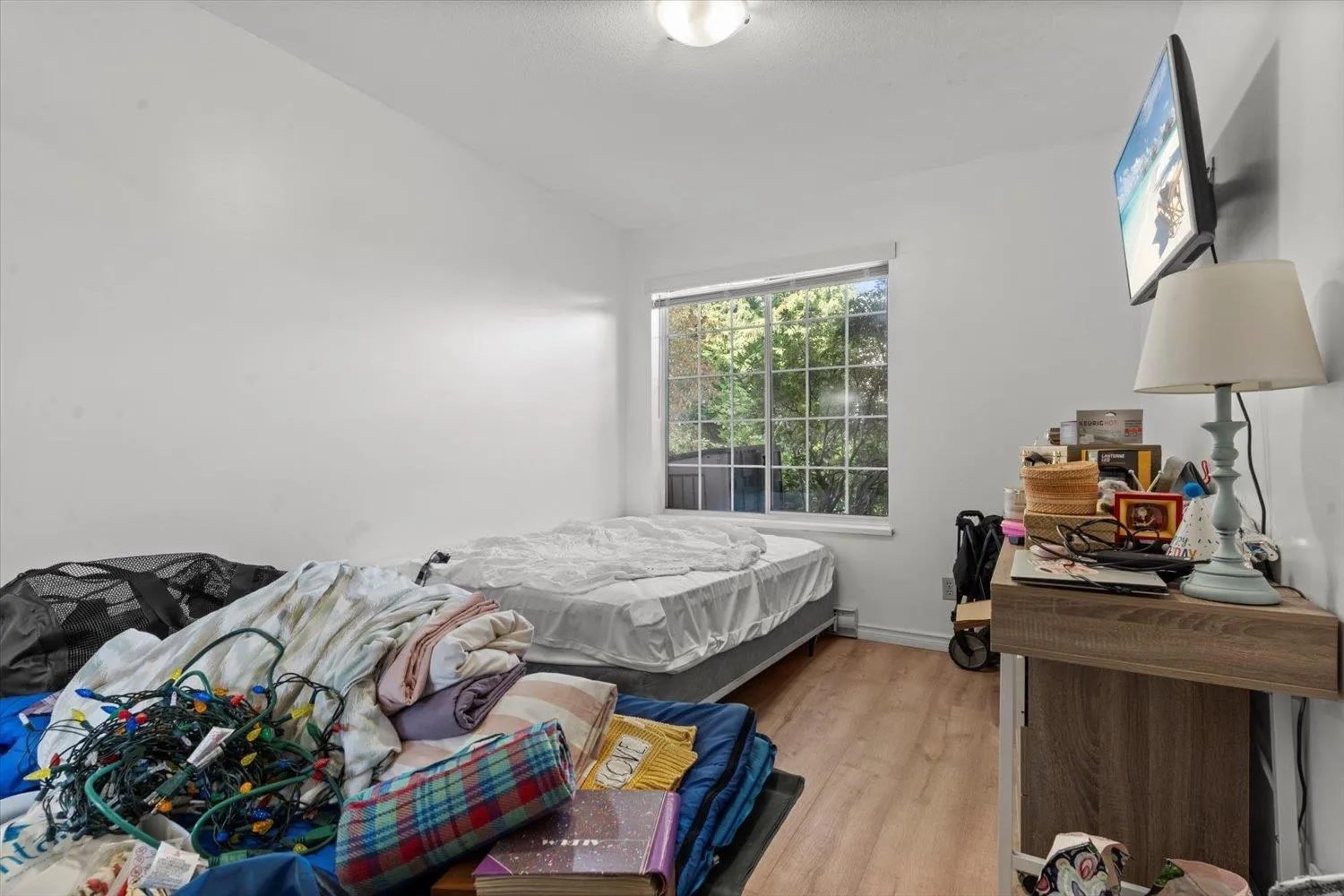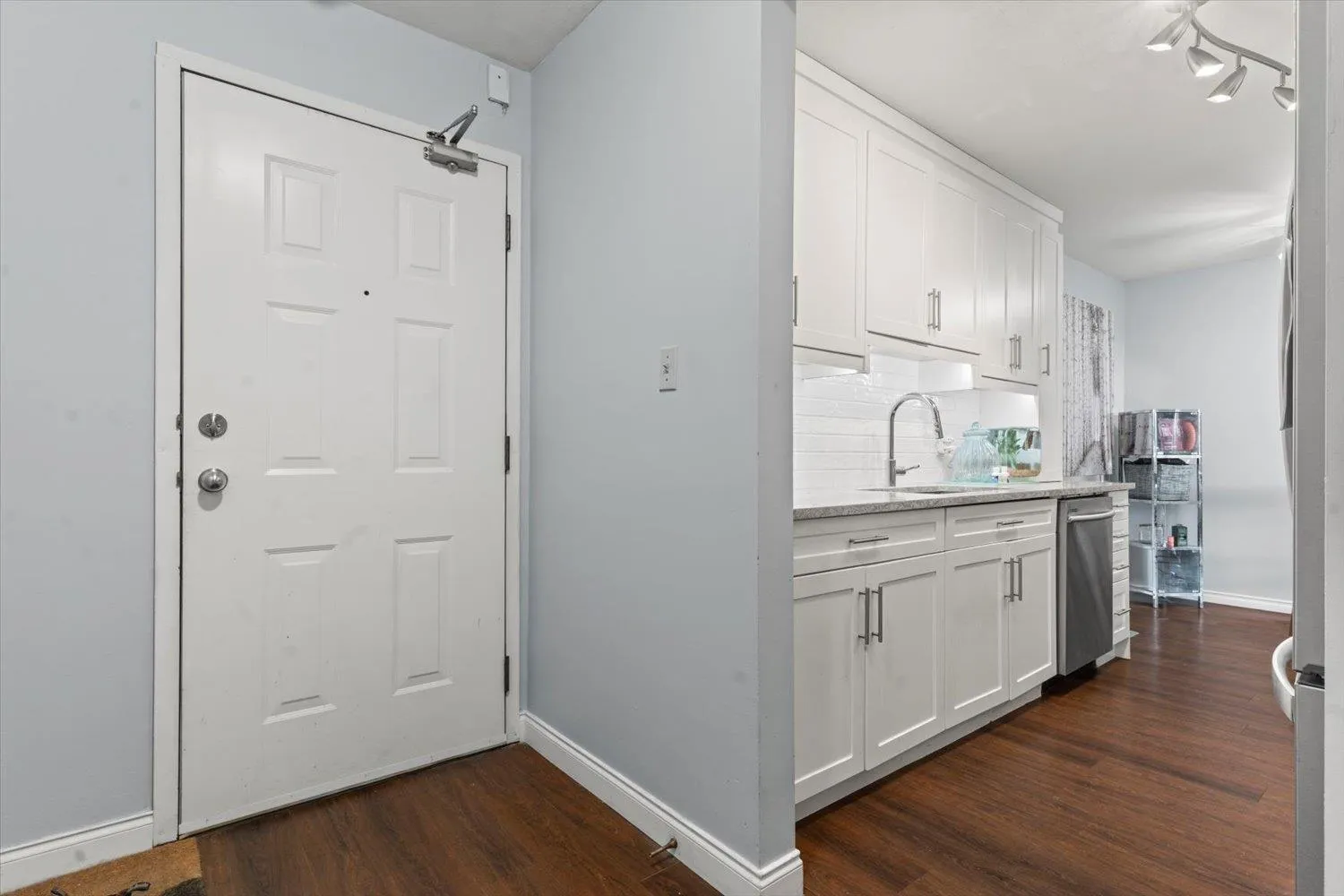 This bright and beautifully updated 2 bed, 1 bath walk-out corner unit is tucked away at the end of a quiet cul-de-sac-just steps to Clearbrook Centre and minutes to Highstreet Mall. The renovated kitchen features quartz countertops, an undermount sink, cabinet lighting, and premium Samsung & Whirlpool appliances. The spa-like bathroom boasts heated tile floors, a vessel sink, quartz counters, modern cabinetry, and a low-flow toilet. Both bedrooms offer brand new flooring and fresh paint. Enjoy cozy evenings by the gas fireplace-included in the strata fees along with covered parking and a storage locker. Located on the sunny, east-facing side of the building and walking distance to Tenbroeck Elementary and Fishtrap Creek Park. Excellent access to transit and Highway 1. (id:27476)