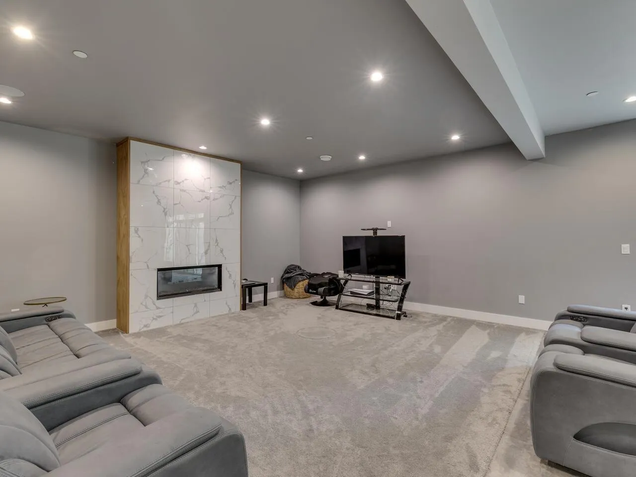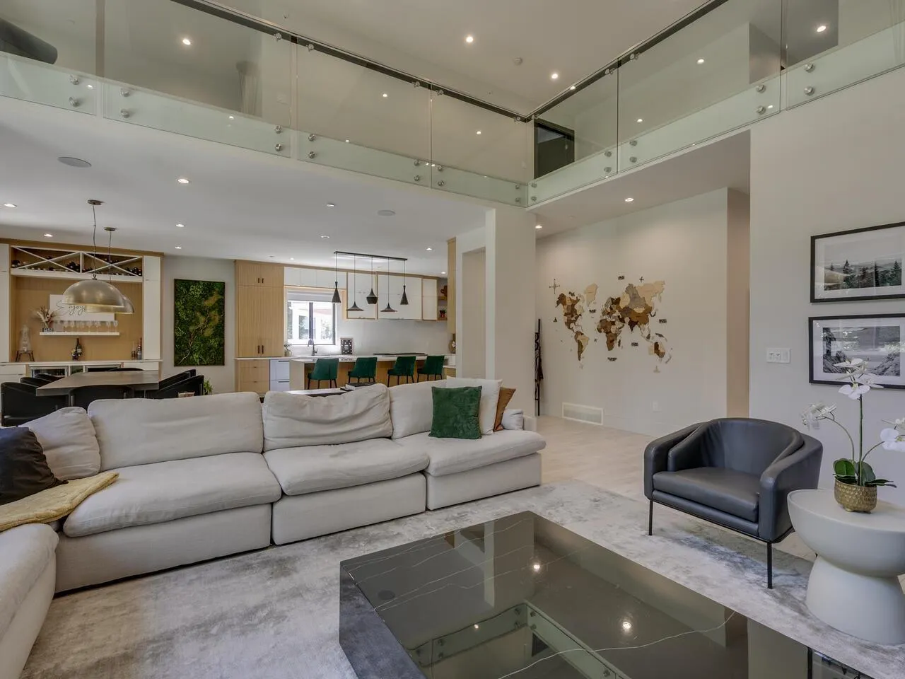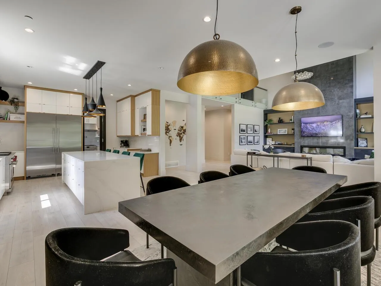 Located on a quiet cul-de-sac in the coveted Auguston community, this 7,151+ sq ft contemporary home sits on a 12,272 sq ft lot backing onto greenbelt and is just a 5-minute walk to Auguston Elementary. With nine beds and eight baths, it features a dramatic great room with floor-to-ceiling windows and a fireplace. The chef's kitchen includes high-end appliances and a spacious spice kitchen. A luxurious primary suite is on the main floor, while upstairs offers four master suites with walk-in closets and a flex room with private patio access. The lower level includes a 2-bedroom in-law suite with potential for a second guest suite. (id:27476)