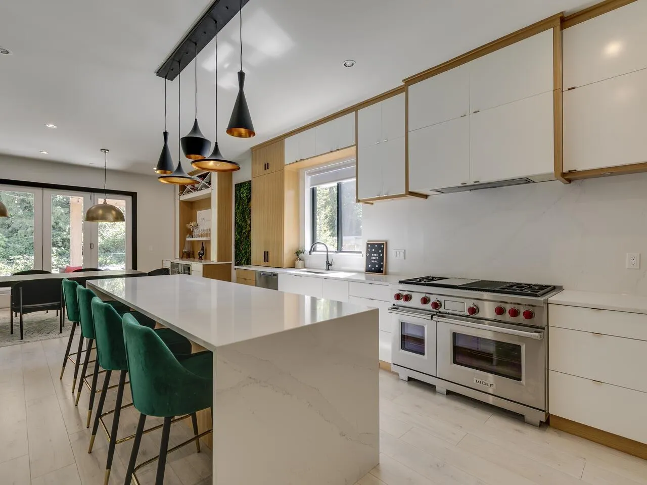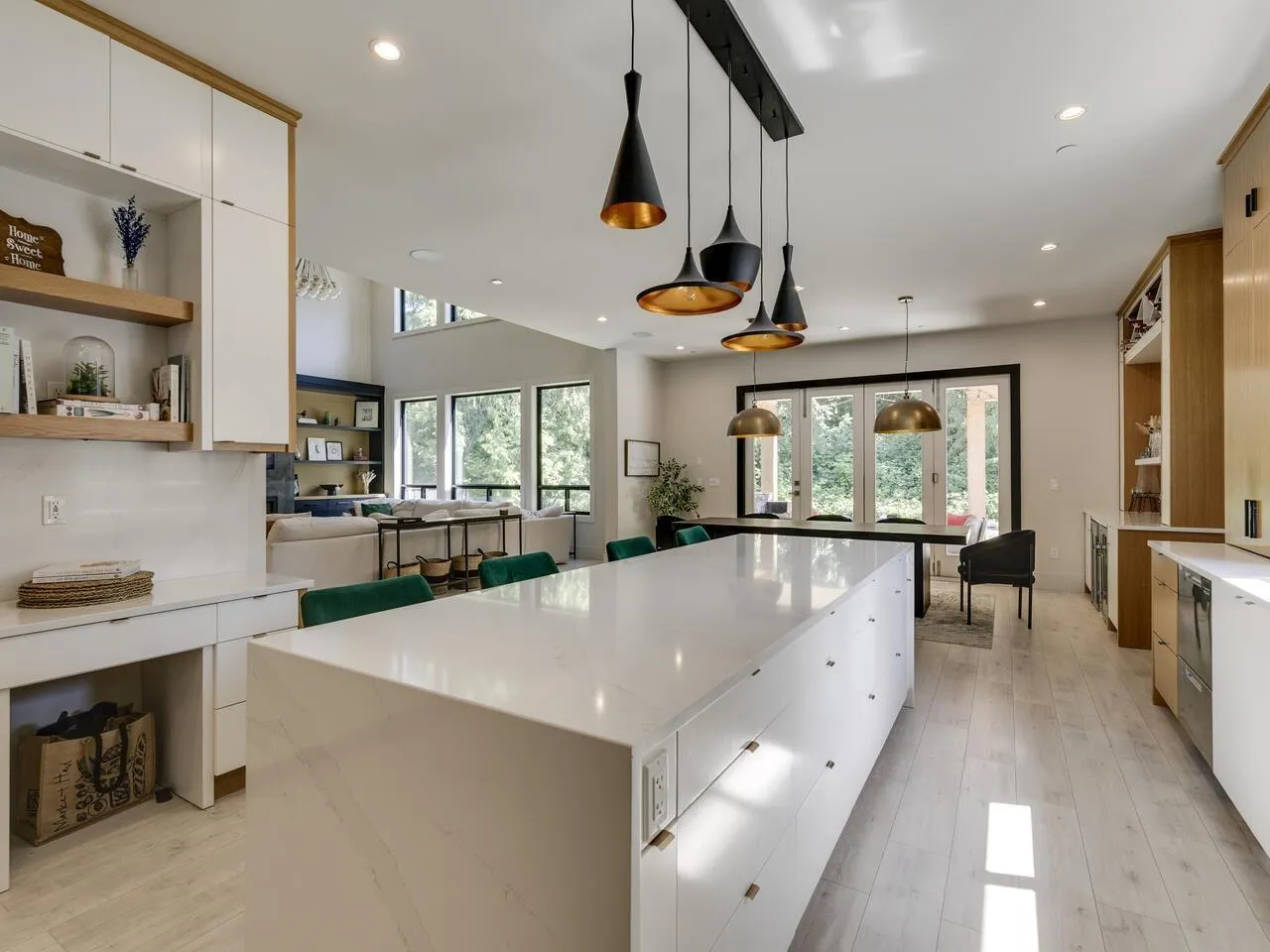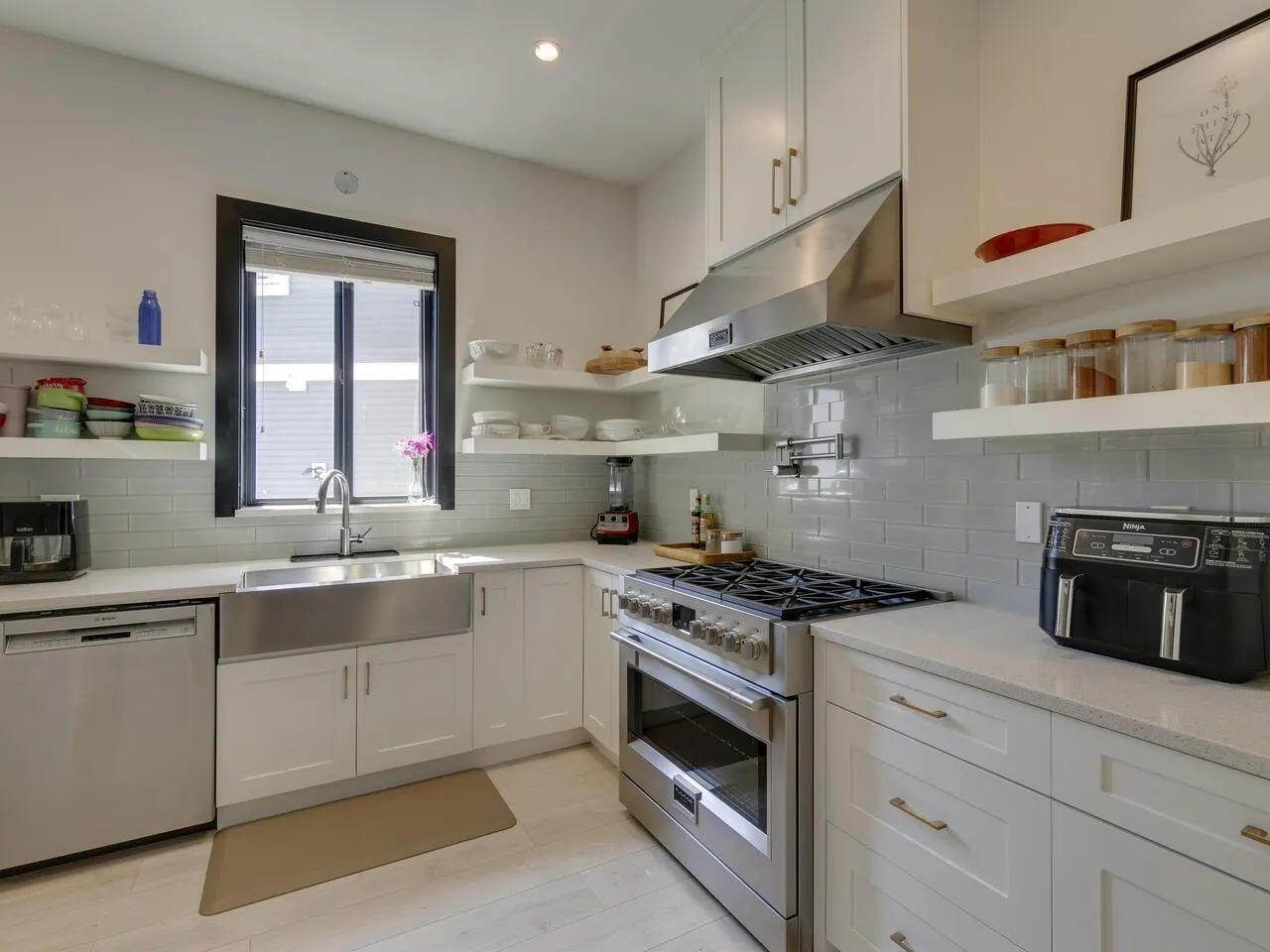 Located on a quiet cul-de-sac in the coveted Auguston community, this 7,151+ sq ft contemporary home sits on a 12,272 sq ft lot backing onto greenbelt and is just a 5-minute walk to Auguston Elementary. With nine beds and eight baths, it features a dramatic great room with floor-to-ceiling windows and a fireplace. The chef's kitchen includes high-end appliances and a spacious spice kitchen. A luxurious primary suite is on the main floor, while upstairs offers four master suites with walk-in closets and a flex room with private patio access. The lower level includes a 2-bedroom in-law suite with potential for a second guest suite. (id:27476)