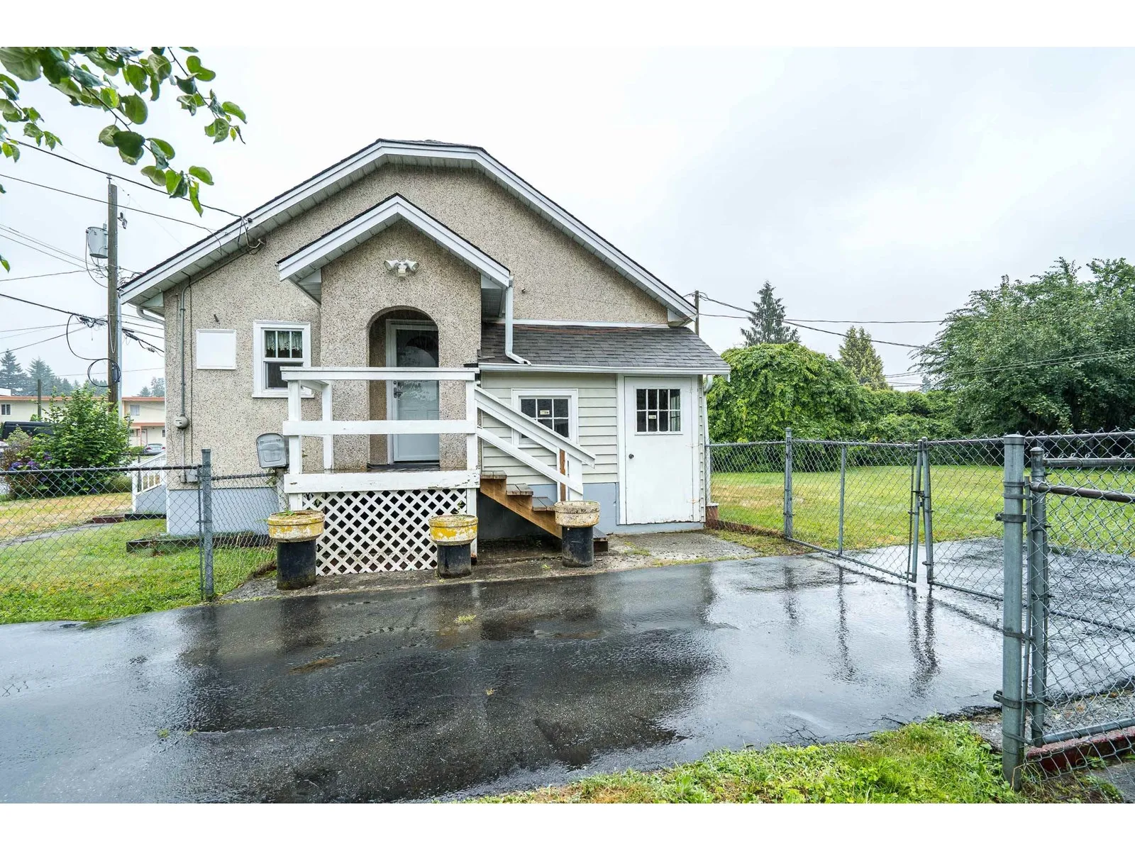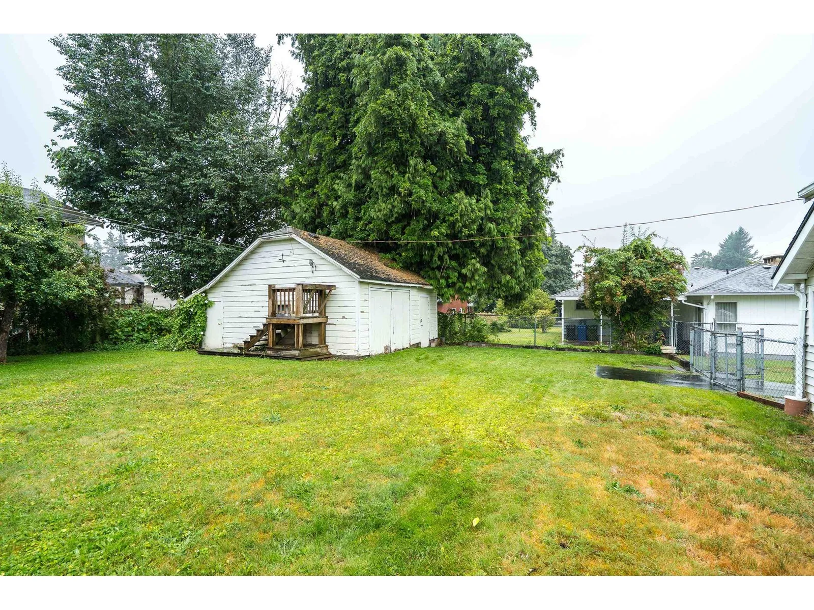 A well maintained 1427 sqft 2 bed/1 bath home (682 sqft finished) is situated on a large beautiful property including a 19'x17' shed for garage or workshop. The living space is bright due to the vinyl windows. Come with your decorating ideas to turn this home into a cozy retreat. The kitchen has easy access from a covered porch adjacent to the driveway. There are lots of cupboards, counter area & space for table & chairs in the kitchen. There is laundry, a sink & an abundance of storage in the basement. If you are interested in the development potential check with the City to find out the numerous options. The home is centrally located near all amenities, park and ride, UFV & easy freeway access. The neighbouring property is also available - R3026534. Call to book your showing today! (id:27476)