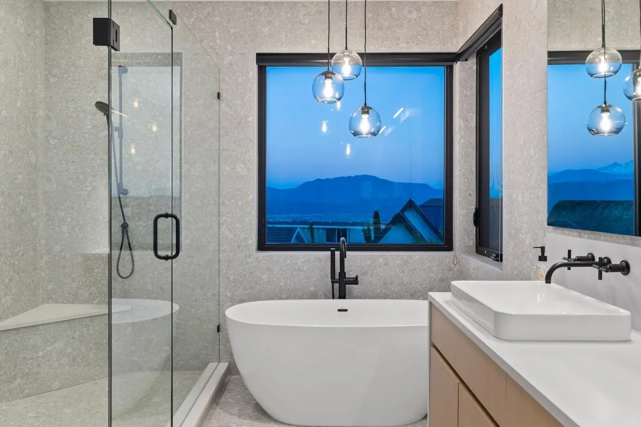 Stunning executive home by award winning Palermo Homes offering nearly 4,700 sqft of luxury living w/6 bd, 5 bt & sweeping mountain views. Finished w/Fond Du Lac Adera stone, Longboard metal siding, stamped concrete patios, and Clopay garage doors. The designer kitch feat Old World real wood cabinetry,Caesarstone quartz counters,Blanco granite sinks,Fisher & Paykel appliances & Calcutta Gold backsplash. Interior upgrades include Kentwood hardwood, Italian tile, Riobel&Brizo fixtures, engineered floating stairs, glass railings,& motorized blackout shades.Tech-ready w/HK Vision 4K cameras, Ring doorbell, built-in Bluetooth speakers,EV+hot tub wiring.Lower level includes a spacious rec/bar area,4th bd,and private-entry in-law space w/2 bds and sep laundry. (id:27476)