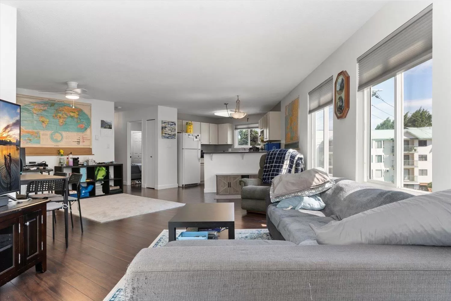 Top floor corner unit in the heart of historic Downtown Abbotsford! This bright one-bedroom condo features an open floor plan with an abundance of natural light, newer laminate flooring, newer paint throughout, and updated appliances. Enjoy in-suite laundry, a spacious deck, and underground parking. Just steps to transit, boutique shops, and trendy restaurants. Pet-friendly (up to 2 pets ok), and ideal for first-time buyers or investors. Don't miss this stylish, move-in-ready home in a highly walkable, convenient location! Contact us today to book your personal tour. (id:27476)