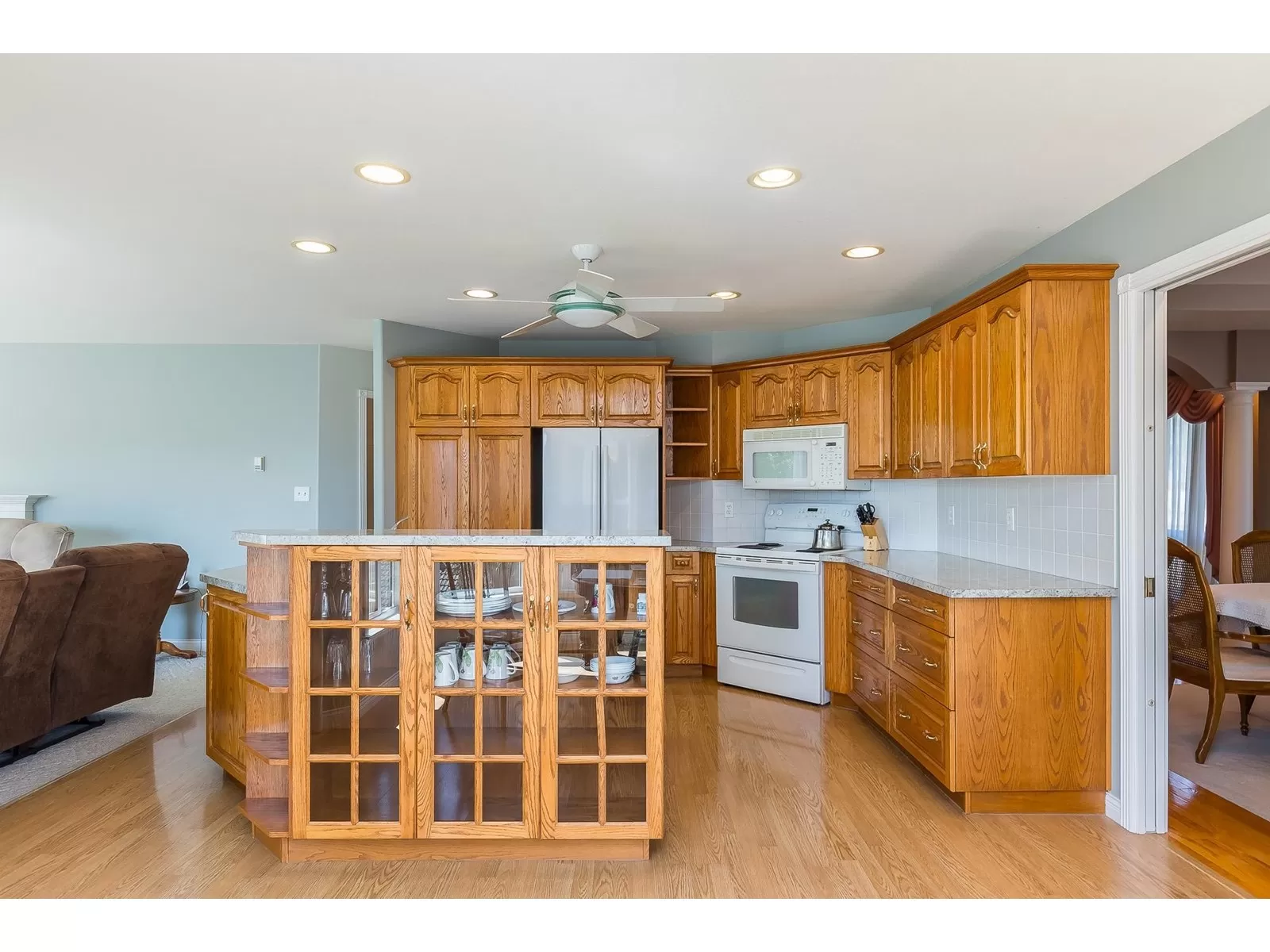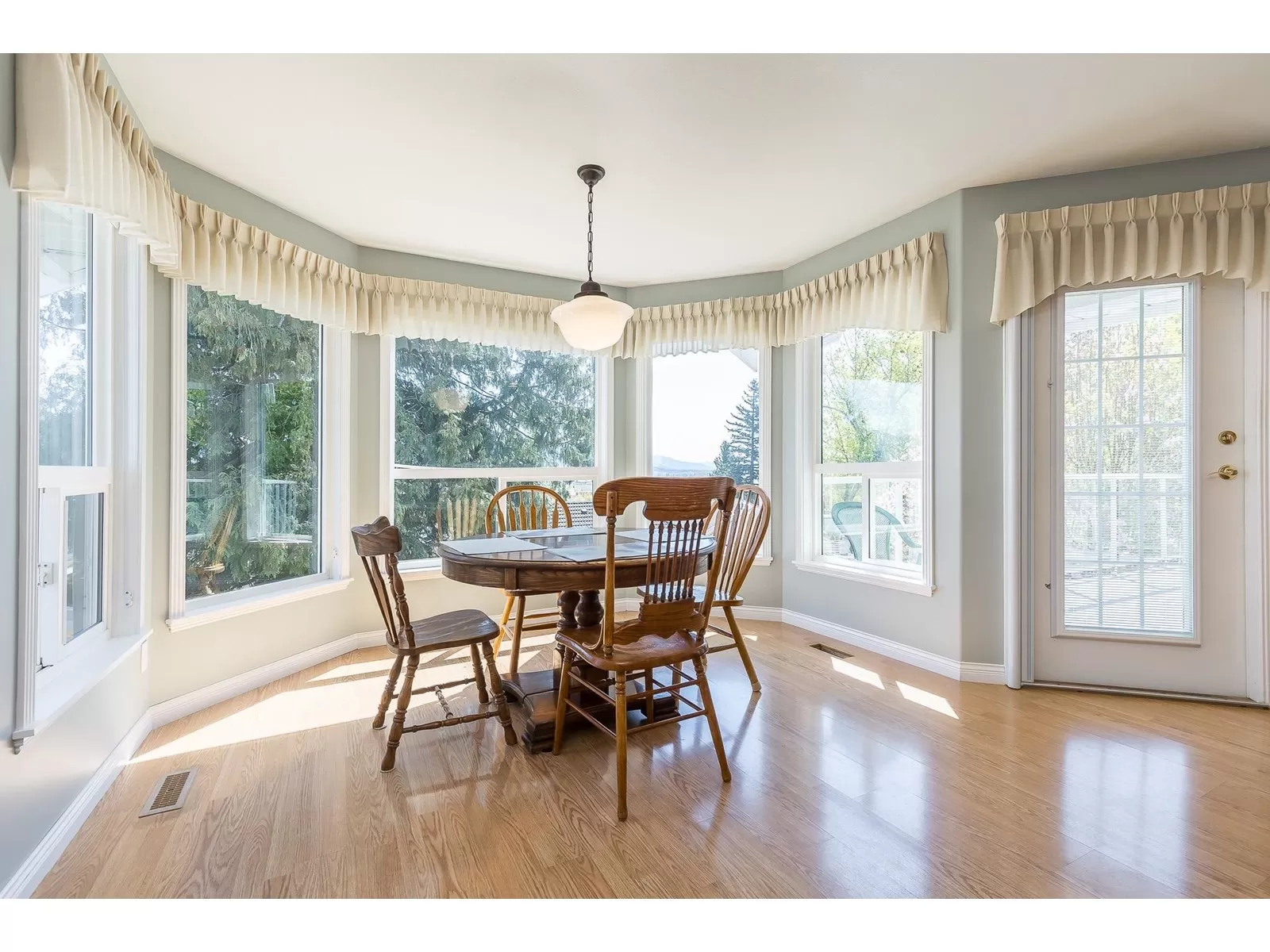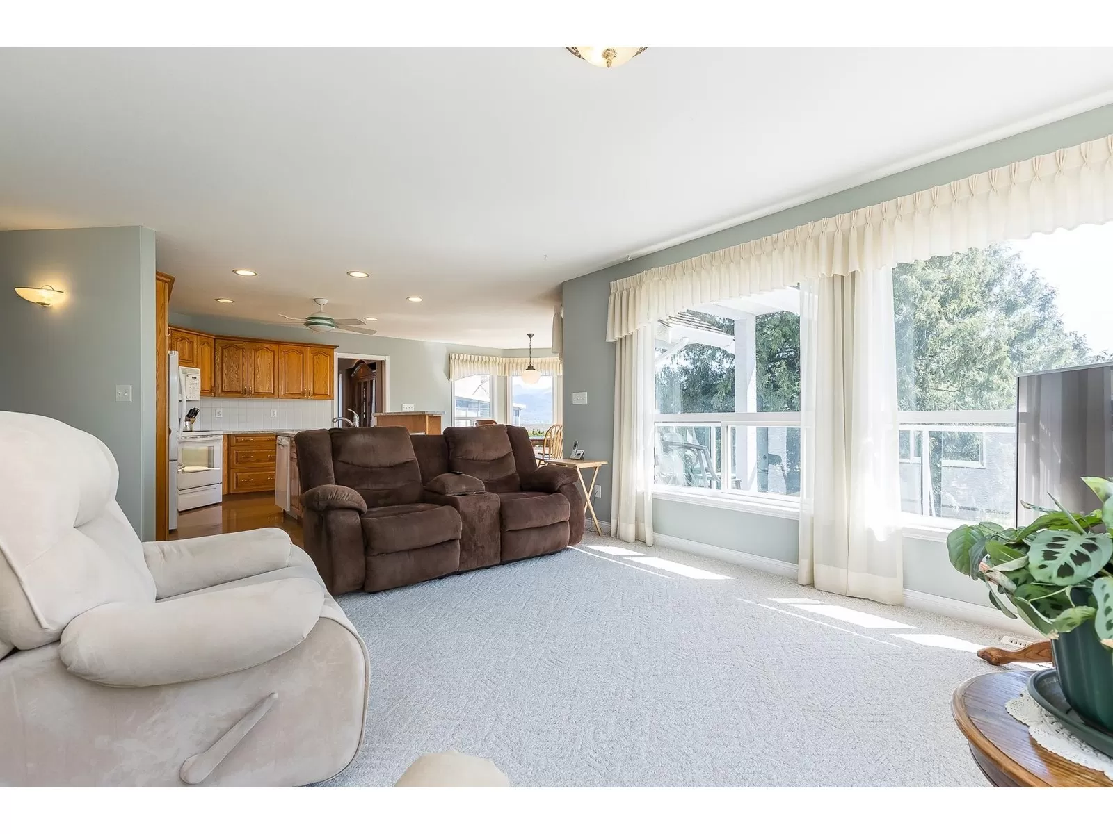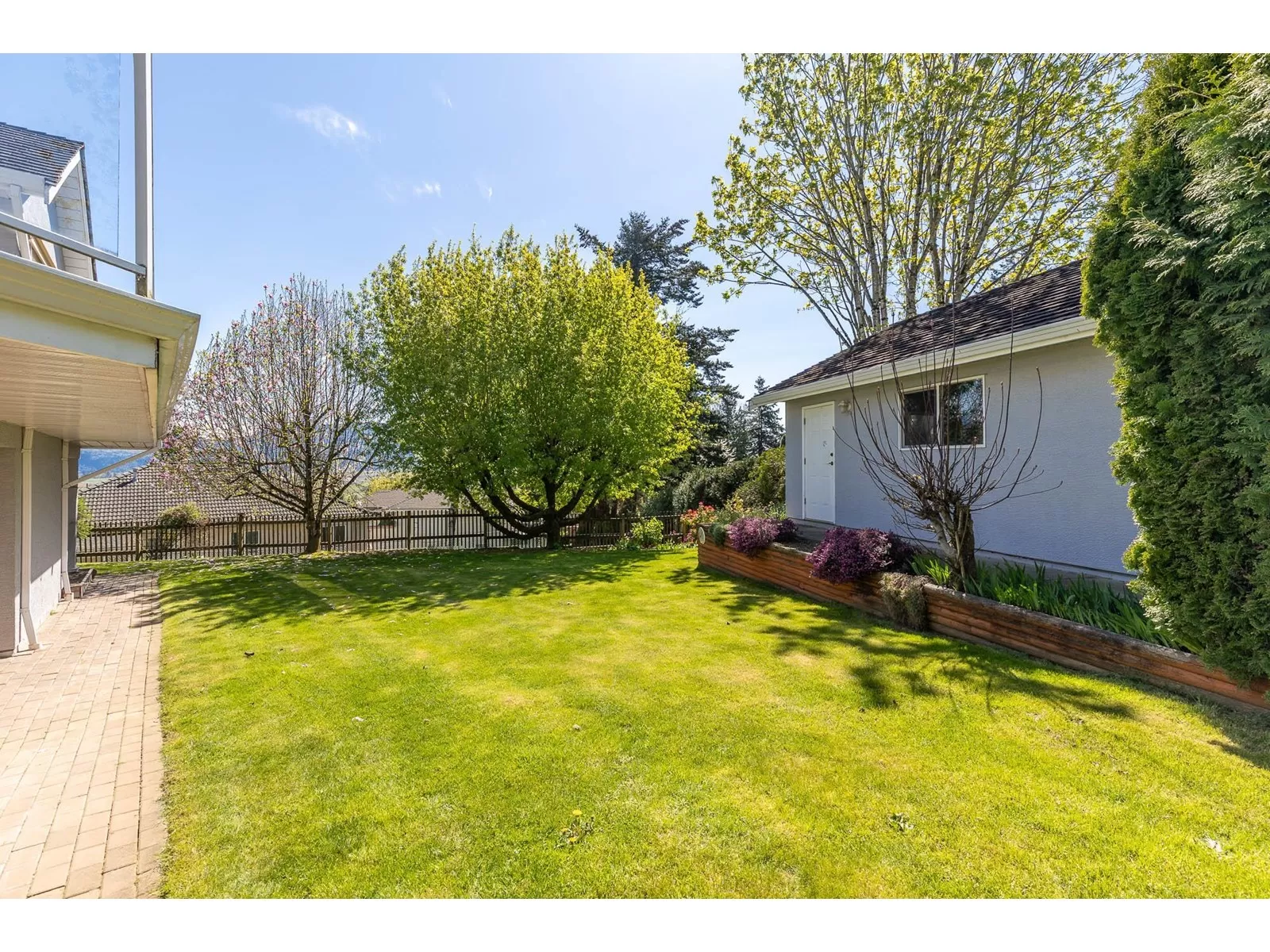 Rancher with walk-out basement in an amazing location at the top of a quiet CDS on 12,000 sqft south exposed lot. Open kitchen is well-appointed with a large island and loads of cupboard space. Generous eating area has access out to the huge wrap around deck with spectacular views of Sumas Prairie and Mountains. Family room has an abundance of natural light, cozy fireplace and central A/C for comfort in the summer. Primary bedroom with ensuite as well as a second bedroom and formal dining & living rooms on the main floor. Basement includes HUGE rec room, loads of storage, 3rd bedroom, roughed in for kitchen and separate entrance - would be easy to suite. Fantastic private yard has it all with RV parking, hard to find insulated shop with power and 2 pc bathroom - perfect for the car enthusiast or hobbyist. This is a special place! (id:27476)