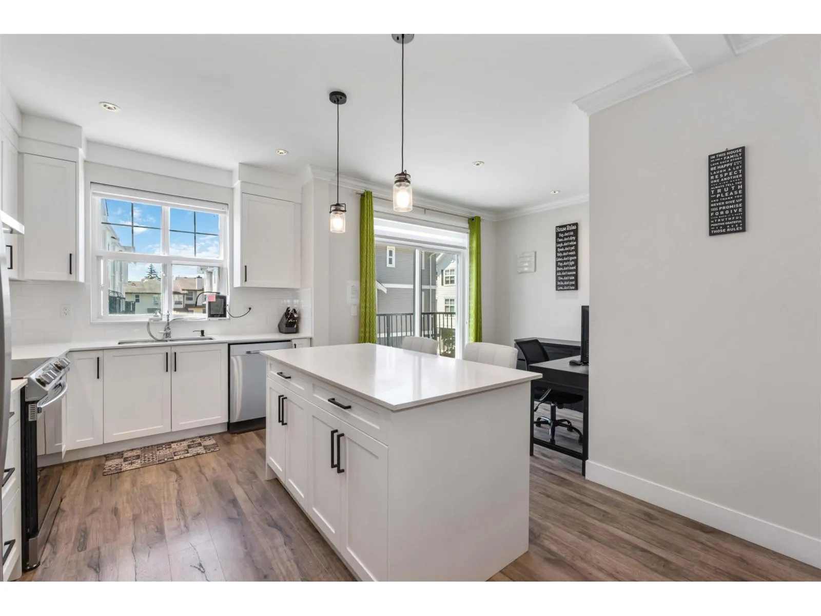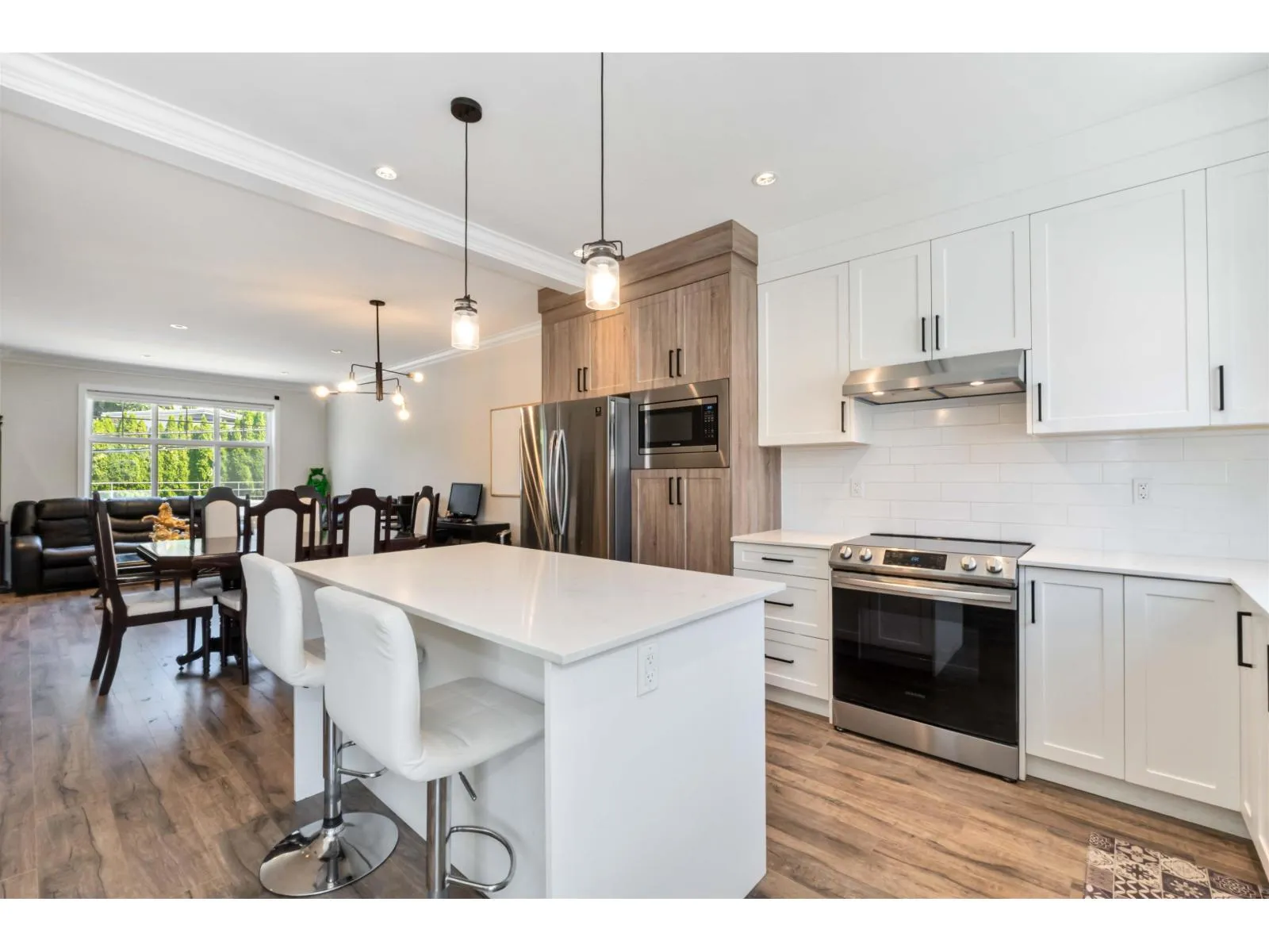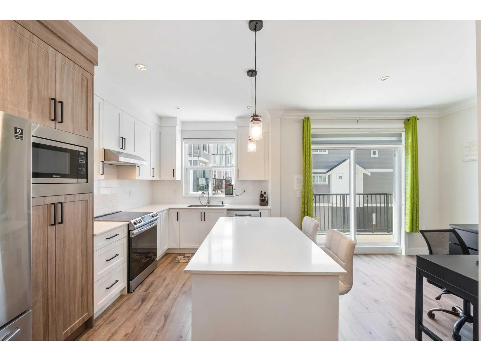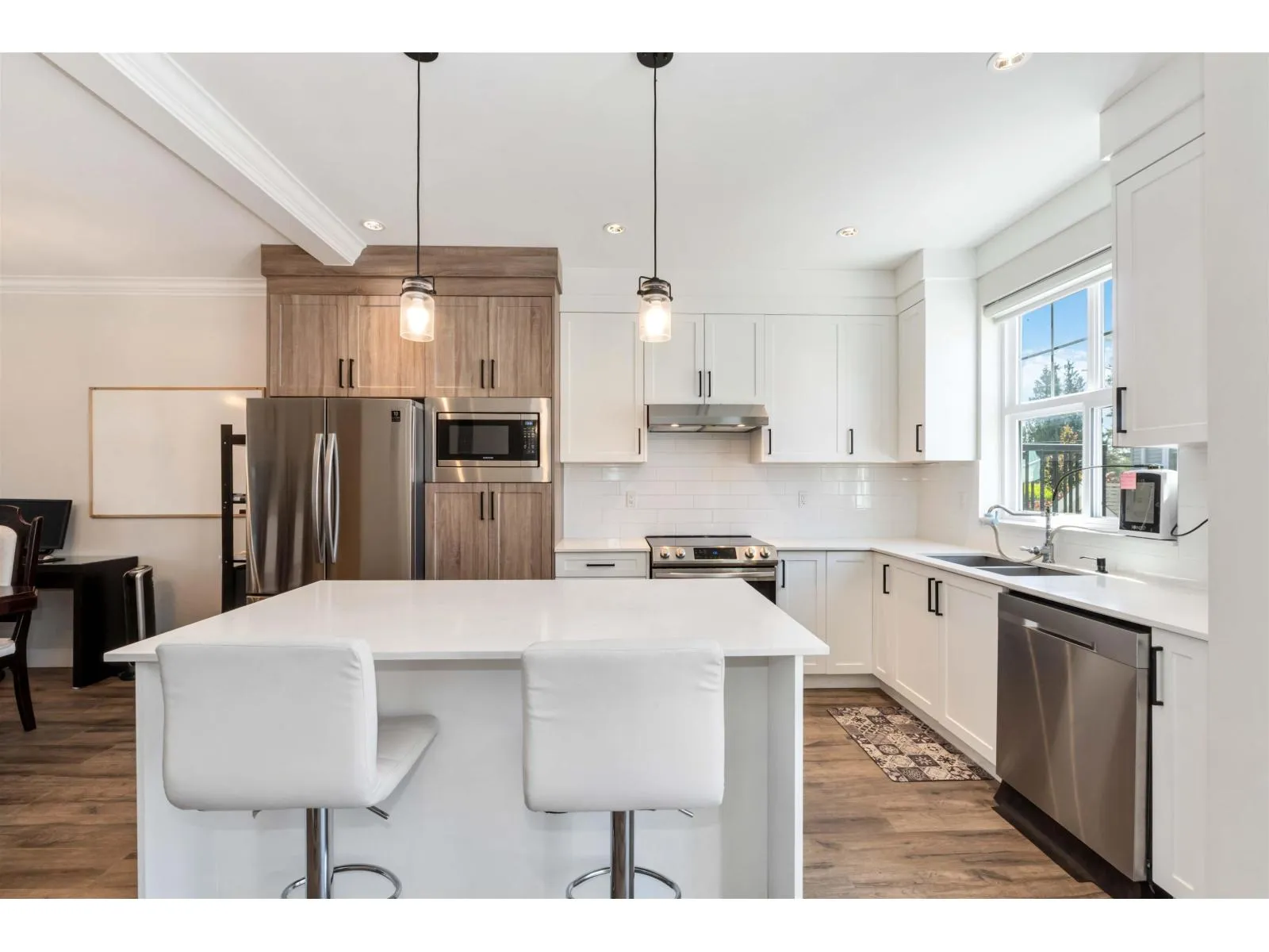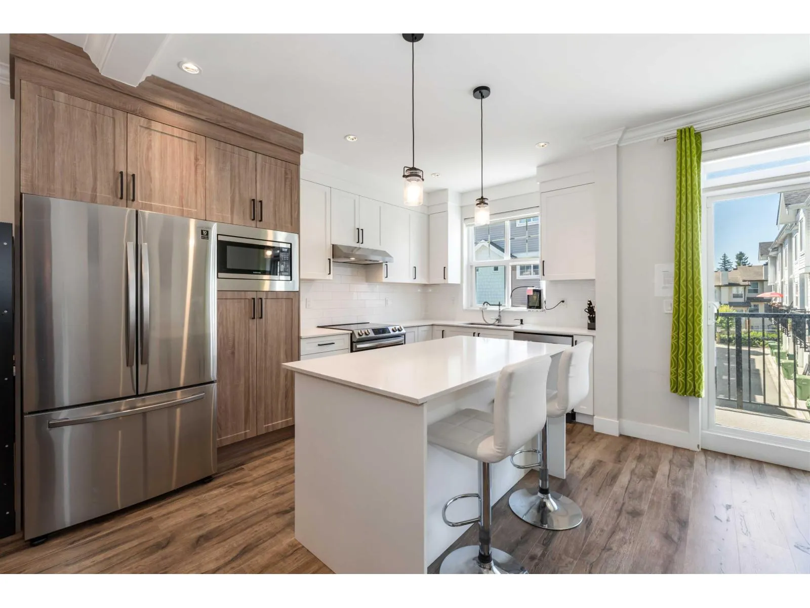 Welcome to The Marq, a centrally located townhouse community built in 2020! These 3-storey homes offer over 1,600 sq ft with 4 bedrooms, 3 bathrooms, and a double garage. Features include an open-concept layout, high ceilings, modern finishes, and a main-floor bedroom off the entryway. The designer kitchen boasts quartz countertops, stainless steel appliances, and opens to a balcony and powder room. Upstairs offers a spacious primary suite with walk-in closet and double-sink ensuite, plus two additional bedrooms. Rentals and pets allowed with restrictions-great for investors! Close to UFV, Sumas border, Berry Park, schools, transit, restaurants, and more. Low strata fees! (id:27476)