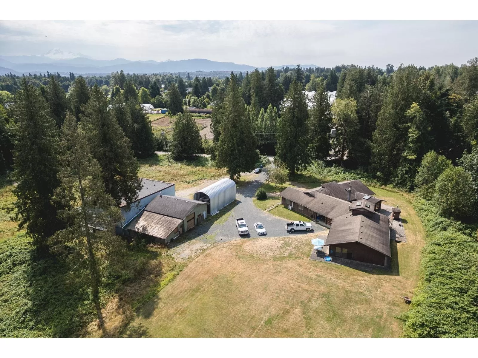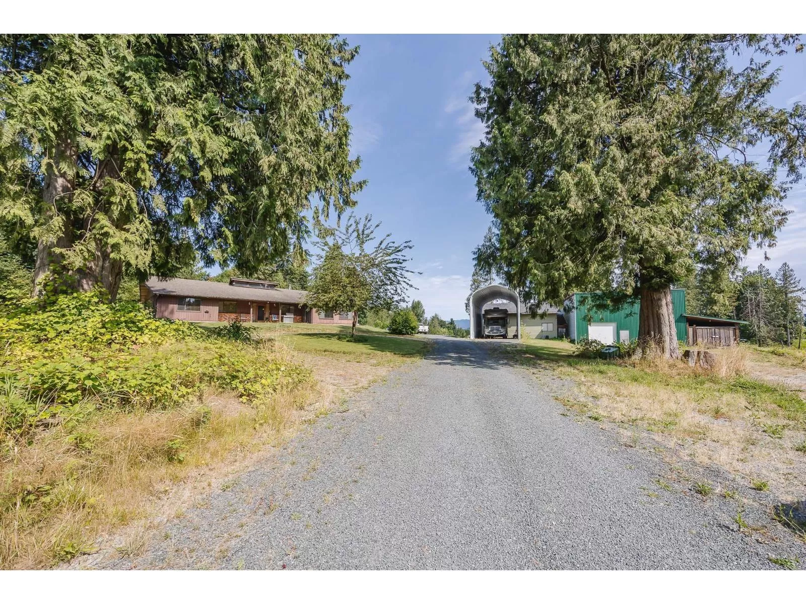 Sprawling 4000 sq.ft. Rancher on 10 Acres with great mountain view on a no thru road in Bradner. Bright country kitchen is an open design to include the dining and living room. Seperate sunken family room with gas fp. 4 bdrms, 3 baths and a hot tub room. North wing couild easily be a suite and includes a massive rec room with wet bar, games room (which could easily become 2 more bedrooms), full bath with jacuzzi tub. Multiple outbuildings inc. a commercial grade 38 x 60 shop with 600v, 3 phase power and a 1750 sq.ft second level. 29 x34 shop, 20 x 34 shop, 14 x 68 lean to and a metal 16'7 x 46' RV shelter with concrete floor. So much potential and a dream for the car guys! (id:27476)
