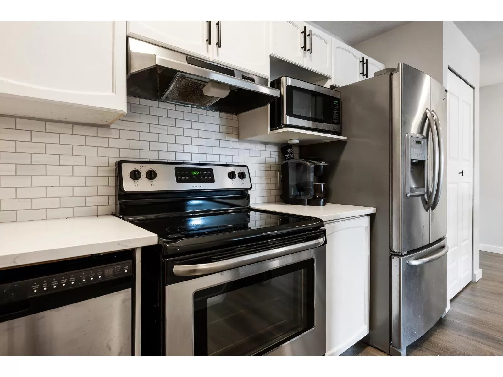 Welcome to this stunning top-floor corner unit in the highly sought-after Cascade Green complex, located in the heart of central Abbotsford! Recently fully renovated, this 2-bedroom, 2-bathroom home showcases fresh paint, new flooring and carpet, updated countertops, and modern fixtures throughout. The bright, open-concept layout is enhanced by large windows, filling the space with natural light and offering an elevated sense of privacy. The well-appointed kitchen flows into a cozy living area and onto a private balcony-perfect for both relaxing and entertaining. The primary suite features its own ensuite bathroom, while the second bedroom is generously sized for family, guests, or a home office. Just steps from shopping, dining, and parks, this home is ideal for first-time buyers, investors, or anyone seeking a stylish, low-maintenance lifestyle in a fantastic location. (id:27476)