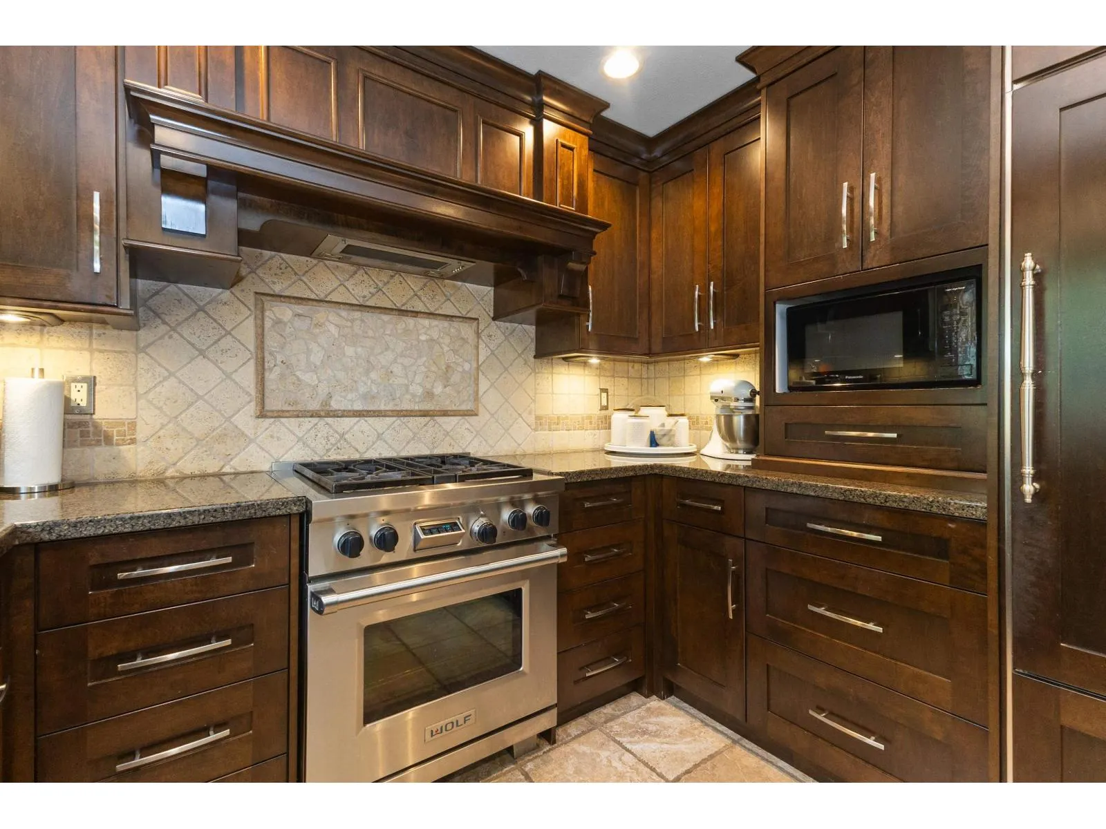 This immaculate 5-bedroom, 4-bath home backs onto a peaceful park and features a bright, spacious layout ideal for families and entertaining. The main floor offers a sunken family room with fireplace, formal living and dining rooms, a gourmet kitchen with granite counters, Wolf gas range, hidden Sub-Zero fridge, and Asko dishwasher, plus a breakfast nook, office, full bath, laundry, and welcoming foyer. Upstairs includes 3 bedrooms and 2 baths, with an ensuite and walk-in closets. The basement has a separate entrance, 2 bedrooms, full bath, living area, and storage. Enjoy A/C, a large covered deck, BBQ area, private fenced yard, and brand new hot water tank and furnace. Close to schools, shopping, and all amenities. (id:27476)