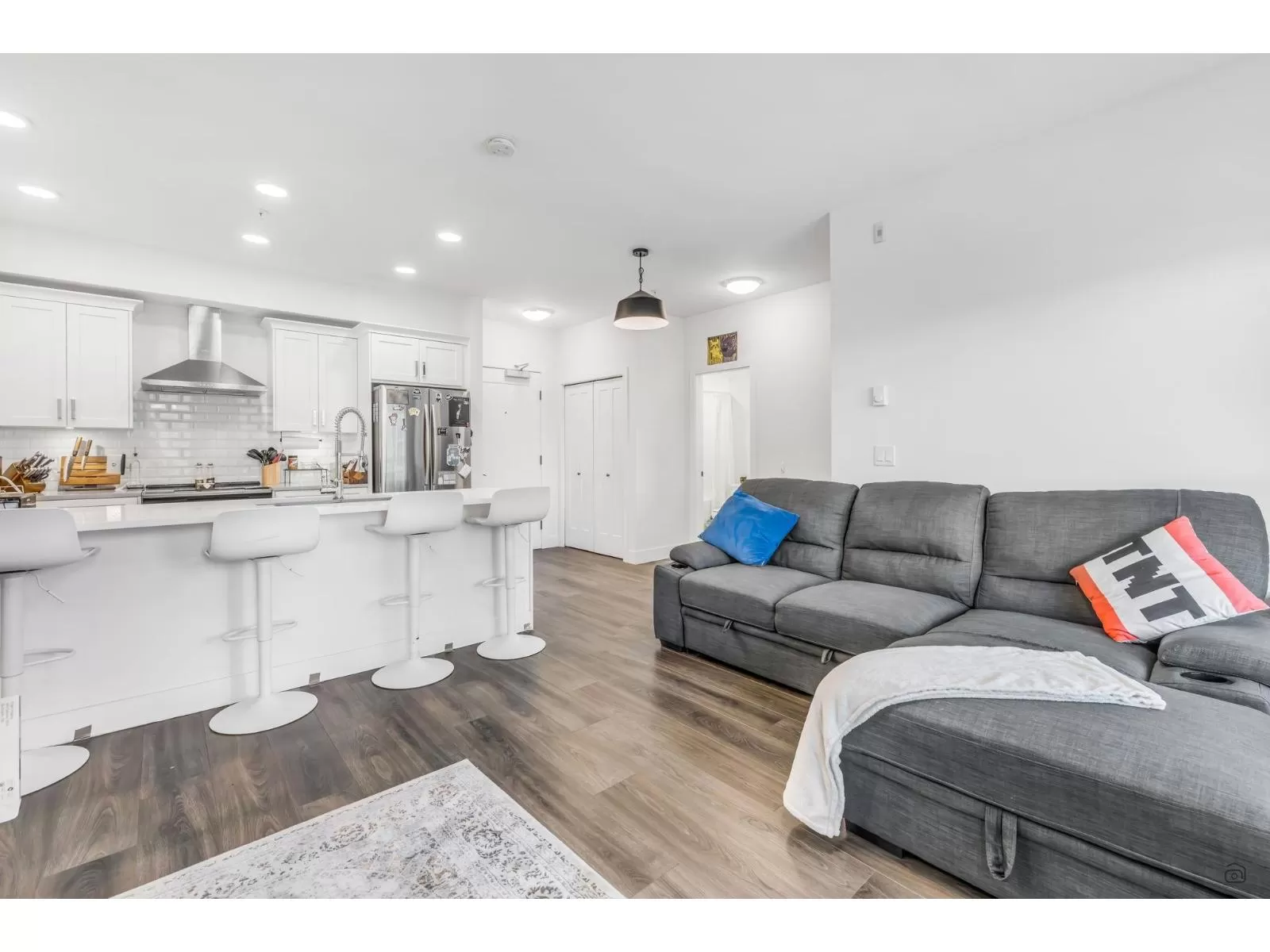 A beautiful home in "The Edge" in Downtown Abbotsford-this is the best-priced unit you'll find in the area! This unique two-bedroom, two-bathroom layout makes the most of every square foot, with an open design that maximizes natural light. The Edge offers a 1500+ square foot common ROOFTOP patio with a stunning Mt. Baker view. Perfectly located just steps from Historic Downtown Abbotsford, you're surrounded by trendy restaurants and boutique shops. Only minutes from Seven Oaks Mall, Mill Lake Park, and with quick access to Hwy 1, this home offers both style and convenience. Don't wait-opportunities like this don't last long in central Abbotsford. Open house Nov 1, 12-2PM. (id:27476)