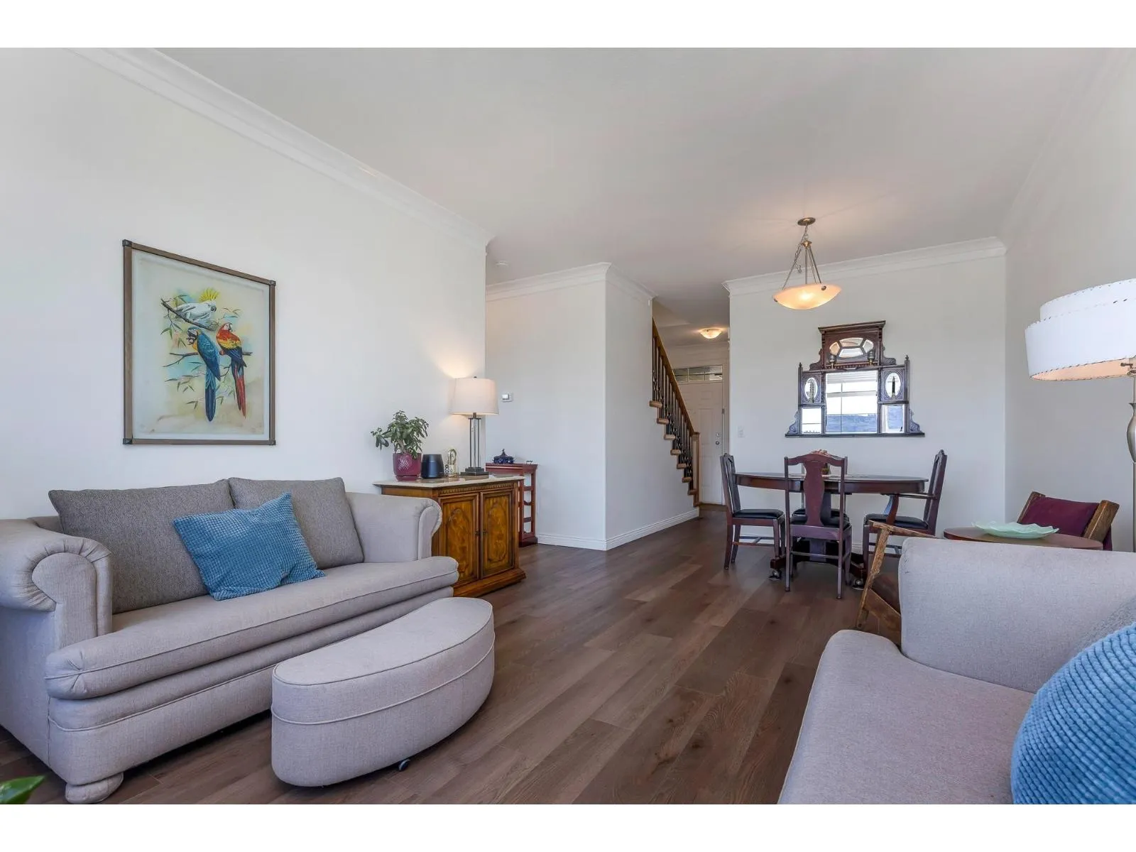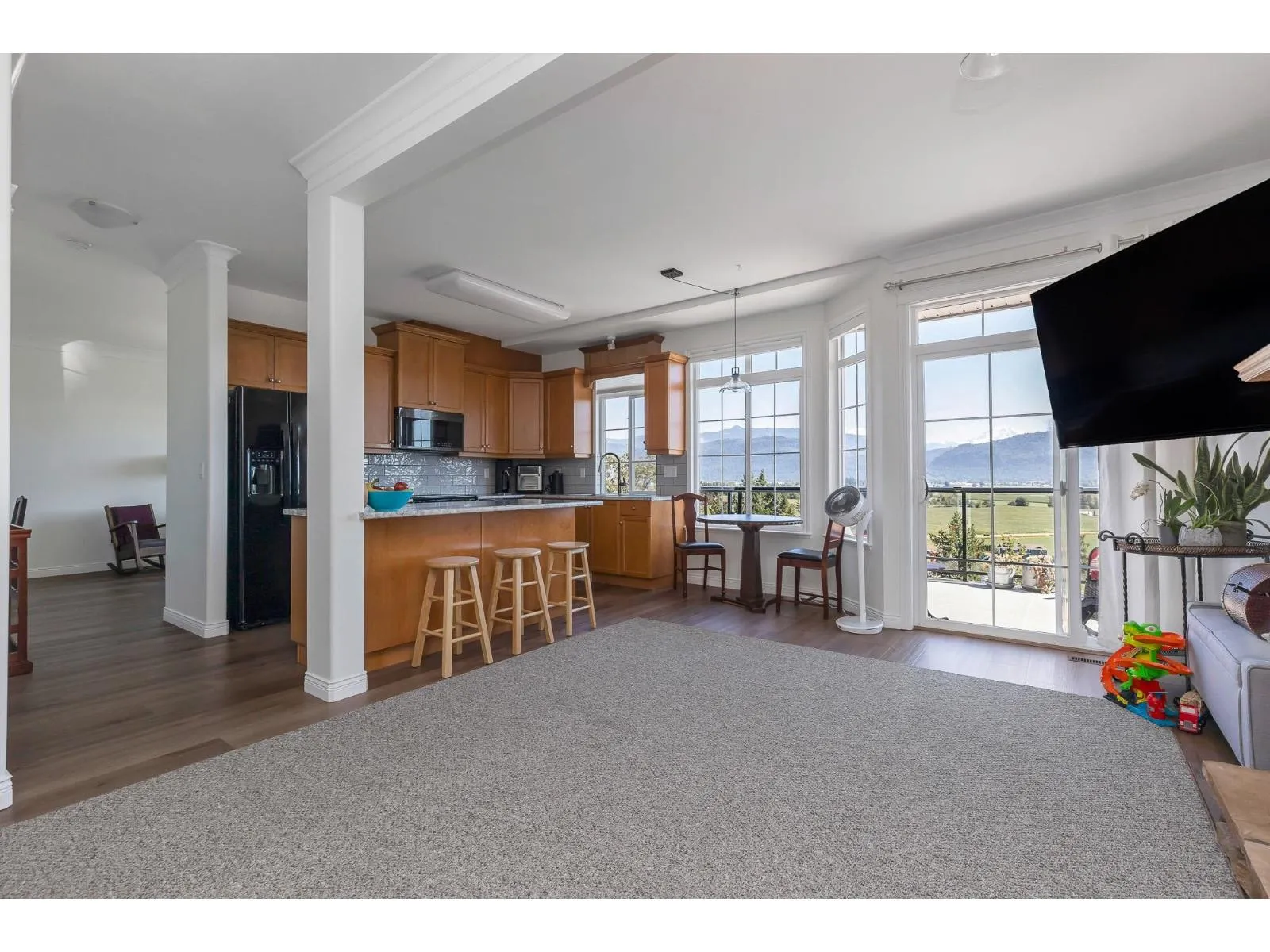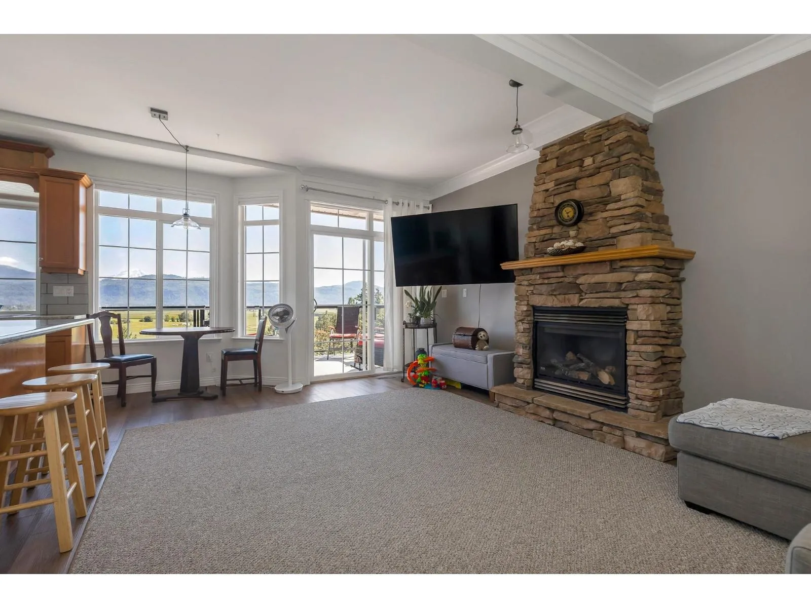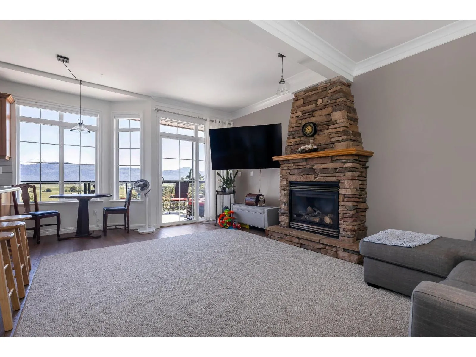 Beautifully maintained 3-bedroom end-unit townhome with stunning valley views. The bright main level features 9' ceilings, an open den, spacious living/dining area, and a large kitchen with ample counter space, storage, and newer appliances. The kitchen opens to the family room and deck-perfect for enjoying the views. Upstairs, the primary bedroom includes vaulted ceilings, a walk-in closet, built-ins, and a large ensuite with separate shower and soaker tub. The walkout lower level offers a rec room, two bedrooms, full bath, and laundry. Double garage with high ceilings and built-in cabinets. 1 dog or cat allowed (permission for 2nd pet can be applied for). Visitor parking next to unit. Well-managed complex. Don't miss this fantastic opportunity. Easy to show. Open house: Sat, Oct 18 1-3. (id:27476)