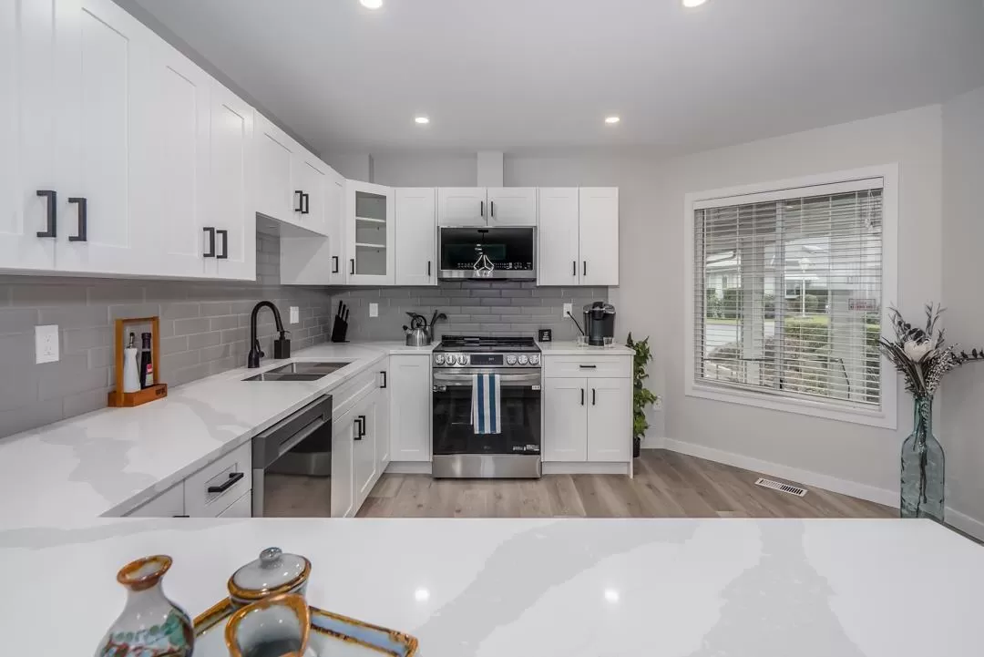 Welcome home to this completely renovated and redesigned rancher with full walk out basement townhome. This 55+ complex is really well maintained and this unit shines. Located in the prime spot in the complex, backing onto a greenbelt, it is private and quiet and really does not feel like townhome living at all. The kitchen/dining room have been opened up to create a much more open concept and now the entire main floor is flooded with light. New kitchen cabinets, quartz counters, appliance, all new flooring, new bathrooms, light fixtures, new trim and paint its all been done here and this property is turnkey and ready for its lucky new owner. The basement has lots of room for visiting family or play space when the grandkids come to visit. Don't miss out call today (id:27476)