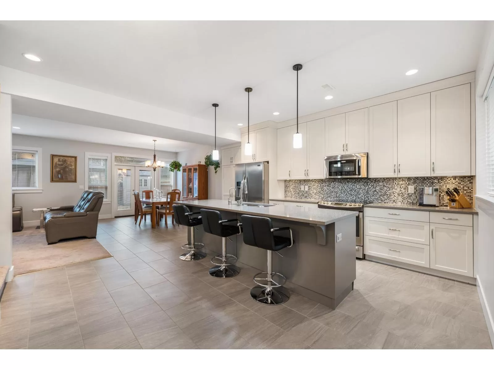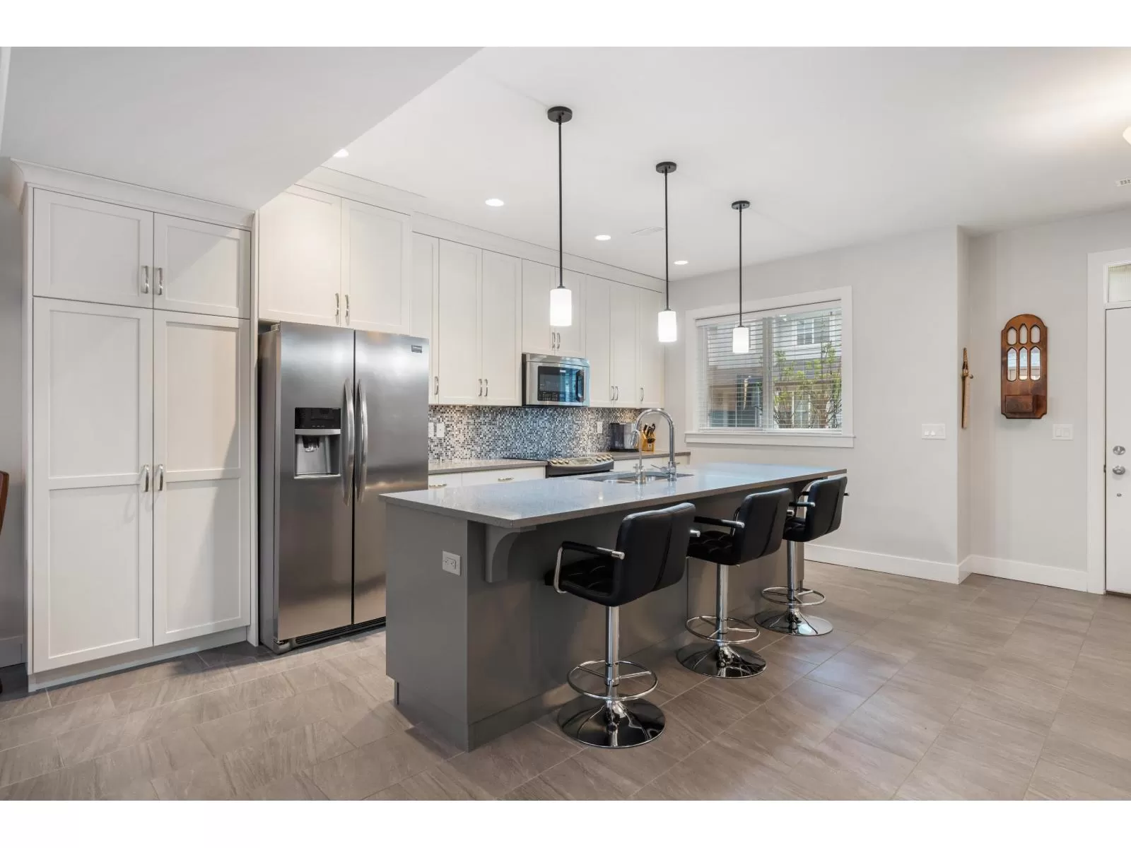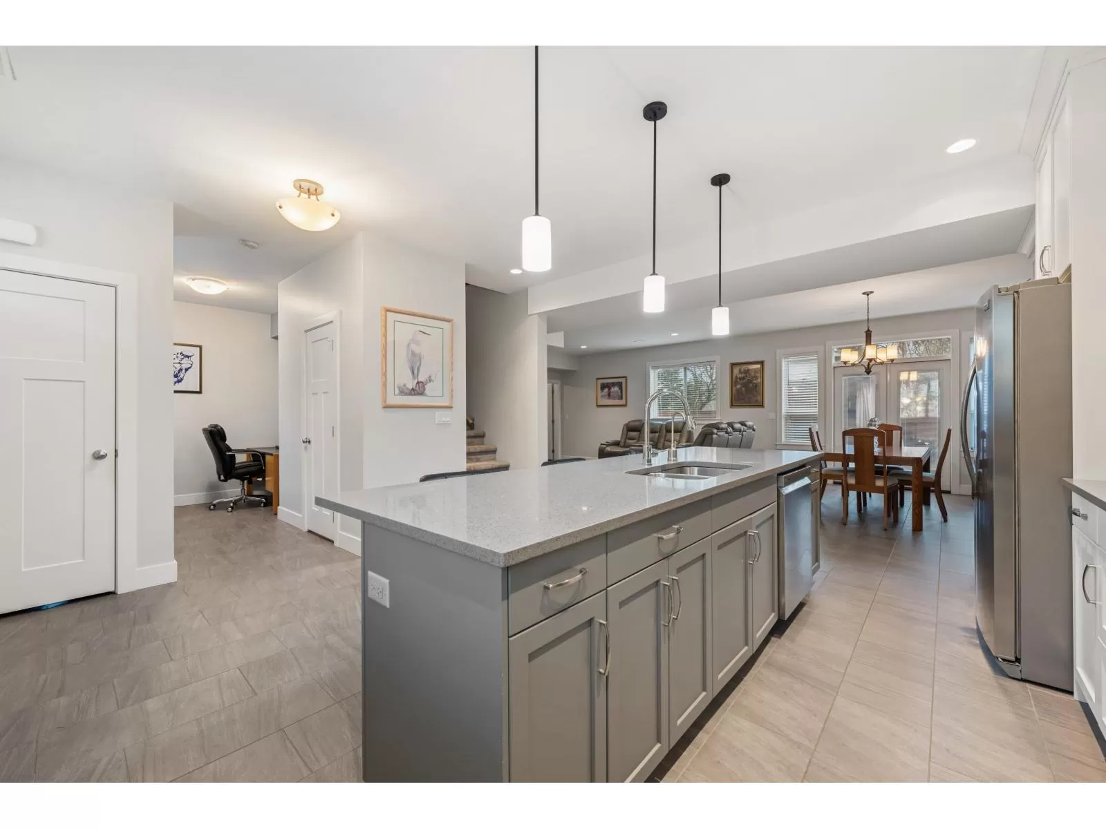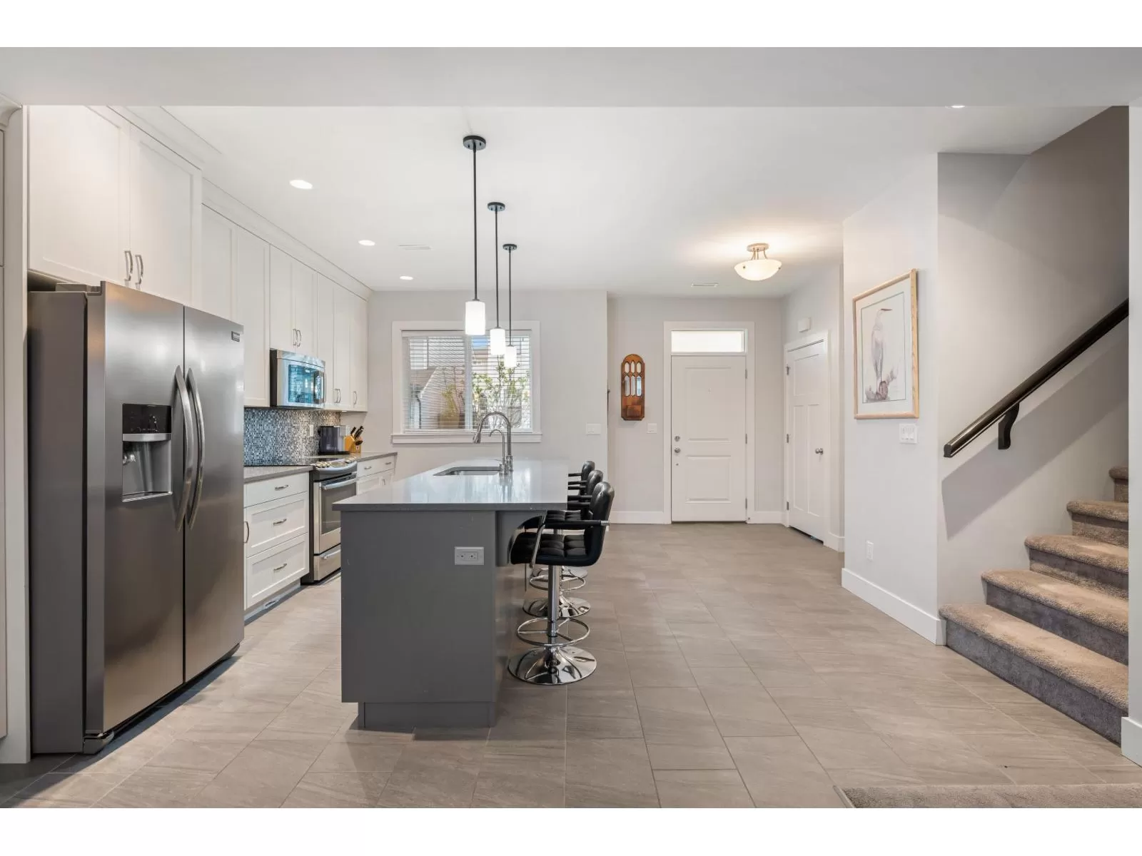 Welcome to Heron Pointe-an exclusive 18-home enclave by Ridgepoint Homes, perfectly tucked into a quiet East Abbotsford cul-de-sac. This beautifully upgraded 4 bed, 2.5 bath residence has been meticulously cared for & exudes warmth & style. A spacious foyer w/ durable vinyl plank flooring leads to the open-concept kitchen, showcasing gleaming stainless steel appliances, a quartz island, bright white cabinetry, & a stunning tile backsplash. The inviting living room is filled with natural light, complemented by rich hardwood floors, while the main floor also offers a versatile office space & central A/C. Upstairs features 4 generous bedrooms, including a luxurious primary suite with spa-like ensuite, oversized shower, & double sinks. Fenced backyard w/ massive deck, perfect for entertaining! (id:27476)