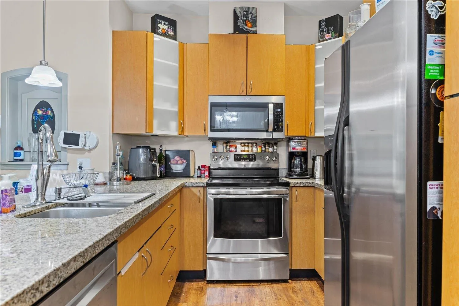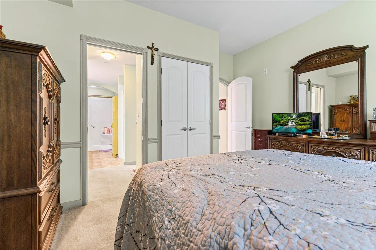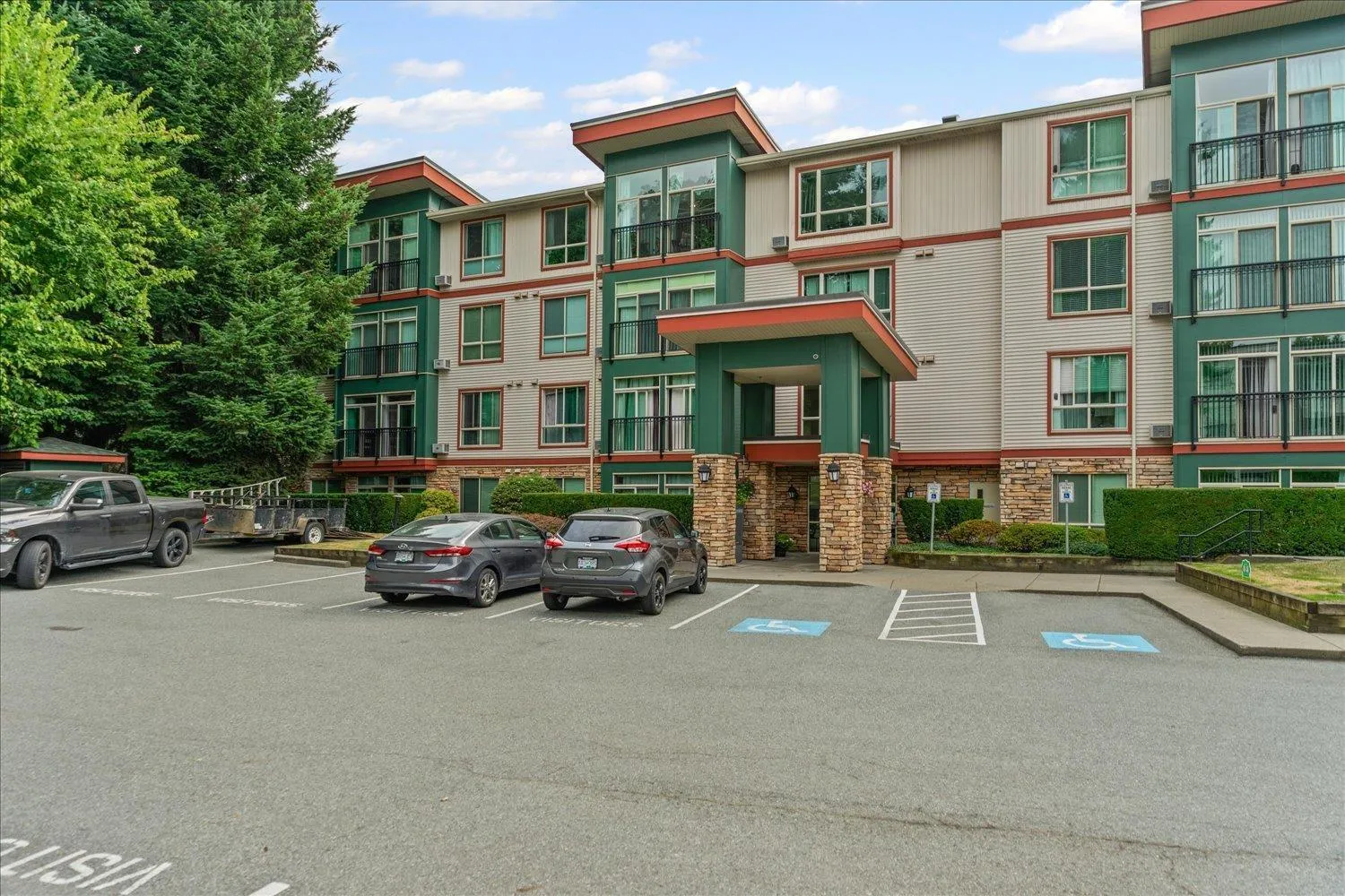 This rare Double Master condo offers both comfort and convenience in a prime central location. With quick access to the hi way, commuting is a breeze wile you enjoy being close to shops, dining, and amenities. The home features two spacious master bedrooms, each with its own ensuite, plus thoughtful upgrades including a brand new microwave and dishwasher. Enjoy peace of mind with the most secure underground parking in Abbotsford, a garage within the underground. It makes this condo ideal for professionals, couples, or anyone seeking a safe and stylish home base. Don't miss this unique opportunity, Schedule your showing today! (id:27476)