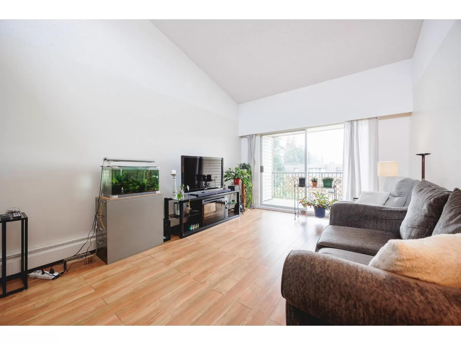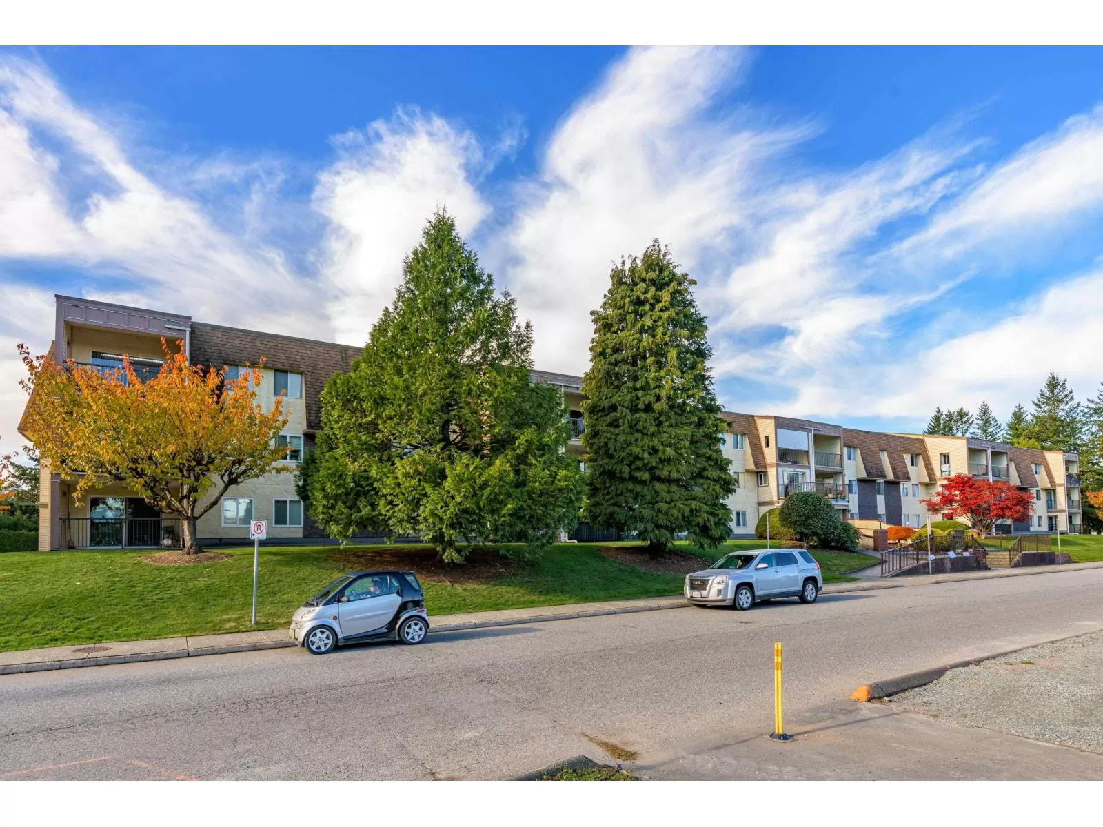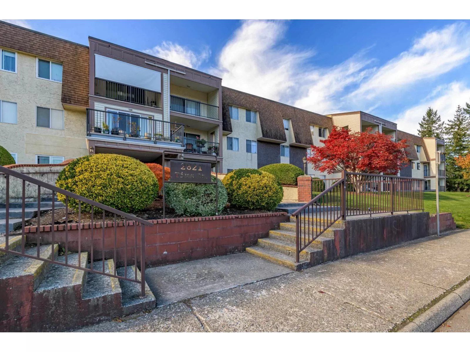 Location, location, location! This top floor unit has a high vaulted living room ceiling with sky lights that enjoy south facing exposure. Walking distance to grocery stores, restaurants, fast food locations, coffee shops and plenty of transit access. Neighboring City Hall, Abbotsford Library, art gallery, there is a lot to enjoy with a short walk. Tims Street is also not a main road so the location has light vehicle traffic. One street over from Clearbrook , freeway access is not far away. A well kept two bedroom unit with a large storage locker on the same floor and secured parking. Hot water heating is included in monthly Strata fees so no extra heating bill. Amazing opportunity for a first time buyer or an investor. (id:27476)