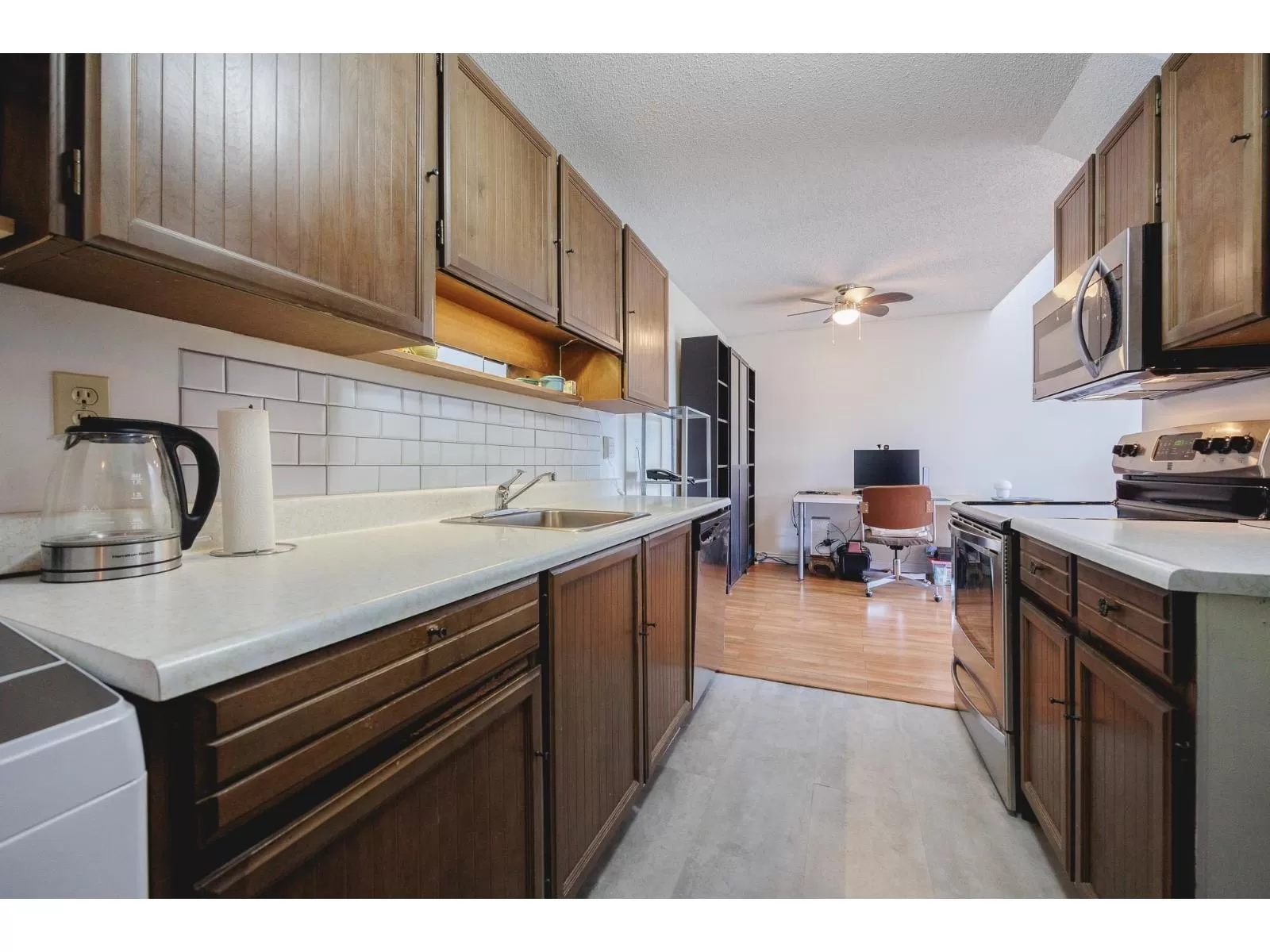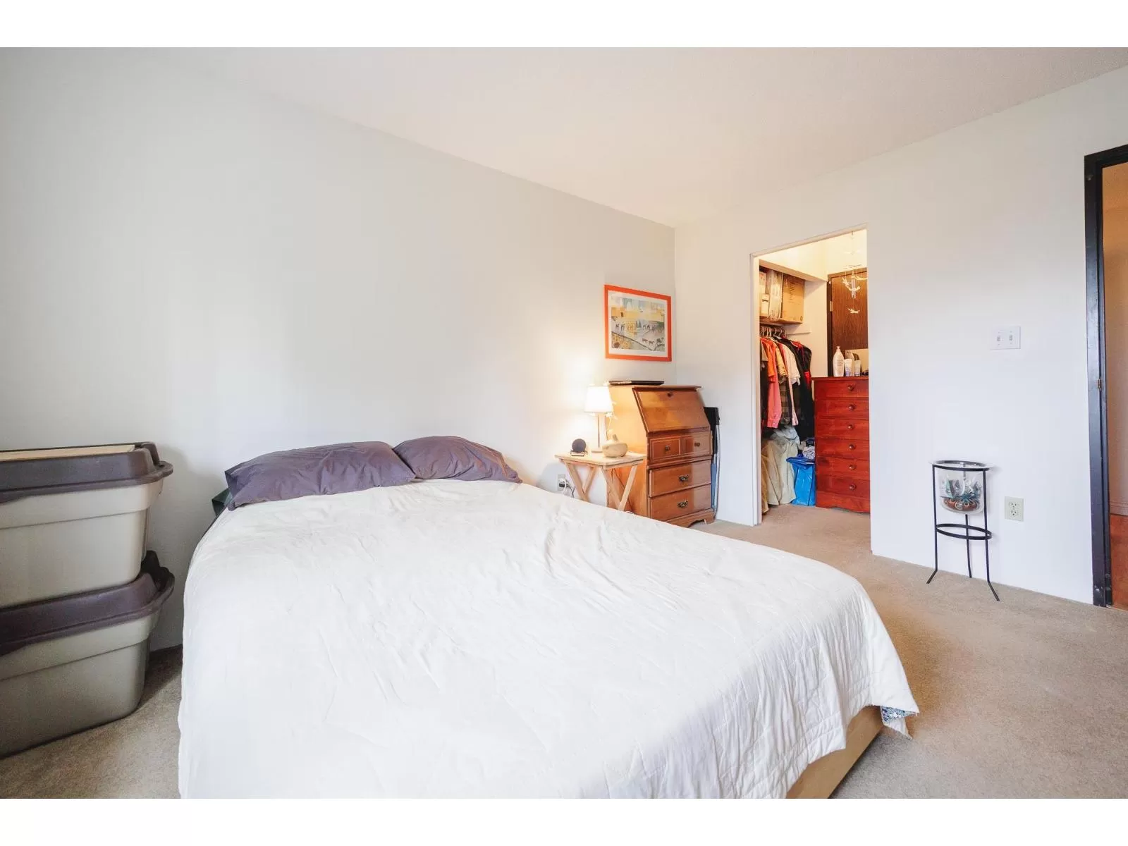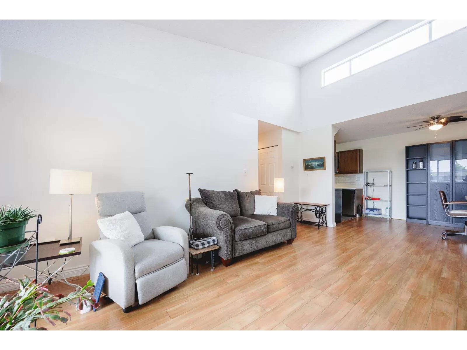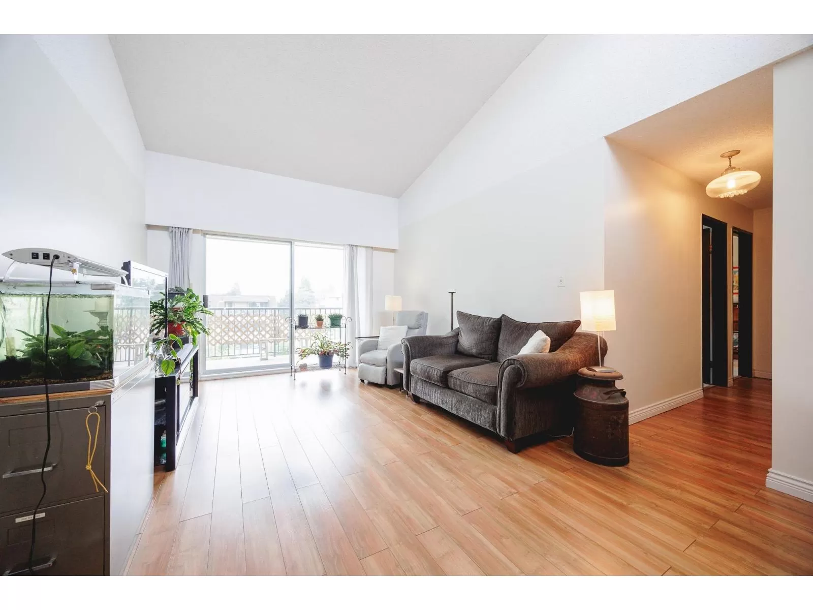 Location, location, location! This top floor unit has a high vaulted living room ceiling with sky lights that enjoy south facing exposure. Walking distance to grocery stores, restaurants, fast food locations, coffee shops and plenty of transit access. Neighboring City Hall, Abbotsford Library, art gallery, there is a lot to enjoy with a short walk. Tims Street is also not a main road so the location has light vehicle traffic. One street over from Clearbrook , freeway access is not far away. A well kept two bedroom unit with a large storage locker on the same floor and secured parking. Hot water heating is included in monthly Strata fees so no extra heating bill. Amazing opportunity for a first time buyer or an investor. (id:27476)