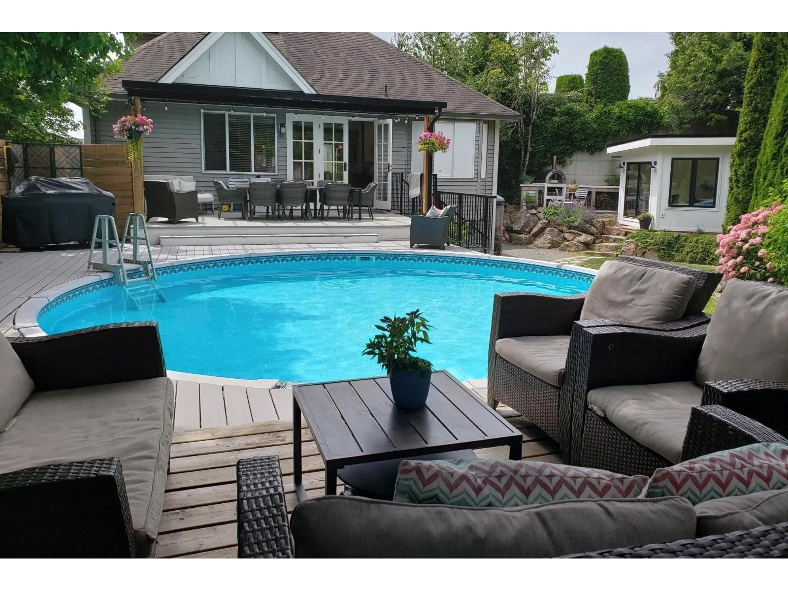 WELCOME TO FALCON RIDGE | Beautiful home nestled at the end of a private cul-de-sac in a sought-after neighborhood. Bright & spacious open-concept featuring A/C for year-round comfort. Chef inspired kitchen featuring a large island with a built-in Thermador oven, gas range, & walk-in pantry. Master suite with WI closet & a loft-style flex space, skylights, & stunning view of Mt. Baker. French doors lead to an expansive, glass-covered deck-perfect for year-round entertaining. Landscaped backyard is a private oasis w/ handcrafted rock staircase & heated 24' saltwater pool. Bright above-ground 2 BDRM legal suite w/ separate entry, laundry, gas FB & plenty of storage. Large garage equipped w/ 220V power, 94" high door. Quick access to Hwy 1. An exceptional home that offers luxury, privacy & functionality. (id:27476)
