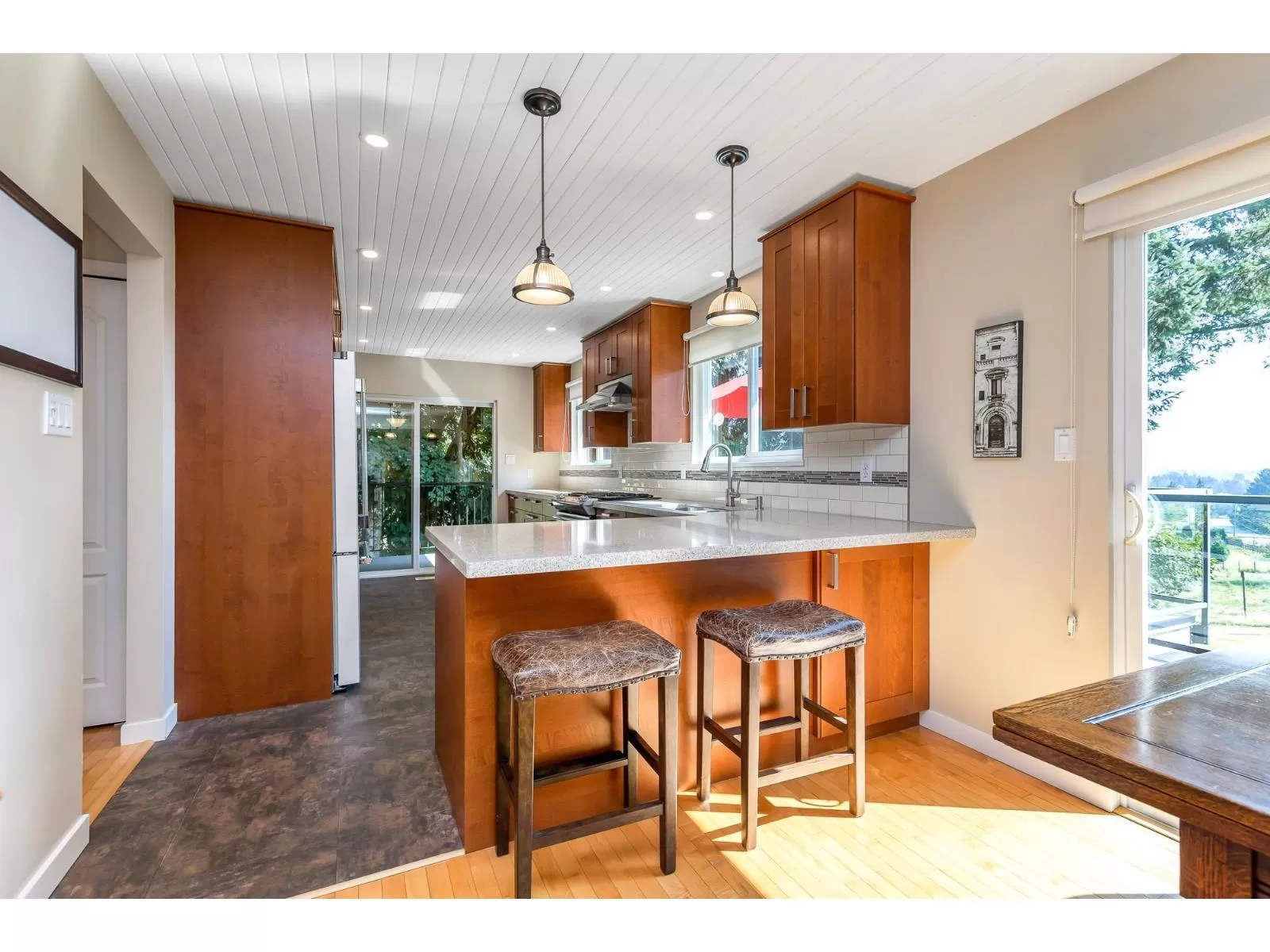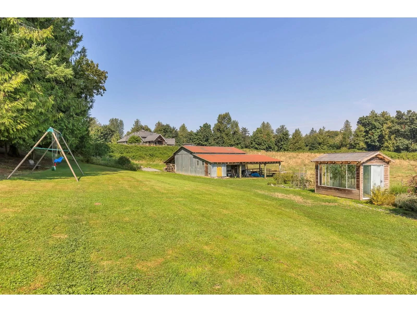 Fabulous 5- acre property on one of Bradner/Mt.Lehman's most desirable dead end streets. Just 5 minutes to Highstreet mall, this charming basement entry home features 4 bedrooms, 3 bathrooms, a spacious living room, large family room and an updated kitchen with gas range and stainless appliances. Enjoy stunning views from the wrap around deck with access from the kitchen. Cozy private deck at side yard with great firepit to enjoy on those fall evenings. Extras include a barn with twin lean-to shelters, detached storage shed and hobby greenhouse. A rare opportunity to live, invest or build your dream home on this prime location. Hay fields are fenced and could be a great home for livestock or horses. (id:27476)