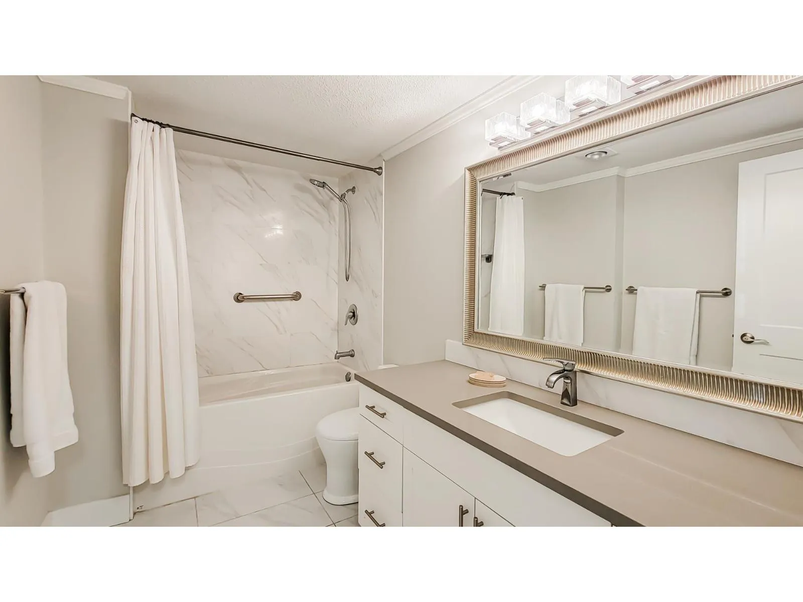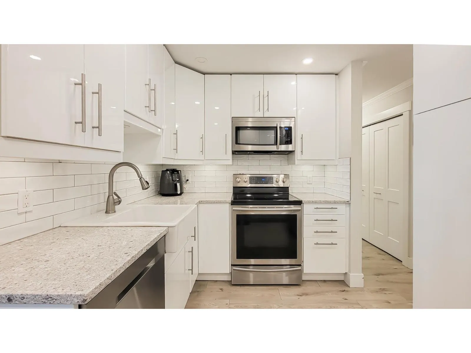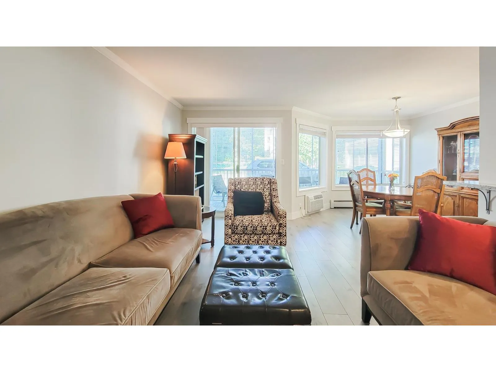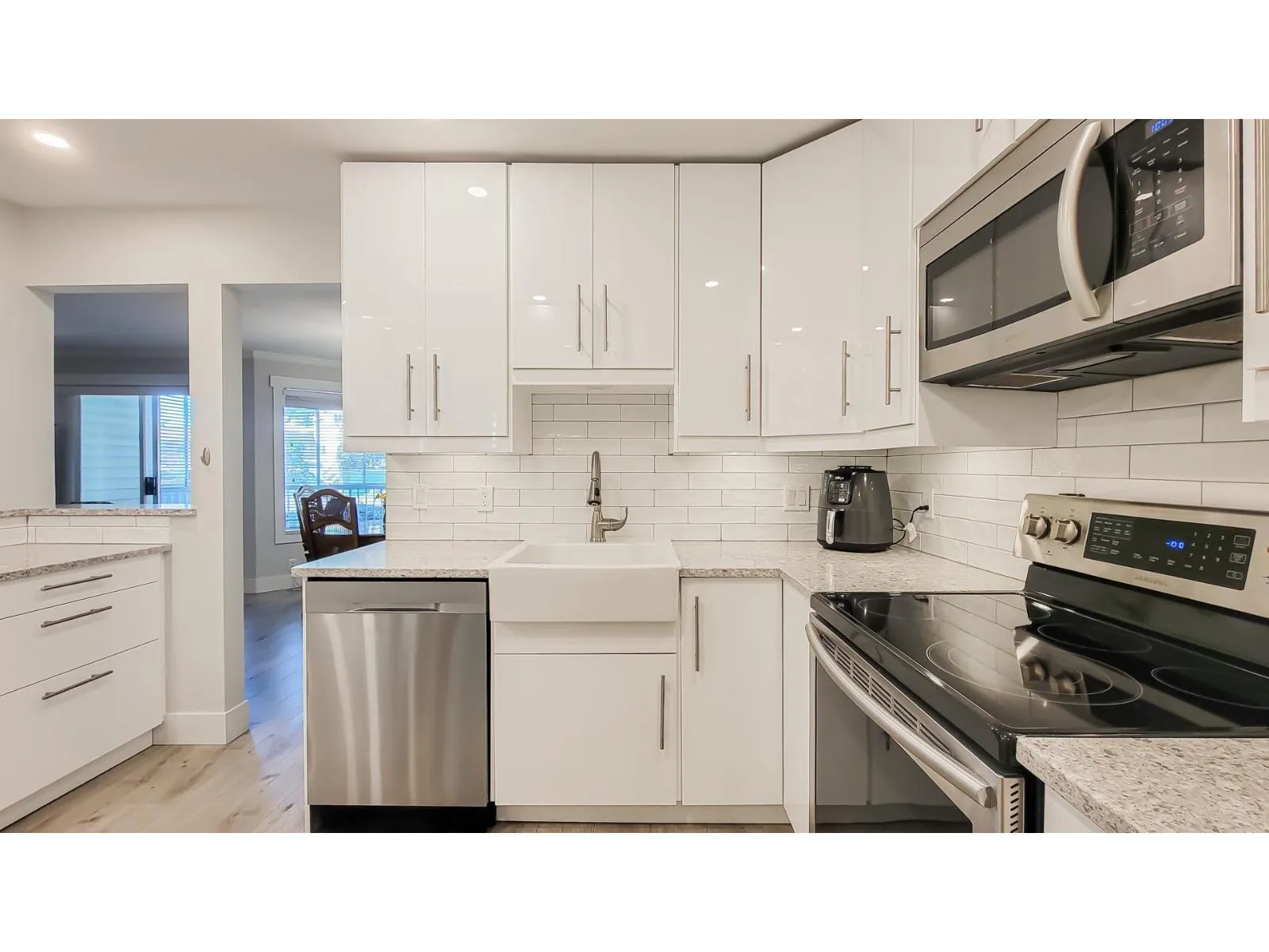 This beautifully renovated ground floor unit in a desirable 55+ community offers over 1,180 sq.ft. of stylish, move-in ready living space. Enjoy the comfort of 2 bedrooms and 1.5 bathrooms, plus an enclosed sun deck/solarium-perfect for year-round enjoyment. Renovations include new laminate flooring, updated blinds (including on the sun deck), paint, new doors and mouldings, modern kitchen cabinets, quartz countertops, stainless steel appliances, and fully updated bathrooms, built in A/C. A large, separate storage locker adds convenience, making this home ideal for downsizing. Complex amenities include a recreation room, guest suite, and workshop. Don't miss out-book your private showing today! (id:27476)