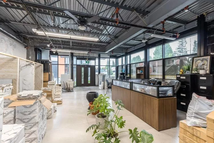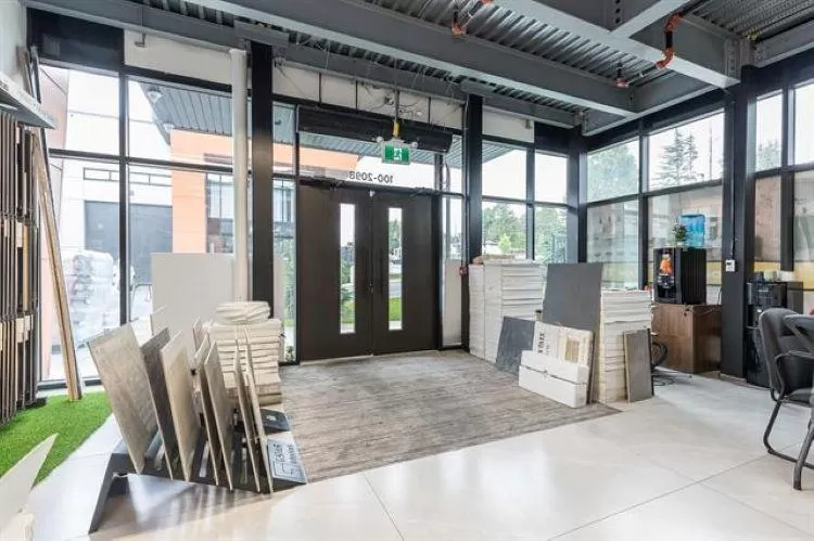 Opportunity at Windsor Industrial! Located only minutes from Highway 1 at Mt. Lehman and Clearbrook Road, this space is 2 units combined situated on the corner of Building B. Currently a tile store, there is a showroom built out on the main floor that fully open concept and could easily be turned into an office space if needed. Offering one handicap washroom for clientele or staff, this space then leads to the back of the building where there are stairs that take you up to the mezzanine level. Here you will find built in shelving and a counter in one corner, with the remainder of this space being fully open to use as you wish. From the mezzanine level you can see the vast amount of warehouse space that these units offer, with overhead lighting throughout and 2 (~16'x12') grade loading doors. This complex also offers plenty of parking for staff/clientele and 2 points of ingress/egress off of Windsor & Carpenter Street. Size: 6,498 SF Base Rent: $18.00/SF Additional Rent: $6.00/SF (id:27476)