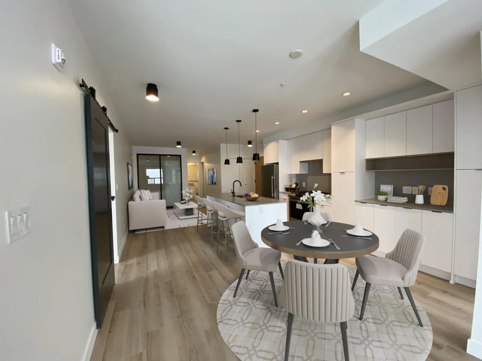 Welcome to Upper Montrose! This 1413 sq ft unit has 3 big bedrooms & 3 bathrooms. The complex is ideally located in sought after Historic Downtown Abbotsford. The modern kitchen has ample cabinets, Quartz counters, S/S appliances inc a gas range to meet all your cooking & entertaining needs. There are extra features within the unit such as a brick feature wall, air conditioning & a contemporary barn door. There are two Primary bedrooms which are large in size & have walk through closets to full ensuites. The patio provides beautiful views and extra outdoor living space to enjoy your morning coffee or a meal. The complex offers bike storage and is centrally located within walking distance to shopping, coffee shops, Jubilee park & all other amenities. Call today to book your showing. (id:27476)