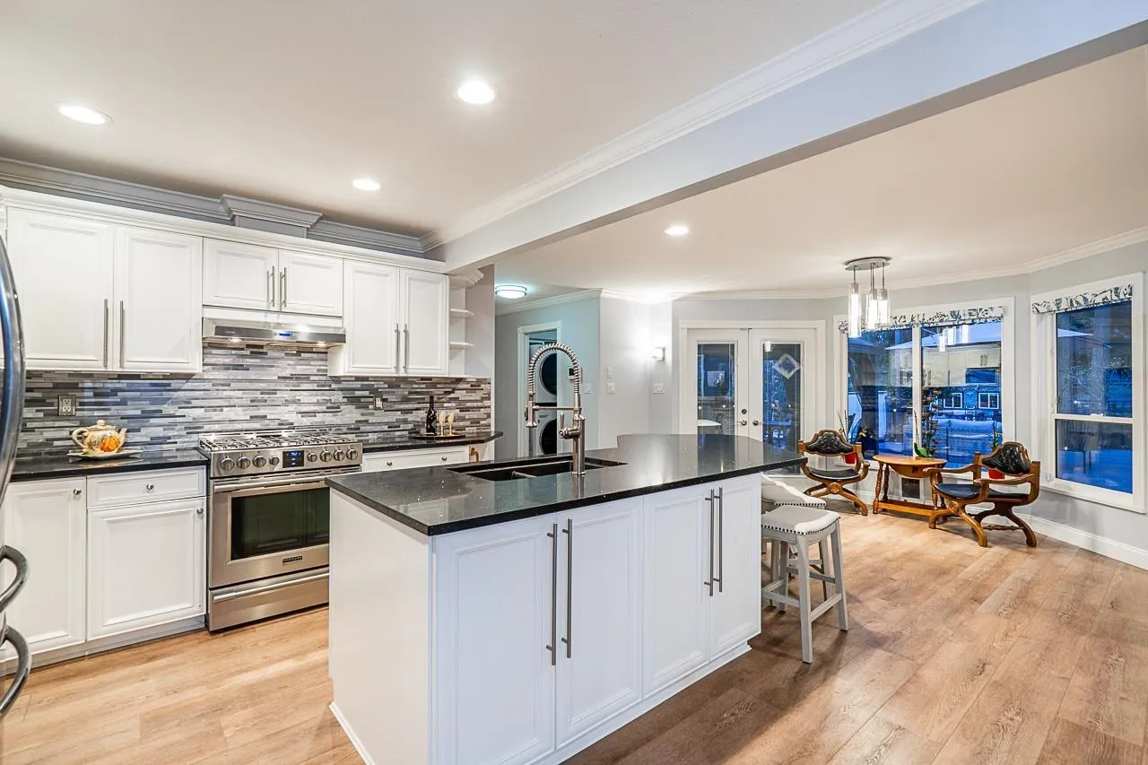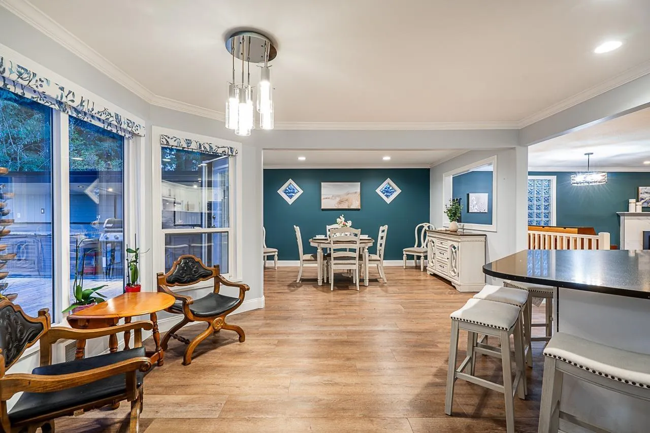 Looking for the perfect getaway & dream home in one? This entertainer's paradise features an outdoor bar, oversized covered BBQ area, multiple patios, hot tub, playhouse, and a huge lawn-pool-ready! Nearly $200K in premium upgrades: metal roof, new vinyl floors, plush carpet, tankless hot water, air filtration, gas stove, new shades, new washer/dryer/fridge, Bosch dishwasher, & A/C. Expansive driveway with RV parking, set on a quiet, beautifully maintained street. Move in & enjoy-everything's done! This lot is within the **SSMUH-1 LAND DESIGNATION** area in the proposed OCP, & meets all the minimum size & location requirements. A new build on this lot could have up to 4 dwelling units: for example, a duplex with each side having a legal suite. Deck needs painting & some boards replaced. (id:27476)