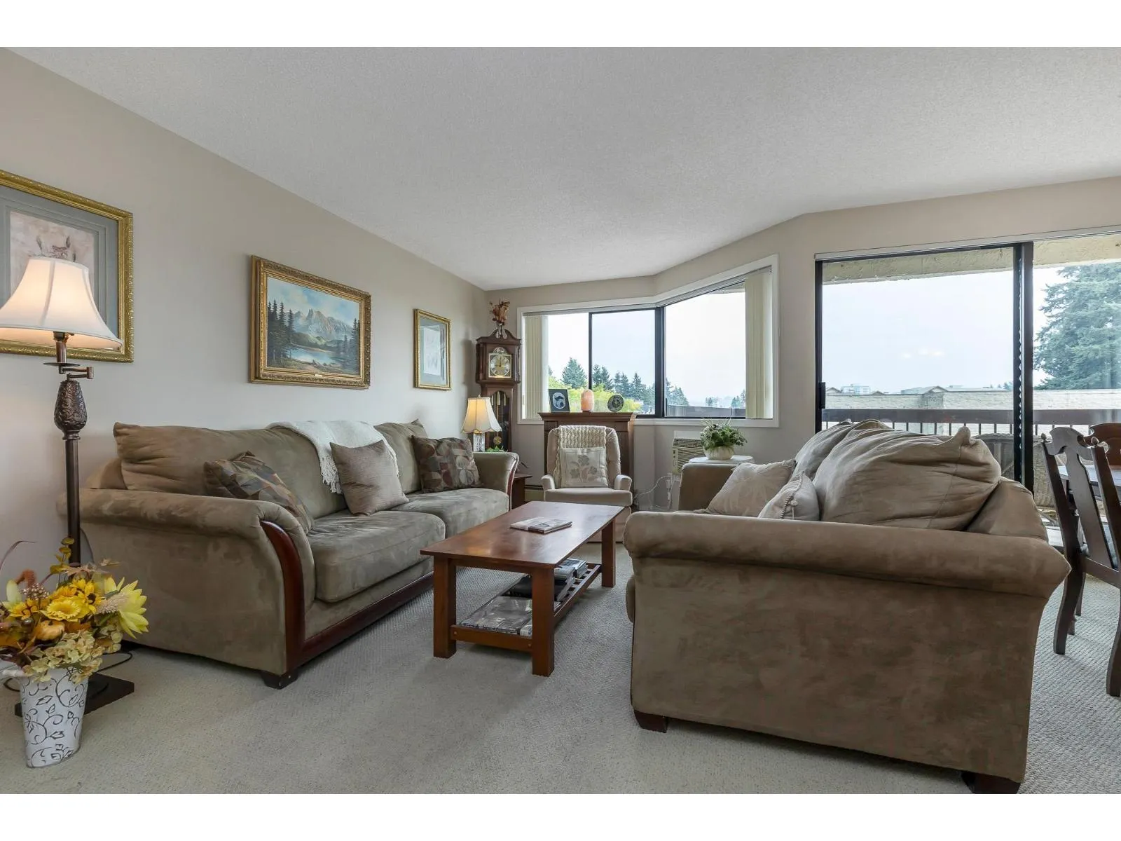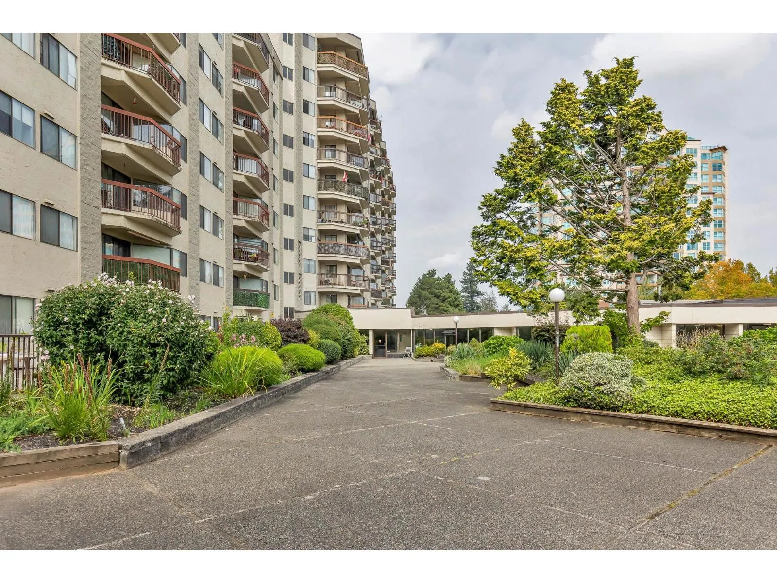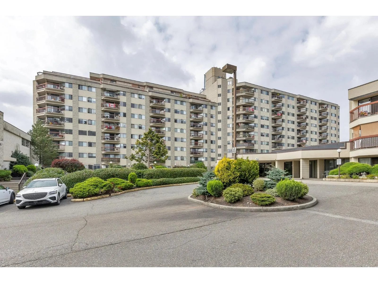 Popular Evergreen Village - 55+ Living. 1200 sq ft, 2 bdrm + Den w/2 bath unit with in-suite laundry. Located near the elevator for convenience in the cement tower building. Extremely well looked after, move in ready suite with large windows and view of the city. Fantastic amenities: indoor pool, hot tub, games room, guest suite, workshop and much more. Close to shopping, recreation, Hwy #1 and city center for all your needs. Very well run strata and fees include heat & hot water!! (id:27476)