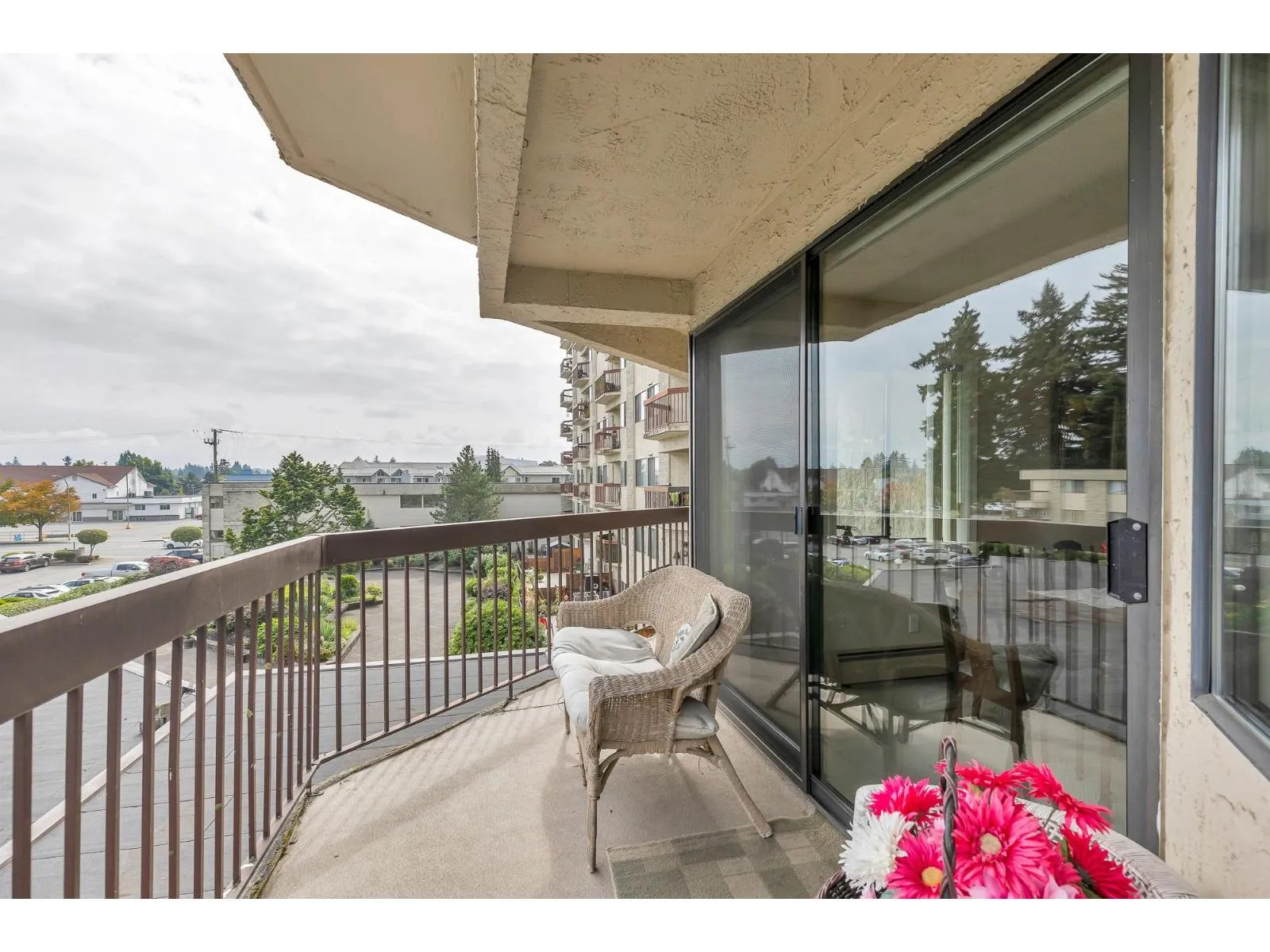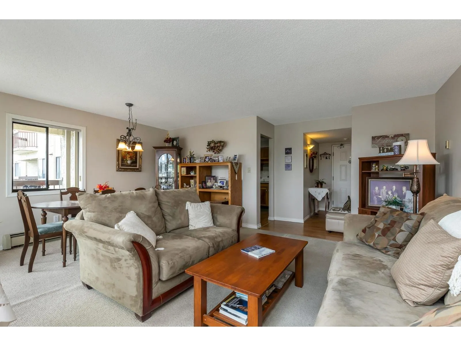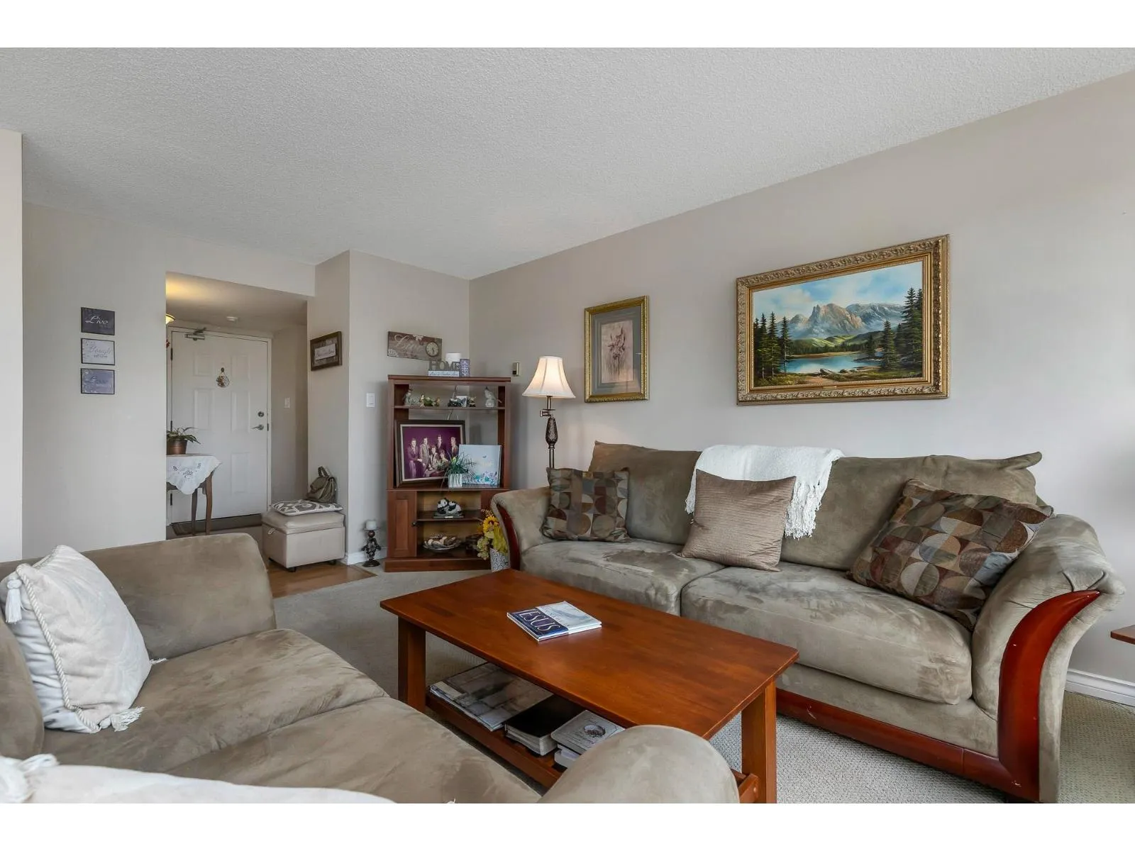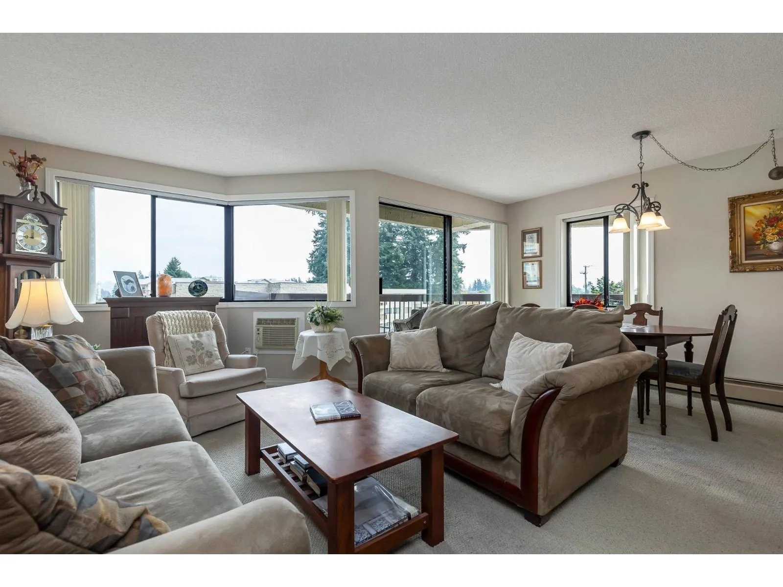 Popular Evergreen Village - 55+ Living. 1200 sq ft, 2 bdrm + Den w/2 bath unit with in-suite laundry. Located near the elevator for convenience in the cement tower building. Extremely well looked after, move in ready suite with large windows and view of the city. Fantastic amenities: indoor pool, hot tub, games room, guest suite, workshop and much more. Close to shopping, recreation, Hwy #1 and city center for all your needs. Very well run strata and fees include heat & hot water!! (id:27476)