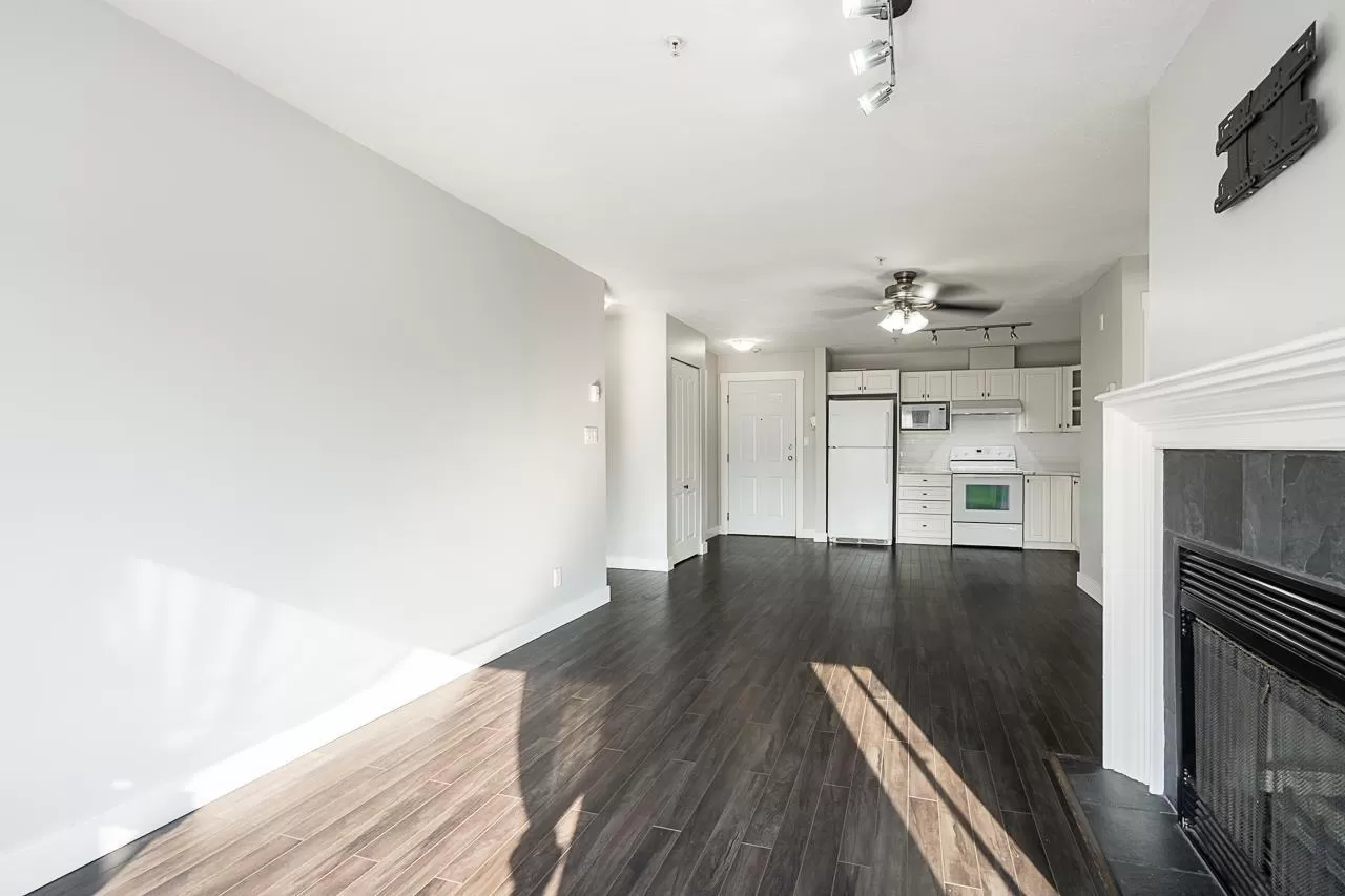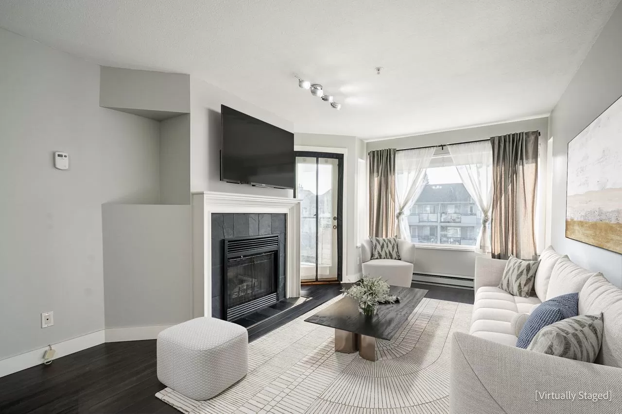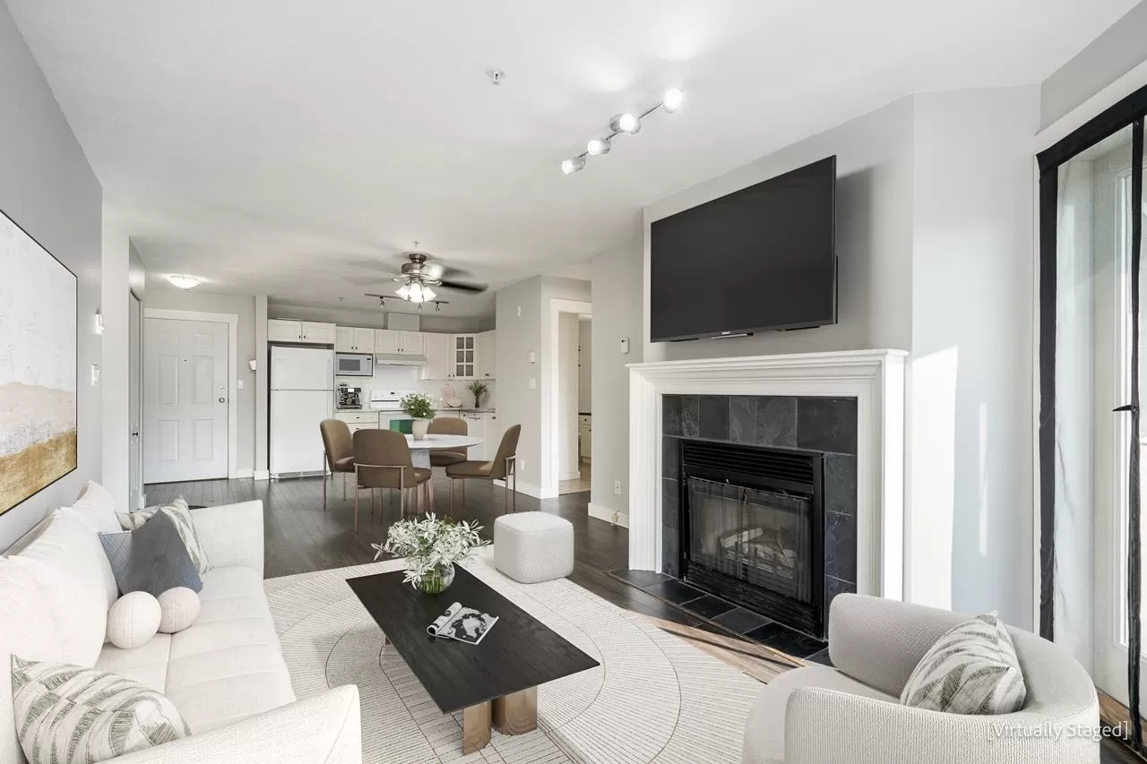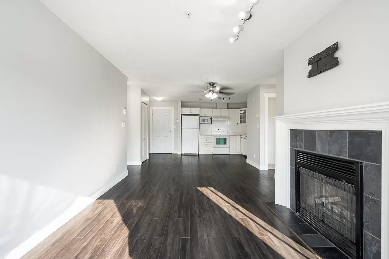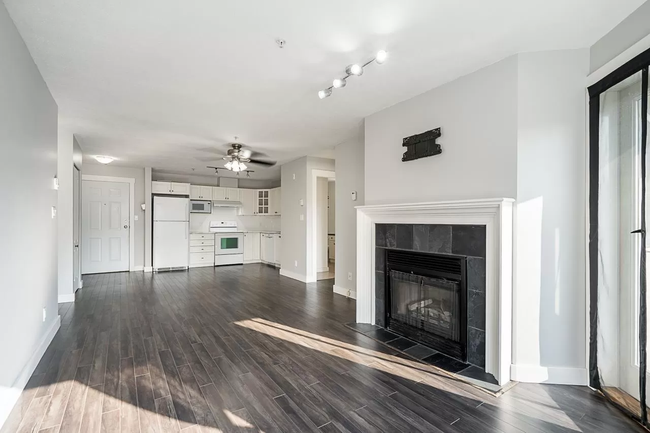 Top Floor Unit! This bright and spacious 2-bedroom, 2-bathroom condo features an open-concept layout with bedrooms on opposite sides, each with its own bathroom-ideal for privacy and comfortable living. The generously sized kitchen offers plenty of cabinet space and natural light. The cozy living room includes a charming gas fireplace and access to an east-facing balcony-perfect for enjoying sunsets. Recent updates include fresh paint throughout, new flooring in the bedrooms, and a new washer and dryer in the in-suite laundry. Most units in the building are owner-occupied, creating a well-maintained and quiet community. Conveniently located within walking distance to UFV, transit, restaurants, shopping, and Abbotsford Centre. Easy access to Highway 1 for commuters. (id:27476)