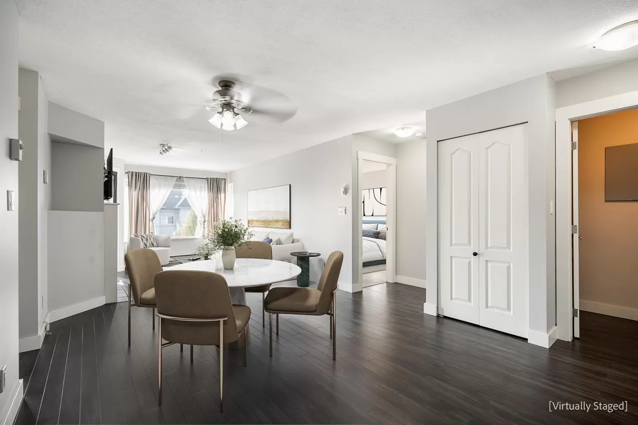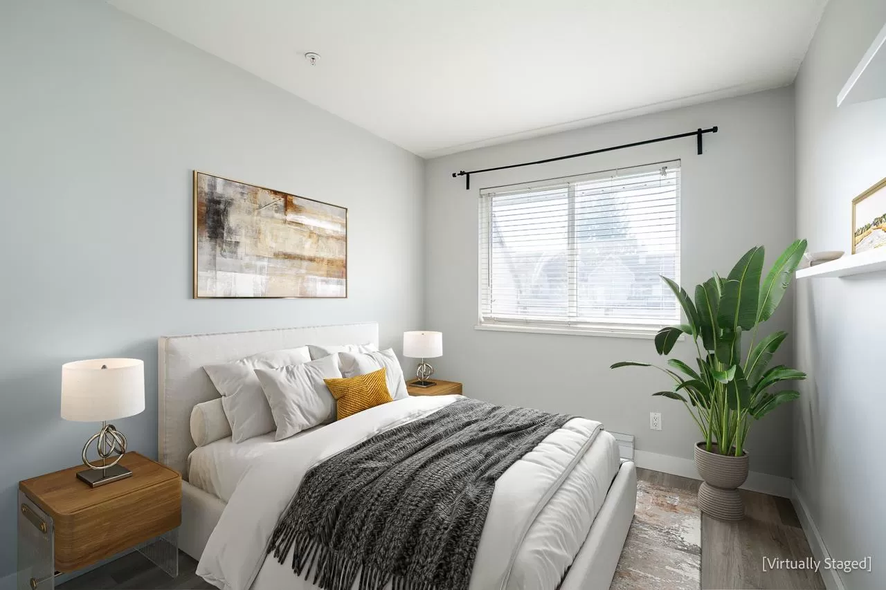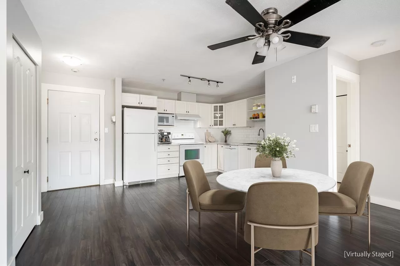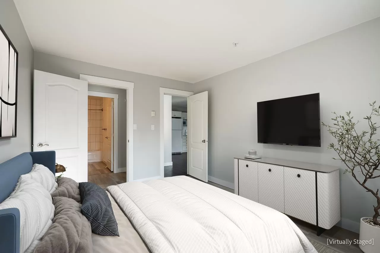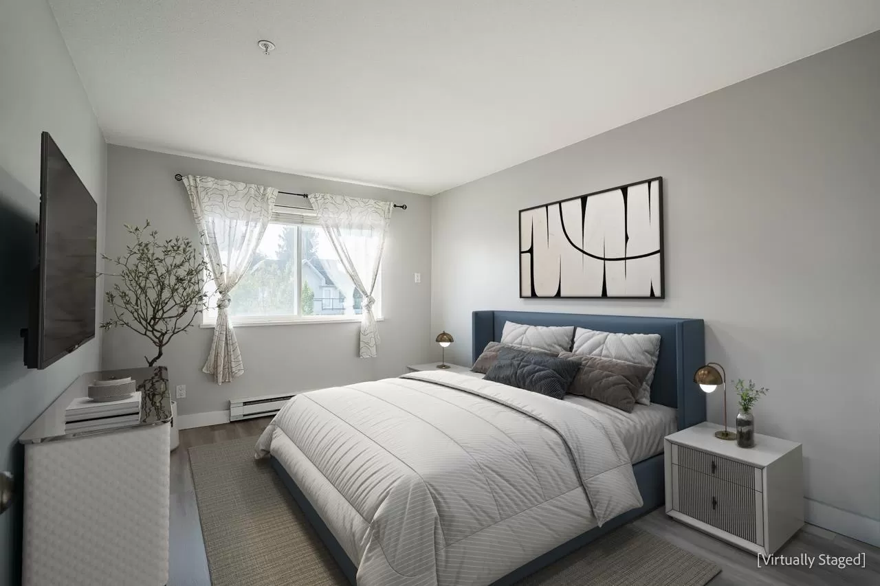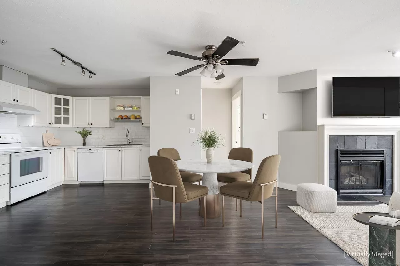 Top Floor Unit! This bright and spacious 2-bedroom, 2-bathroom condo features an open-concept layout with bedrooms on opposite sides, each with its own bathroom-ideal for privacy and comfortable living. The generously sized kitchen offers plenty of cabinet space and natural light. The cozy living room includes a charming gas fireplace and access to an east-facing balcony-perfect for enjoying sunsets. Recent updates include fresh paint throughout, new flooring in the bedrooms, and a new washer and dryer in the in-suite laundry. Most units in the building are owner-occupied, creating a well-maintained and quiet community. Conveniently located within walking distance to UFV, transit, restaurants, shopping, and Abbotsford Centre. Easy access to Highway 1 for commuters. (id:27476)