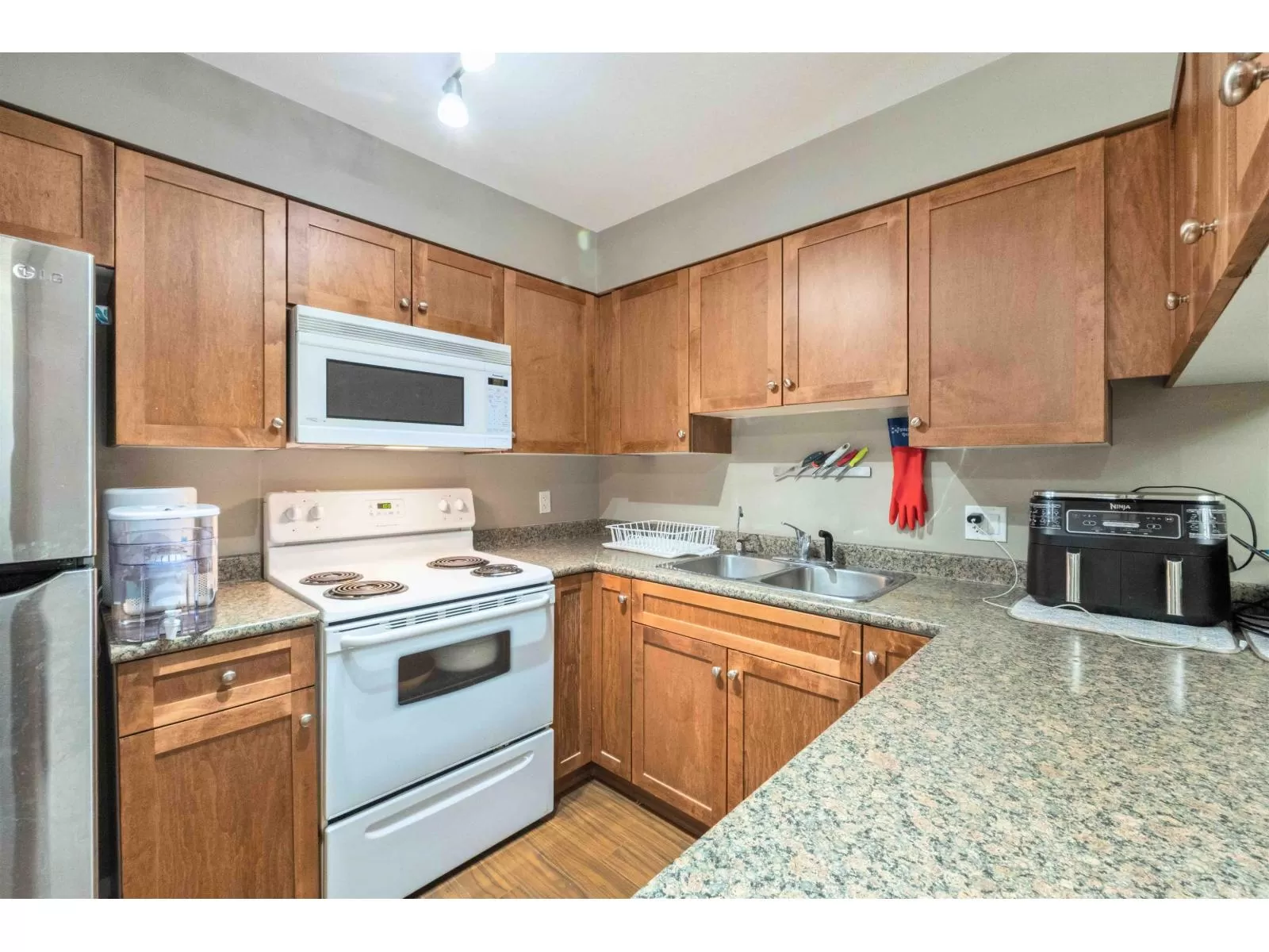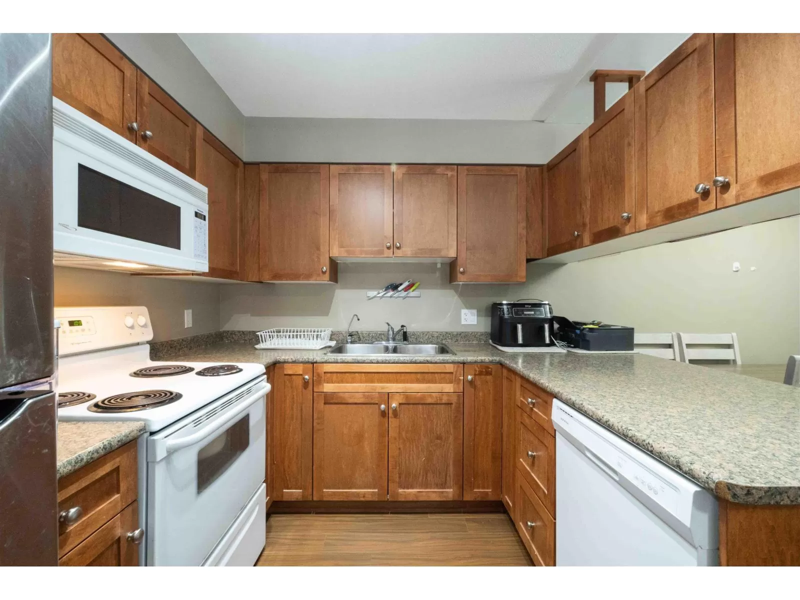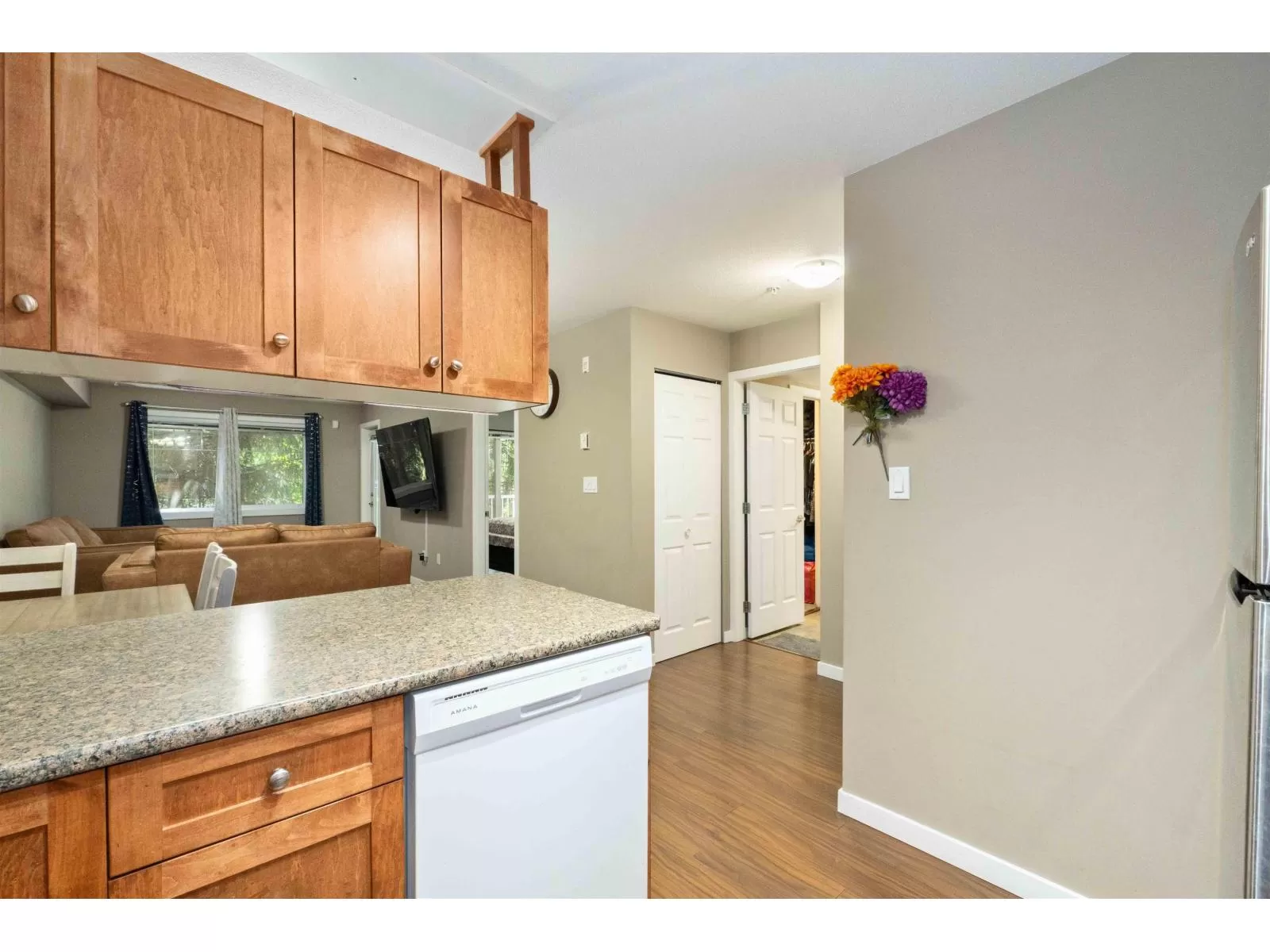 Welcome to Old Yale Heights, where comfort meets convenience in this bright and private 1-bedroom condo offering 622 sq ft of open-concept living space in a prime central location. The building has amazing features such as 2 elevators for convenience & a beautiful roof top patio to enjoy views from. Perfect for first-time buyers or investors, this corner unit sits approximately 10 feet above ground, providing both privacy and a peaceful, tree-lined outlook. The functional layout features large windows, a spacious living area, and seamless flow throughout. Just minutes from Downtown Abbotsford, restaurants, shopping, and only 5 minutes to the freeway, this home delivers on lifestyle and investment potential. (id:27476)