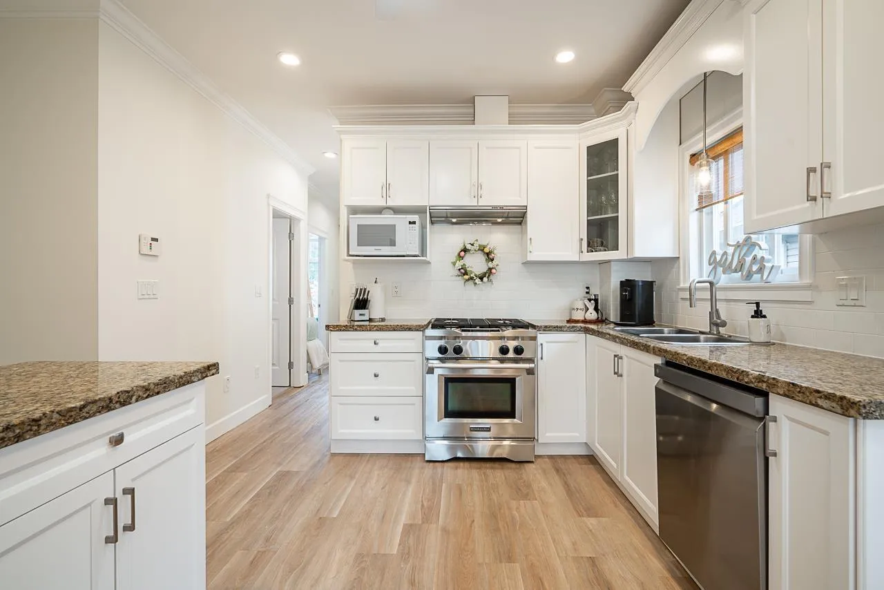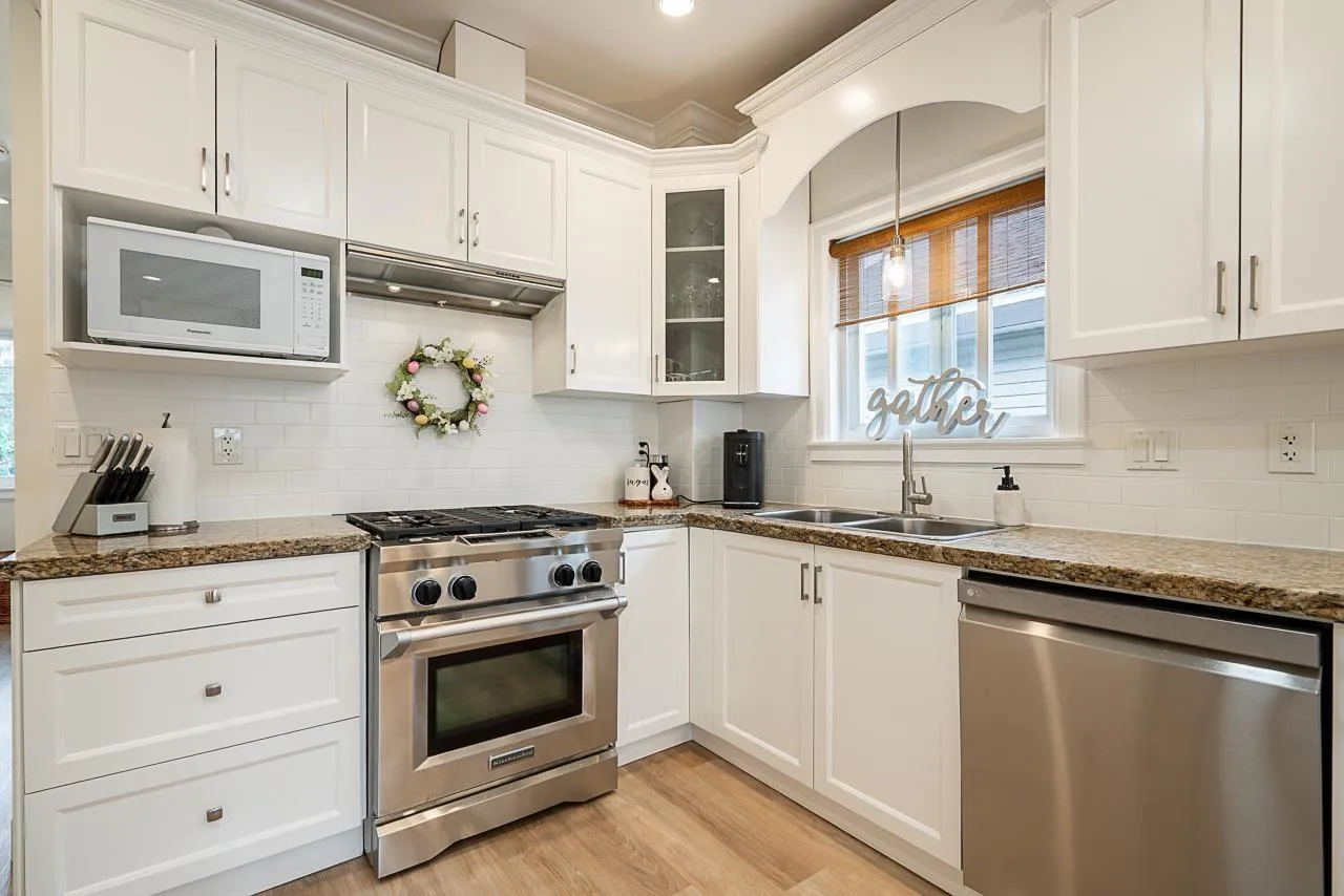 Welcome to this beautifully updated 5-bedroom, 3-bathroom home in Aldergrove! Located within walking distance to bus stops, shops, cafes, schools, and parks, this home offers the perfect blend of convenience and comfort. Inside, enjoy nine-foot ceilings, crown molding, fresh carpet in the bedrooms, and durable vinyl flooring in the main areas. The kitchen features granite countertops, a gas stove, and a French-door fridge. Outside, relax in your private backyard with a covered patio, hot tub, and playground. The detached garage and driveway provide ample parking, while the front yard boasts a magnolia tree and a cozy porch. Move-in ready with style and a prime location! (id:27476)